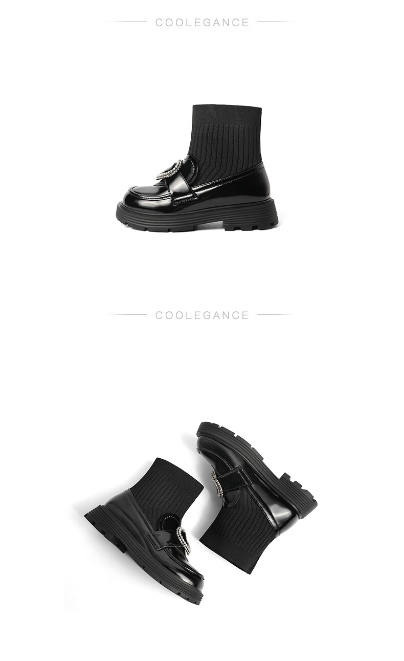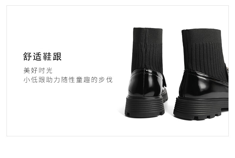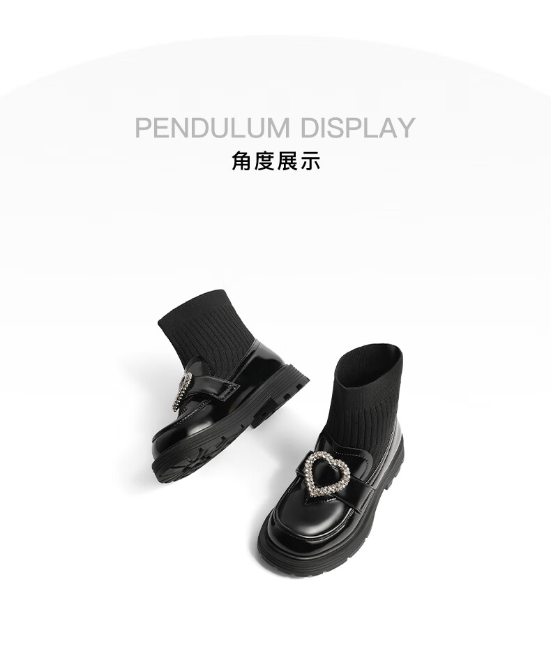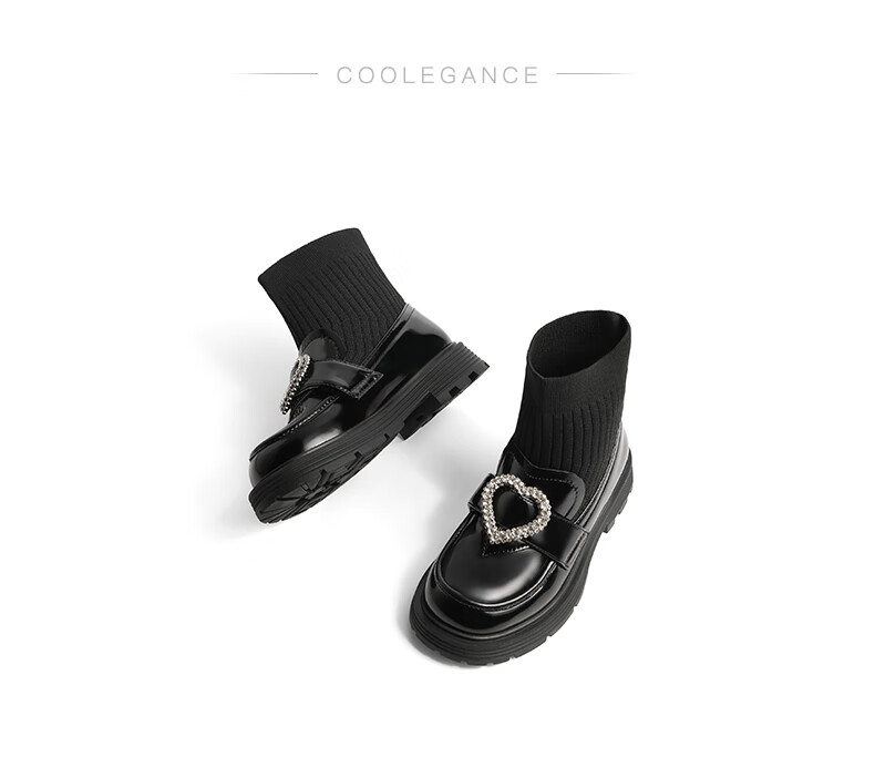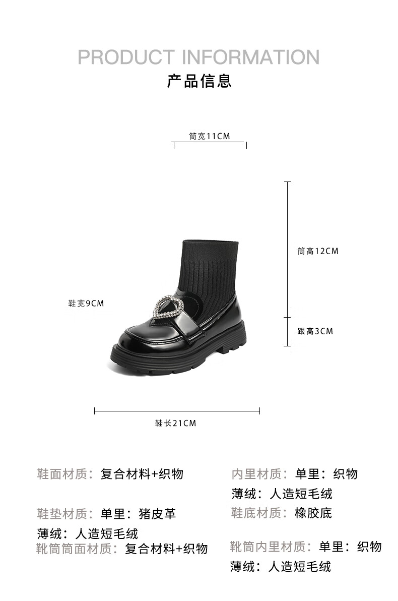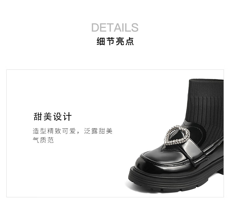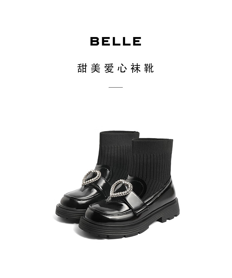 百丽爱心装饰童靴女商场同款甜美低靴A3813D92 黑色 30
