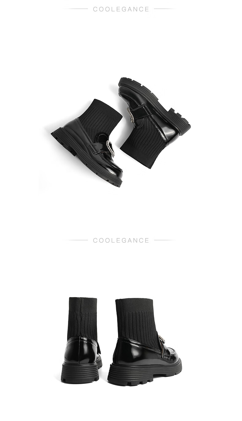 百丽牛皮商务休闲皮鞋男百搭马丁鞋子橡胶底86181CM0 黑 42