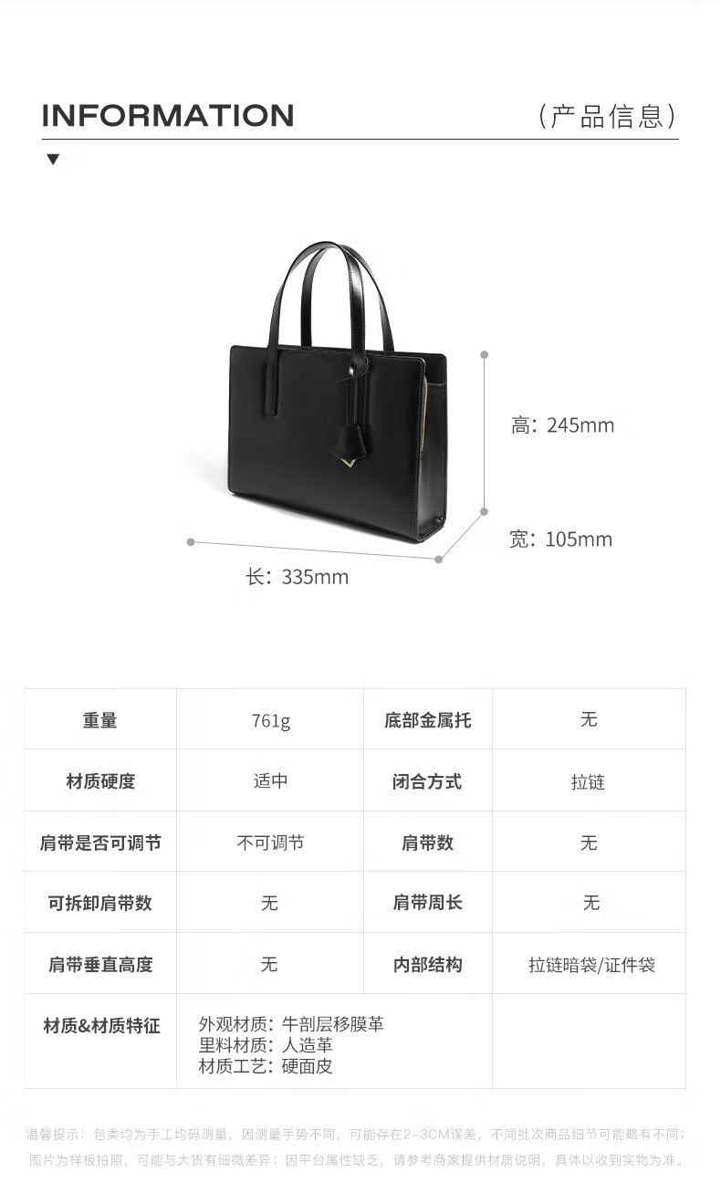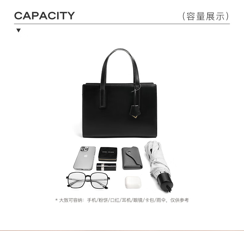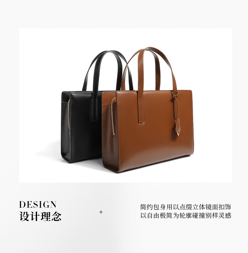 百丽复古大容量托特包商场同款手提包21175DX2 典雅黑 F