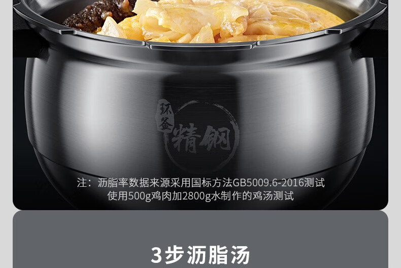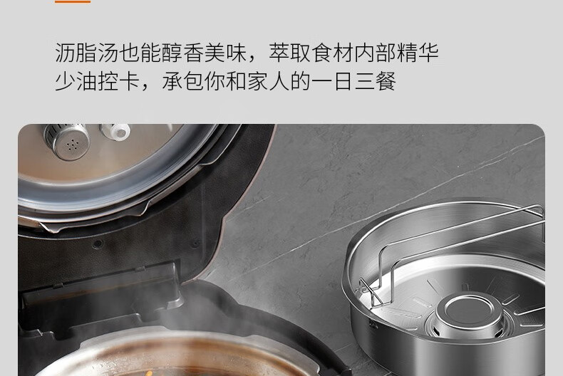 九阳(Joyoung)电压力锅家用5L大容量双内胆IH电磁加热多功能菜单智能电压力煲 Y-50IHS17【磁吸沥脂 一锅双胆】