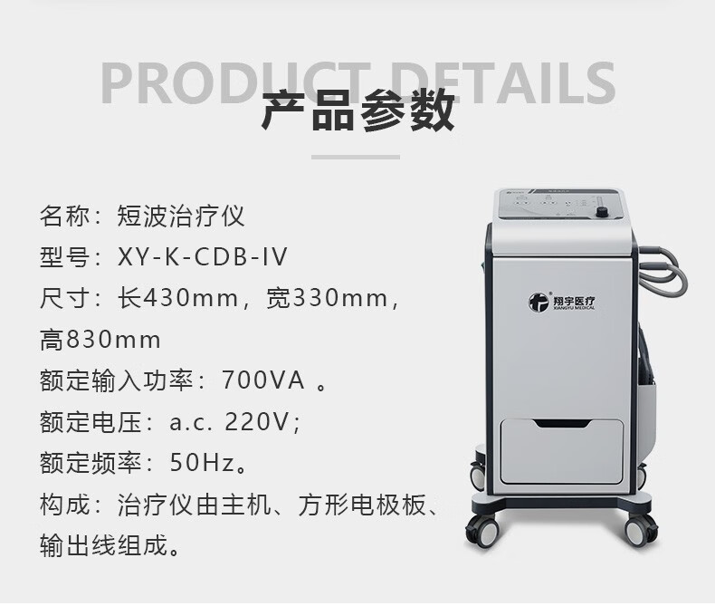 翔宇医疗 短波治疗仪输出功率五档可调配三种方形硅胶电极板 药监认证理疗仪 XY-K-CDB-IV 短波治疗仪