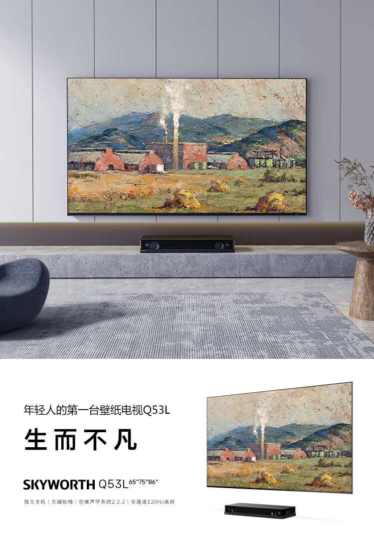 创维壁纸电视 75吋 75Q53L 艺术电视 120Hz高刷 壁画电视无缝贴墙 3+32G 双屏WIFI 电视机