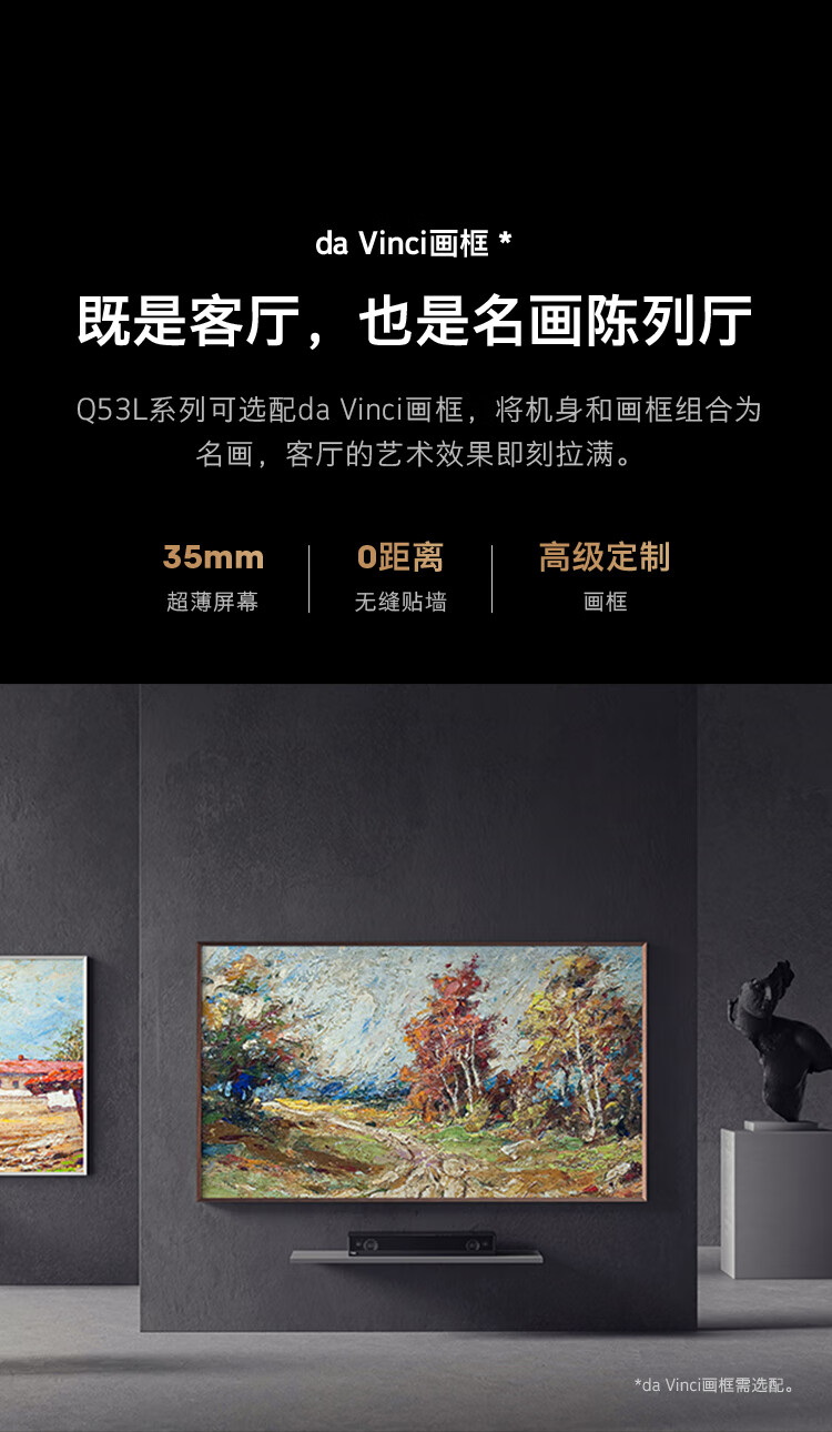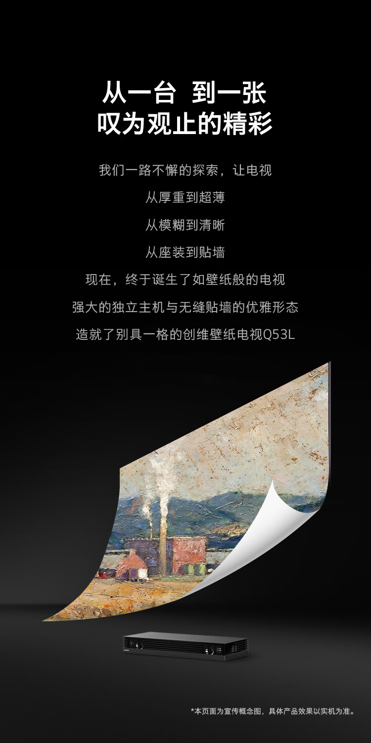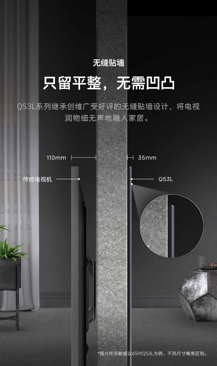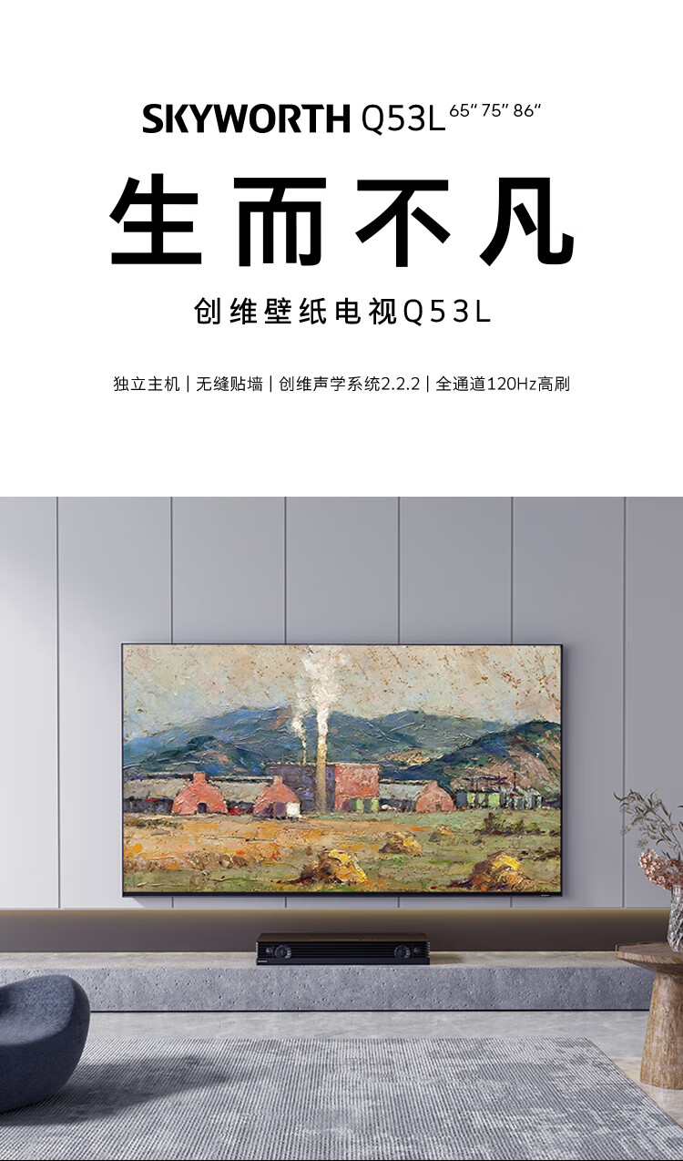 创维壁纸电视 65吋 65Q53L 艺术电视 无缝贴墙 120Hz高刷 3+32G 双频WIFI 电视机 独立主机