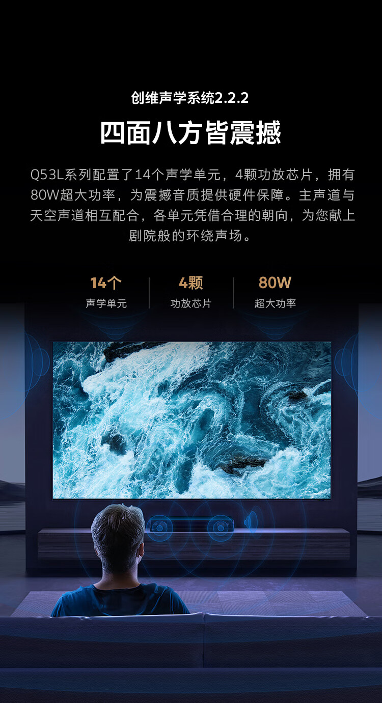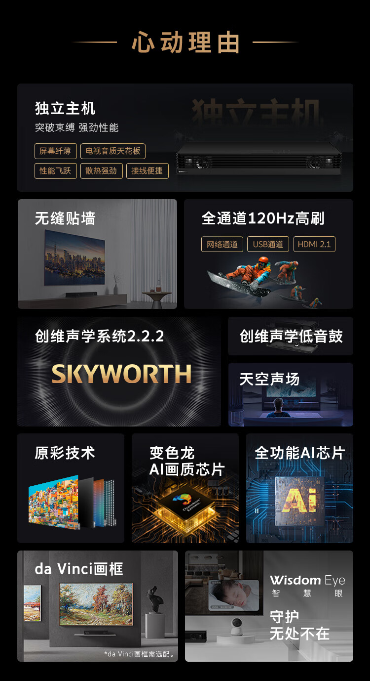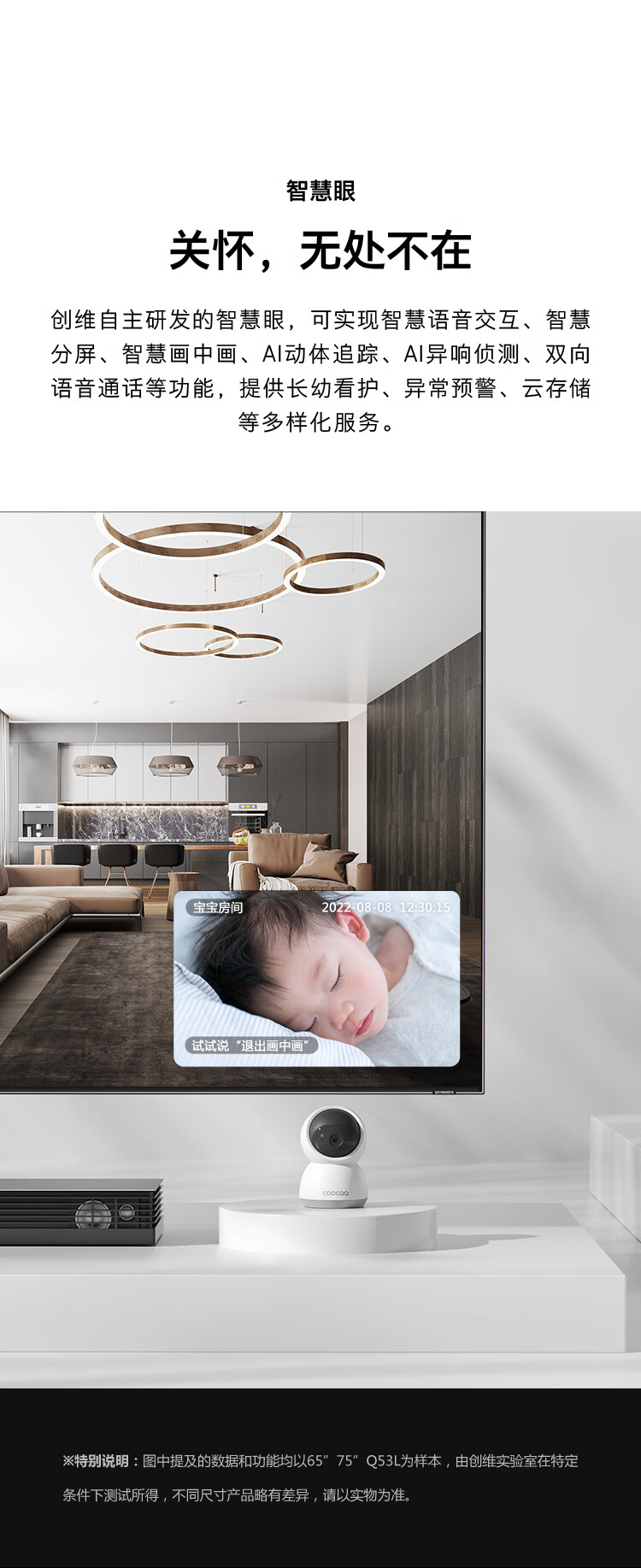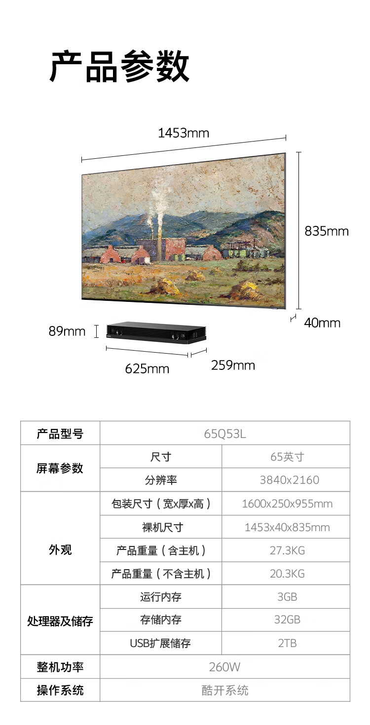 创维壁纸电视 65吋 65Q53L 艺术电视 无缝贴墙 120Hz高刷 3+32G 双频WIFI 电视机 独立主机