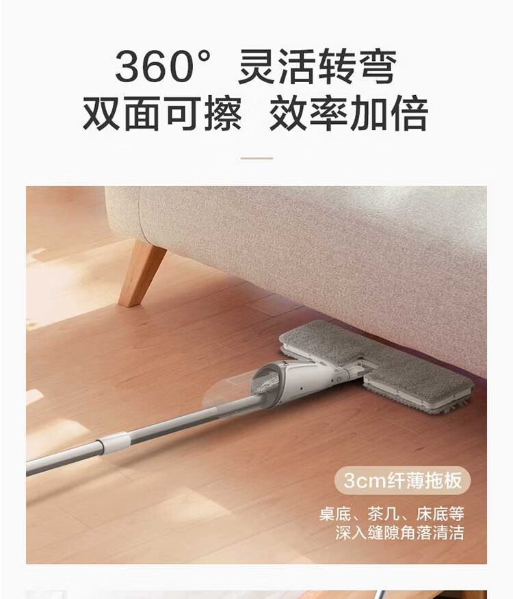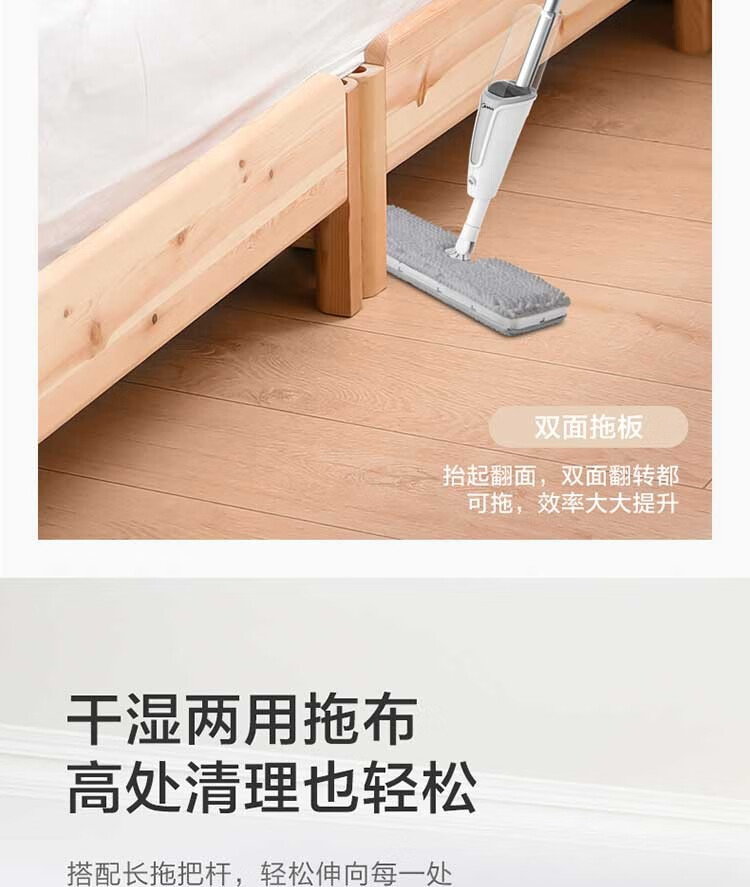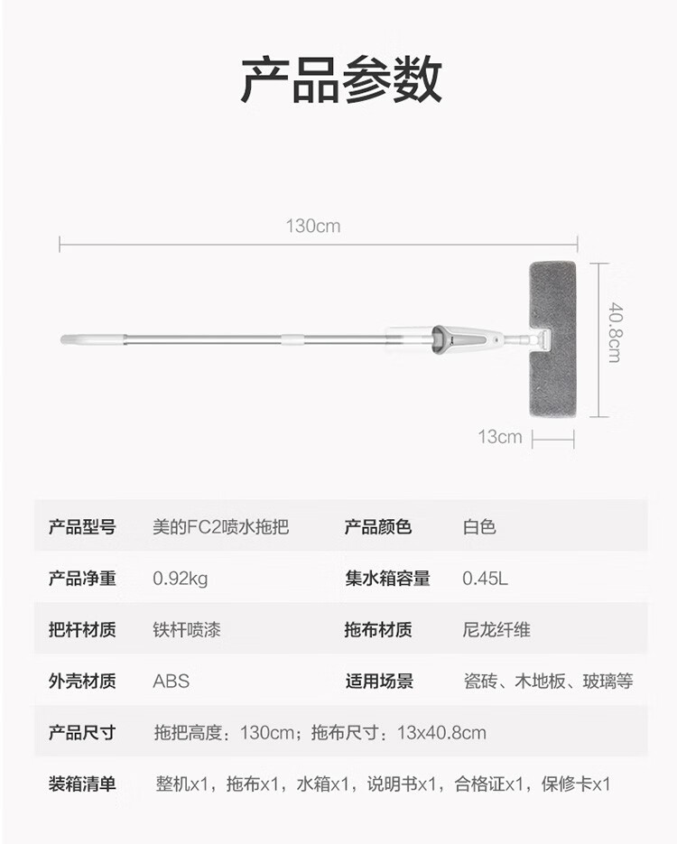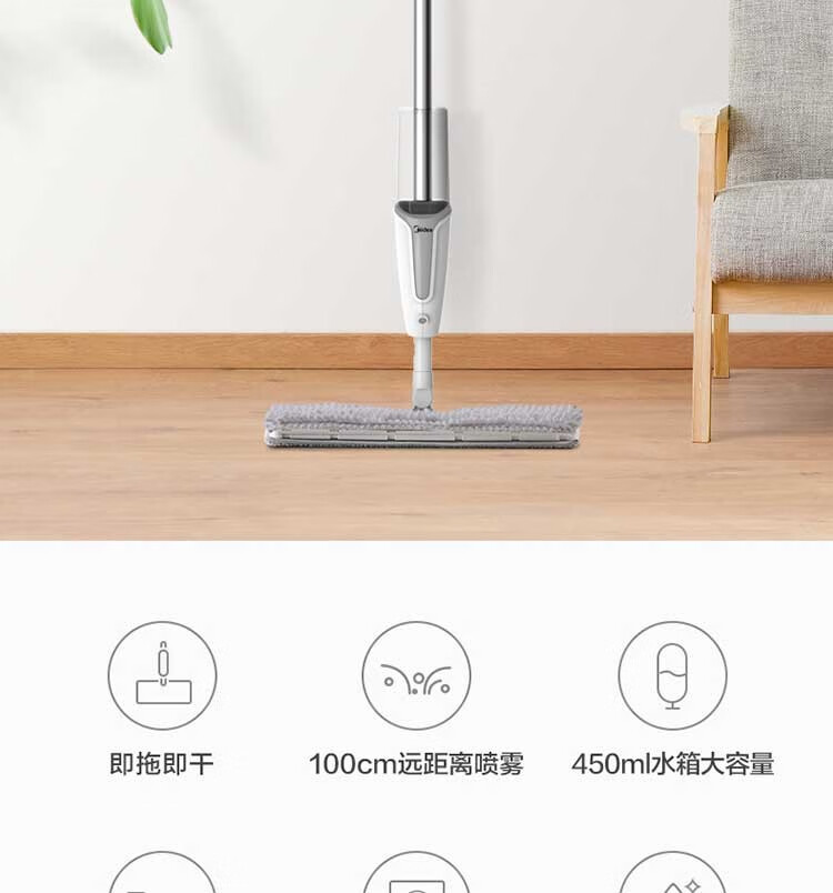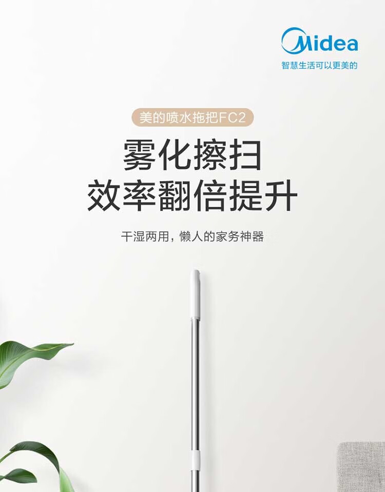 美的(Midea) 家用 FC2喷水拖把 干湿两用 360°双面可擦 450mL水箱 清洁保养地板