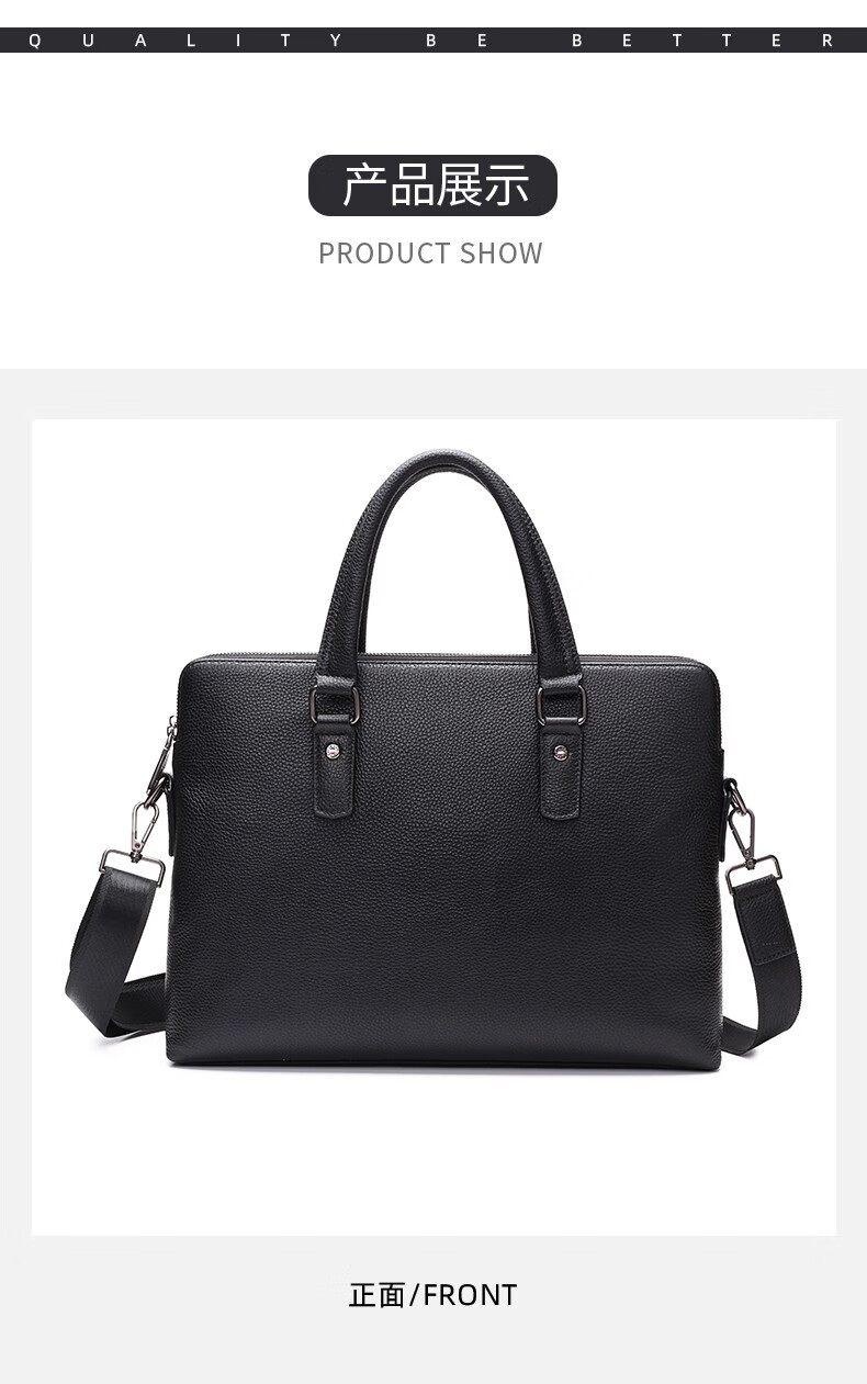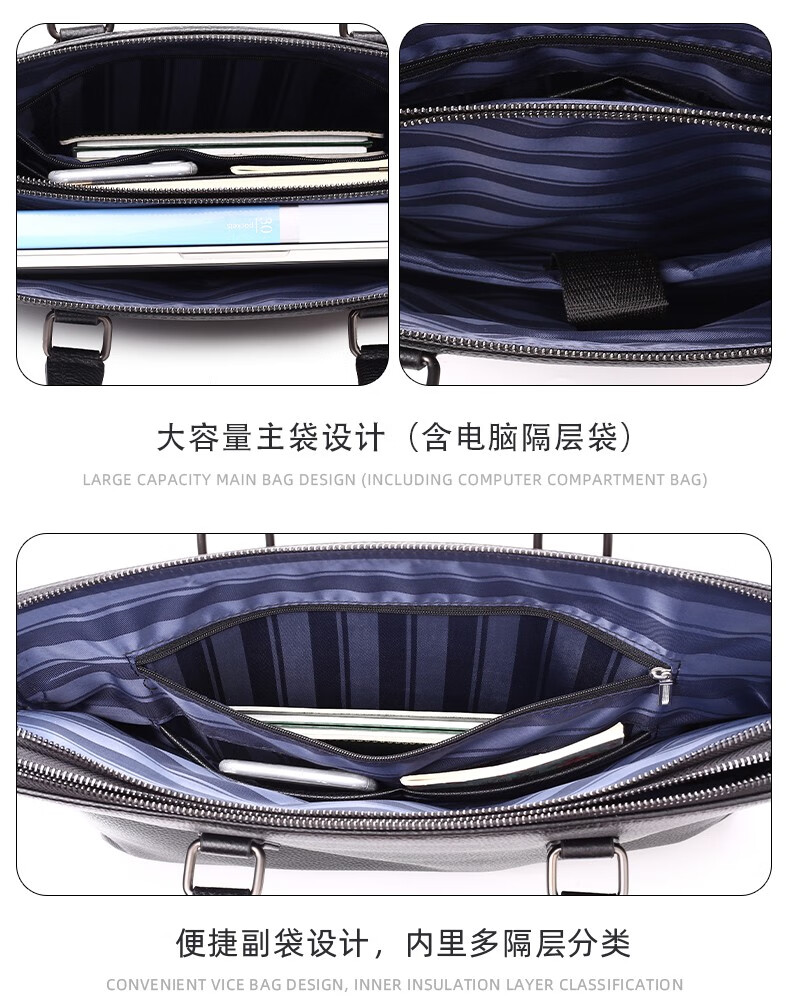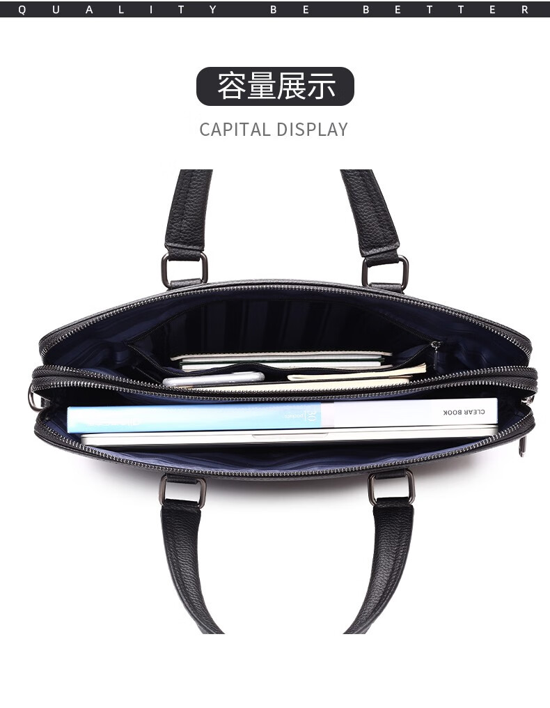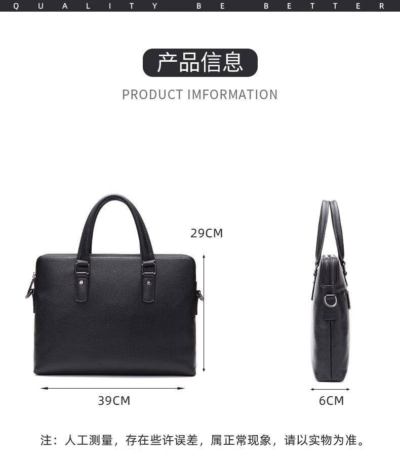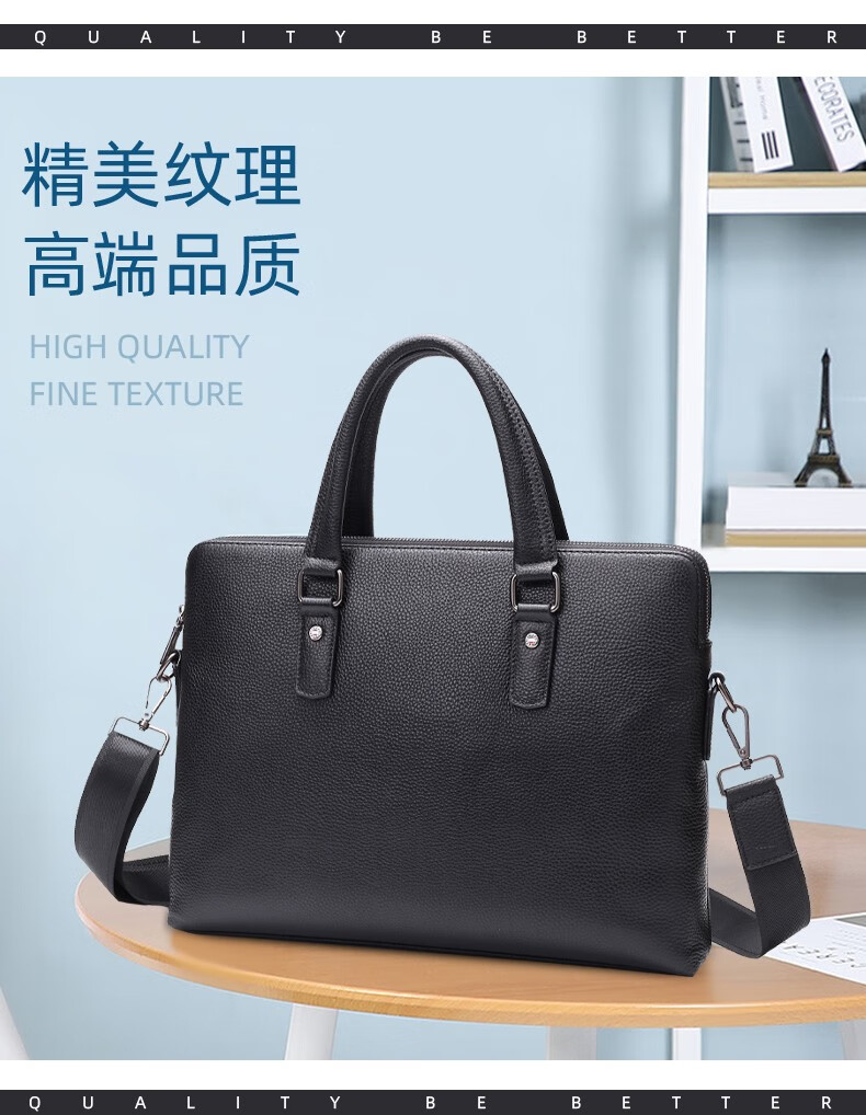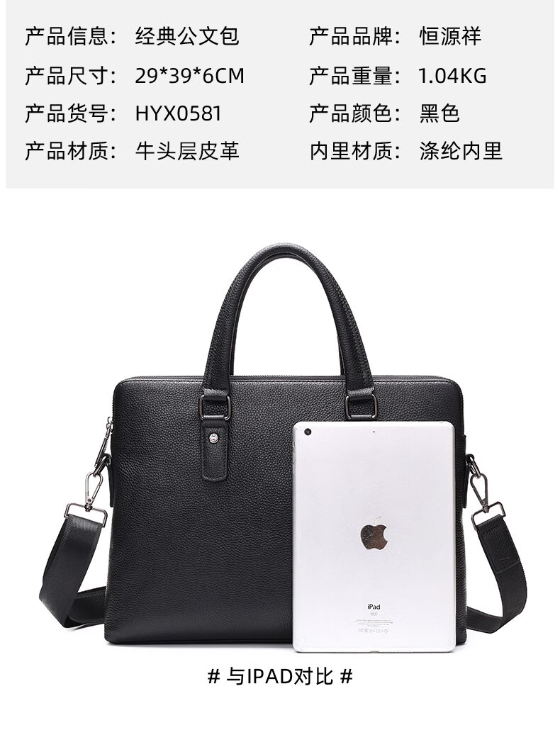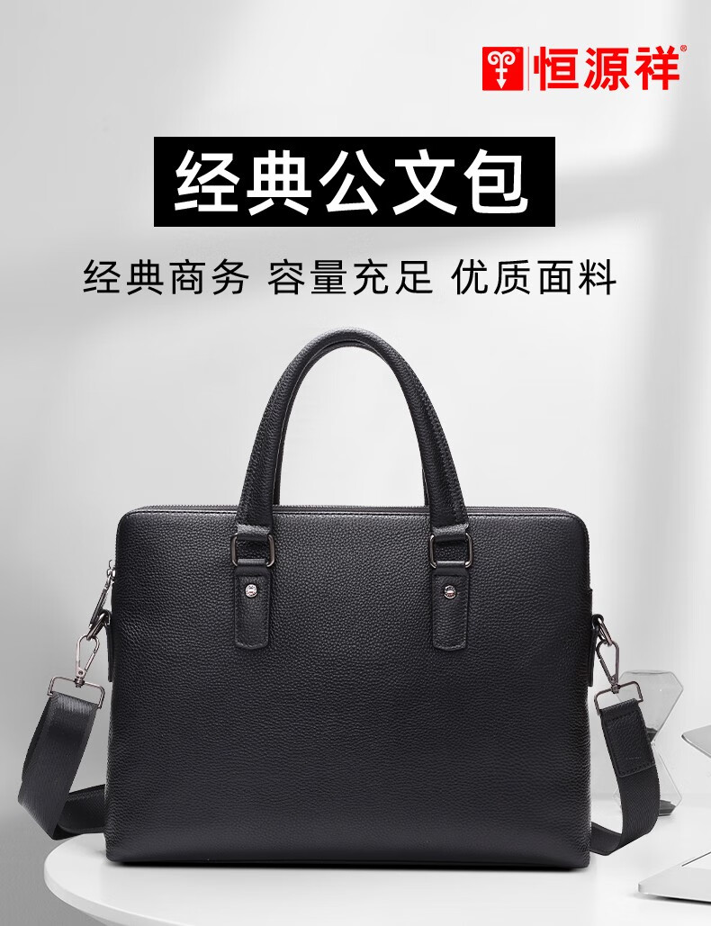 恒源祥(HYX)男士公文包休闲电脑男包律师商务头层牛皮单肩斜挎手提包男款 黑色HYX0581