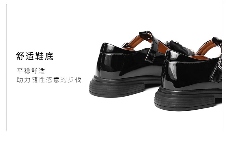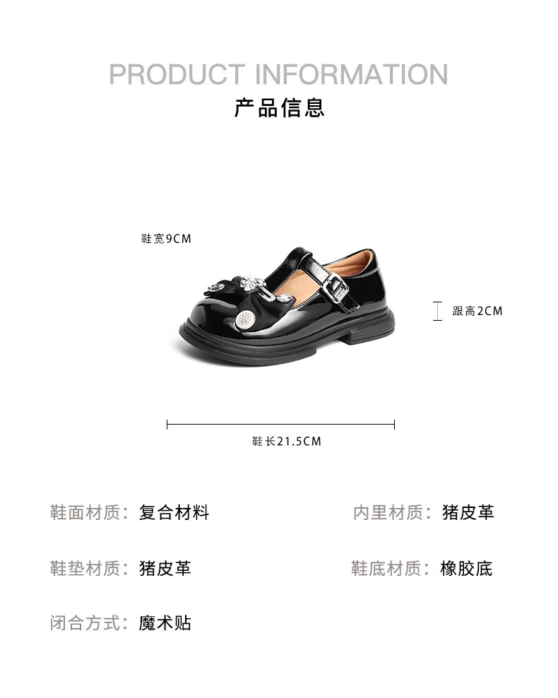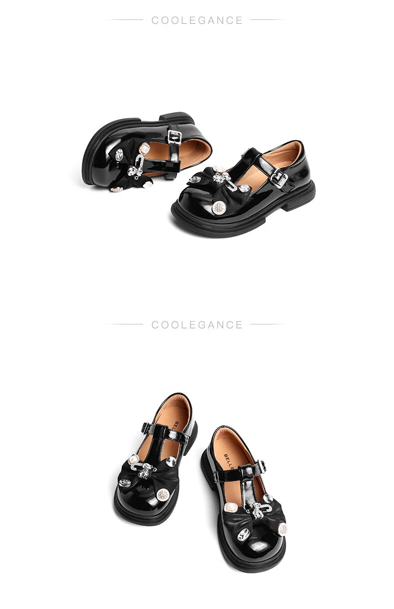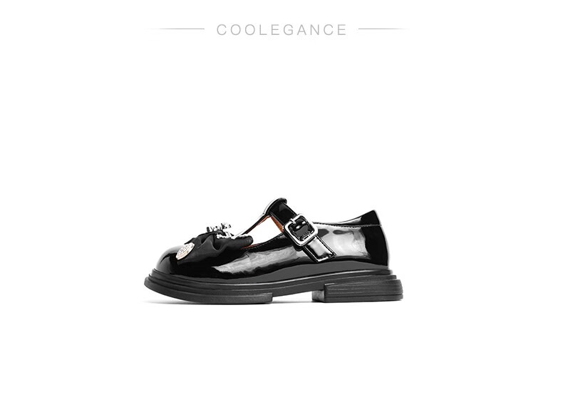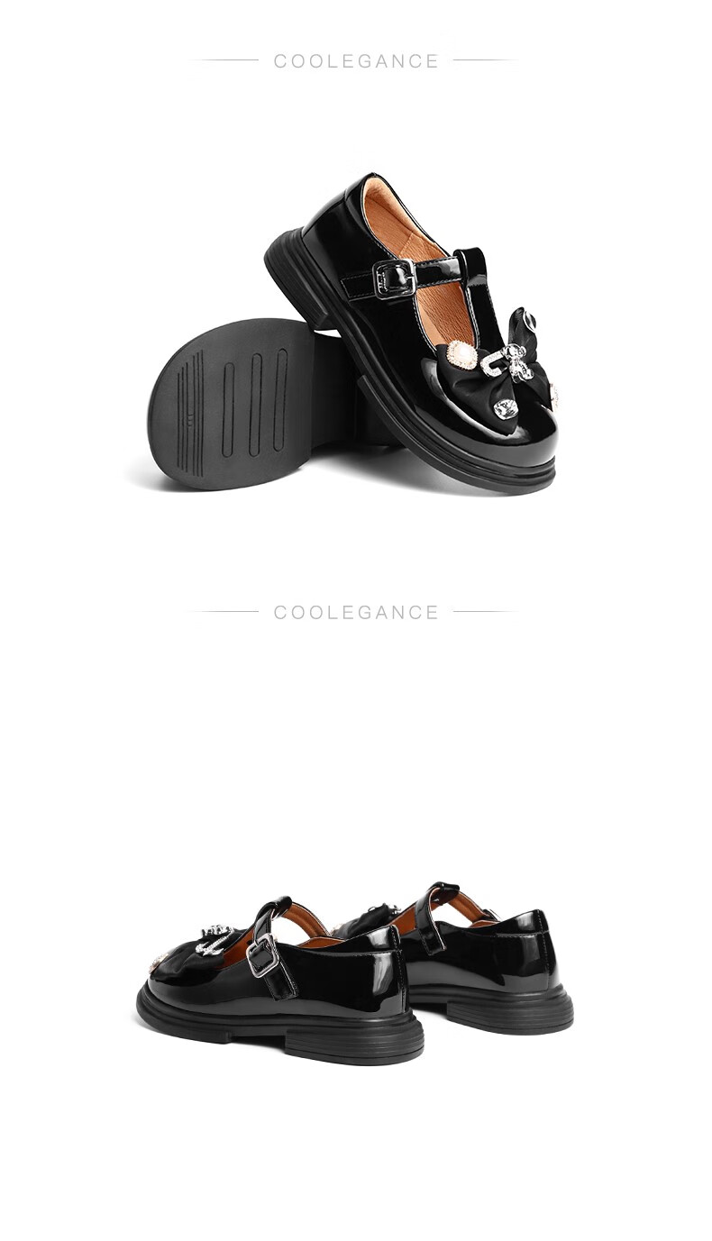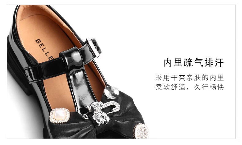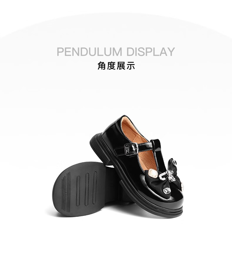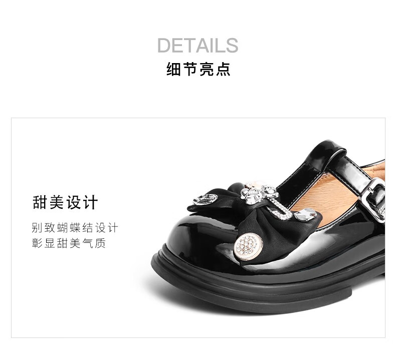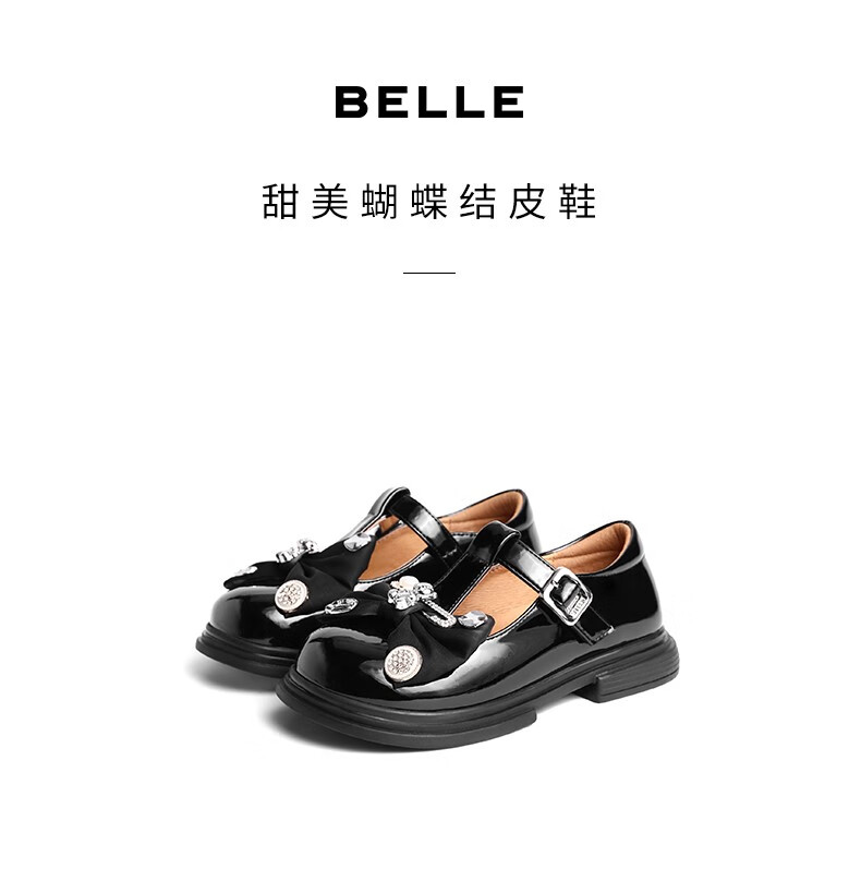 百丽质感童鞋女商场同款可爱蝴蝶结小皮鞋71120C82 黑色 34