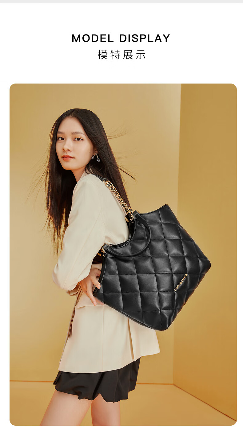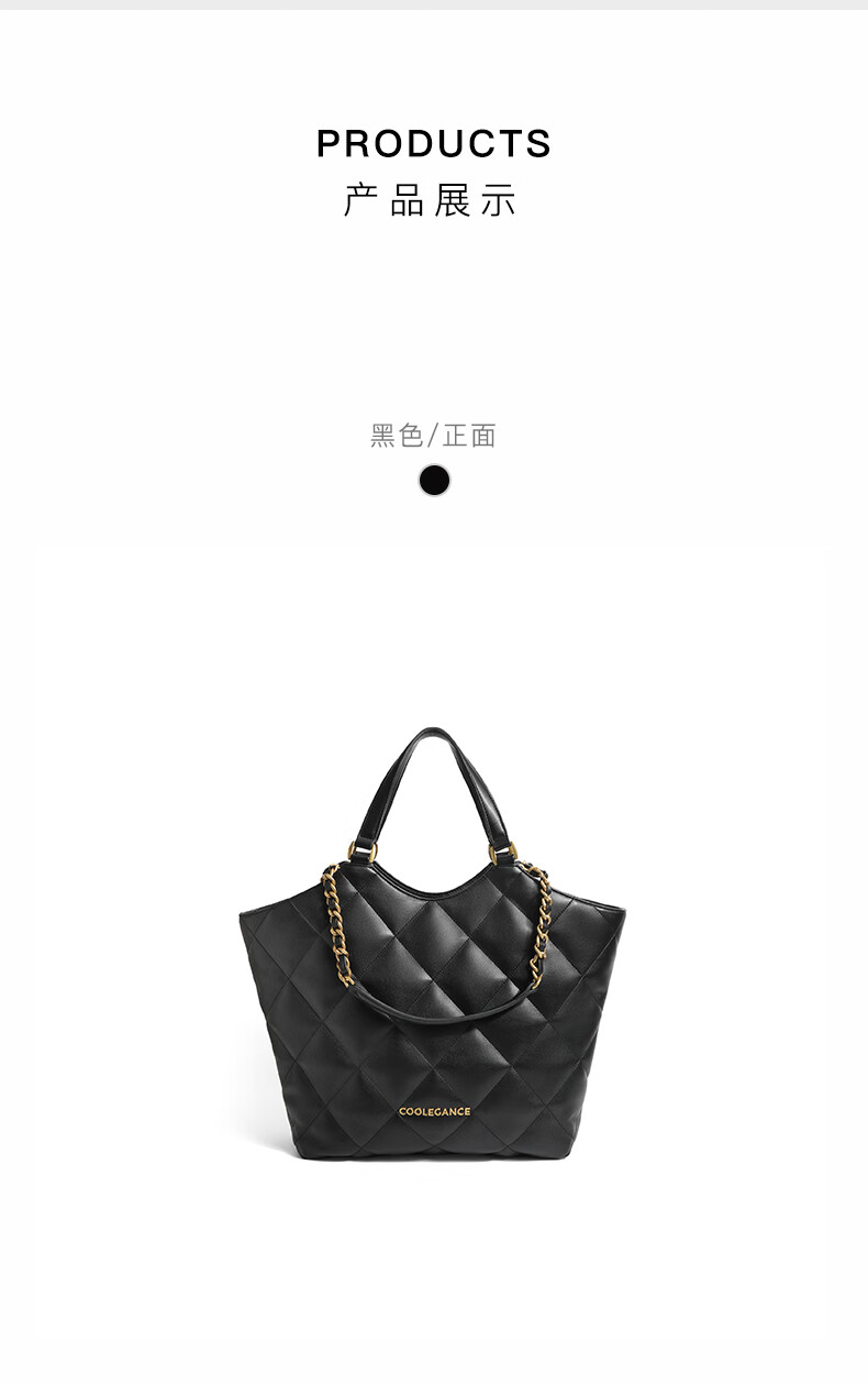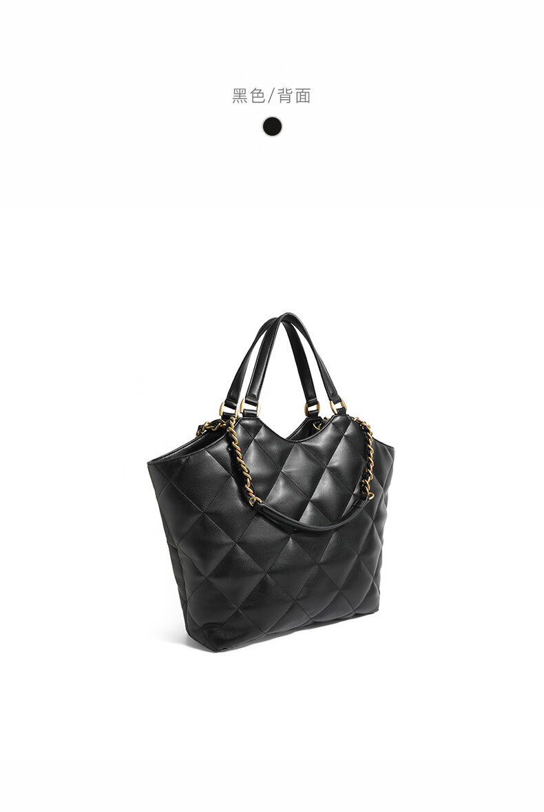 百丽时尚小香风菱格链条大容量托特包手提单肩包X6384DX2 黑色 F
