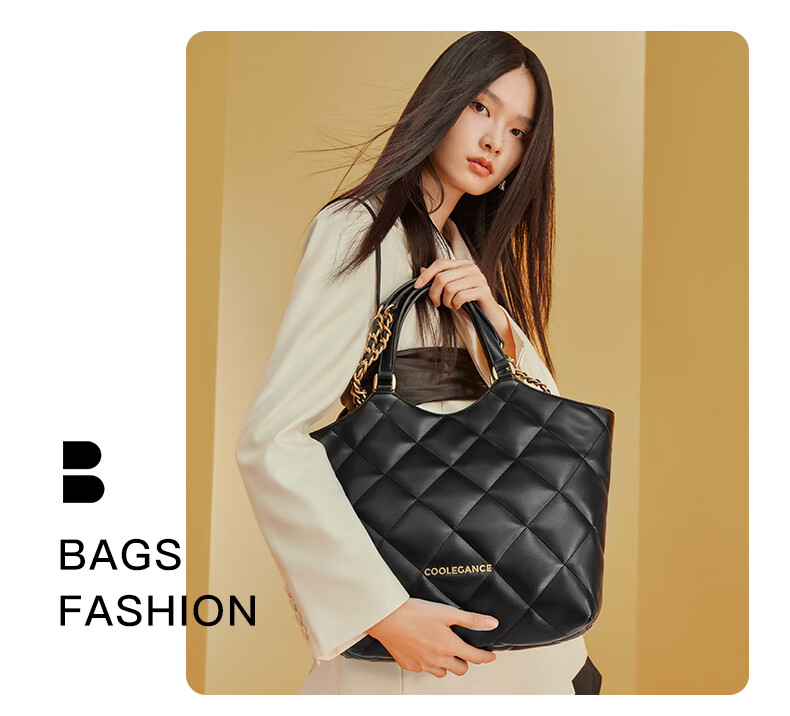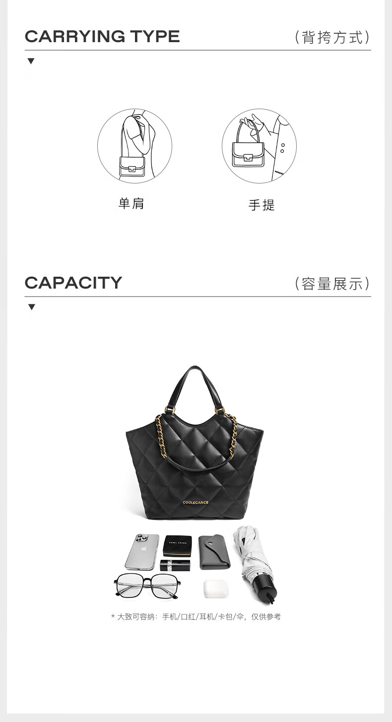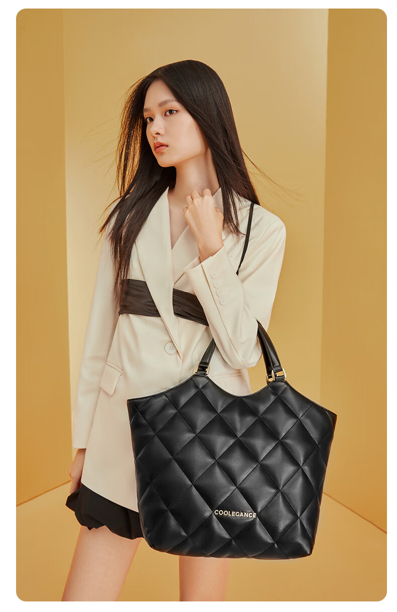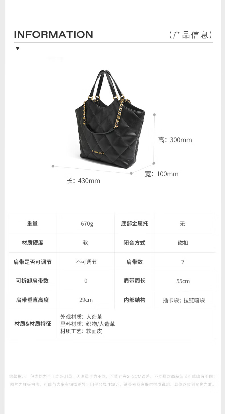 百丽时尚小香风菱格链条大容量托特包手提单肩包X6384DX2 黑色 F