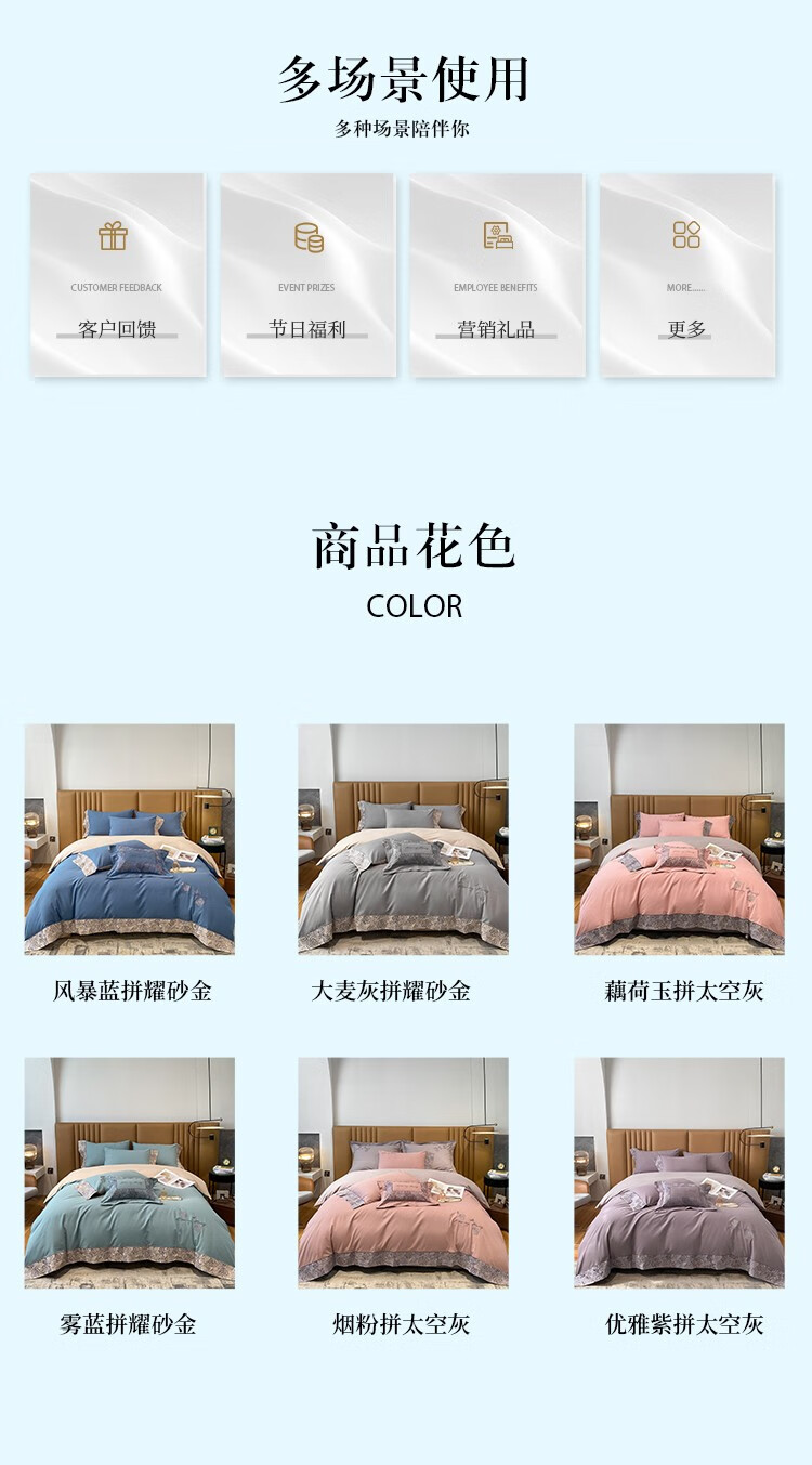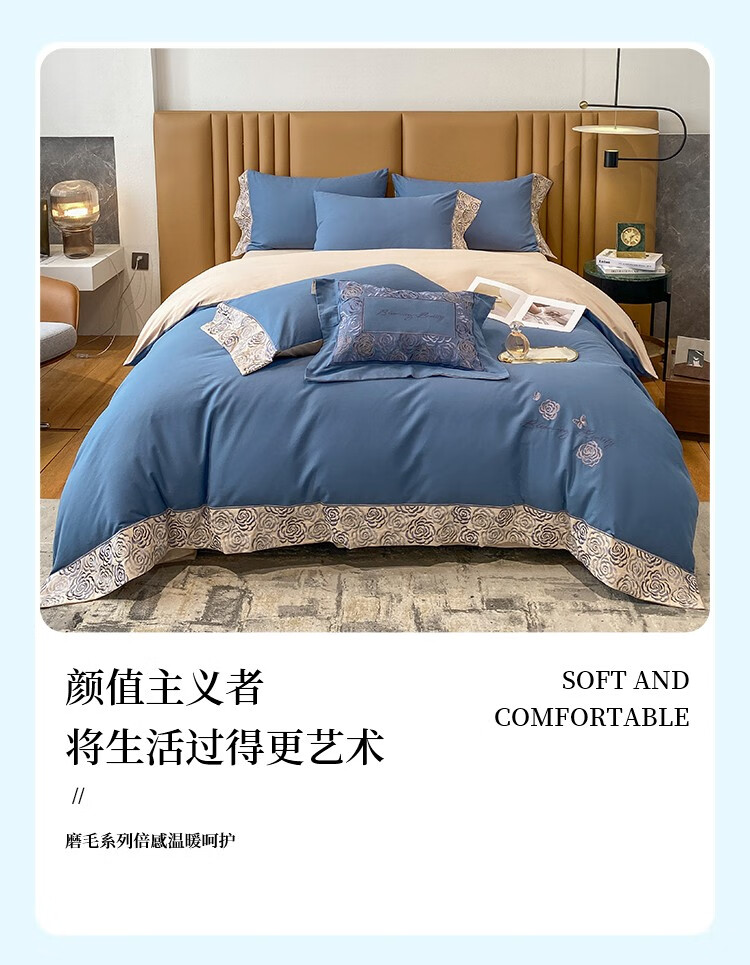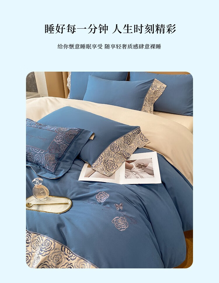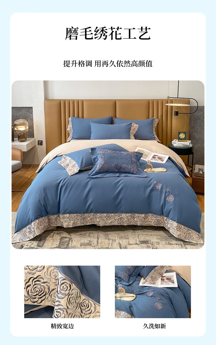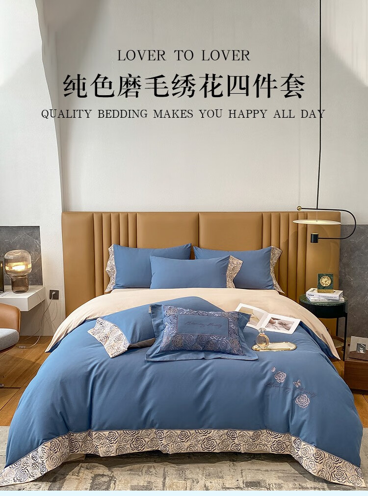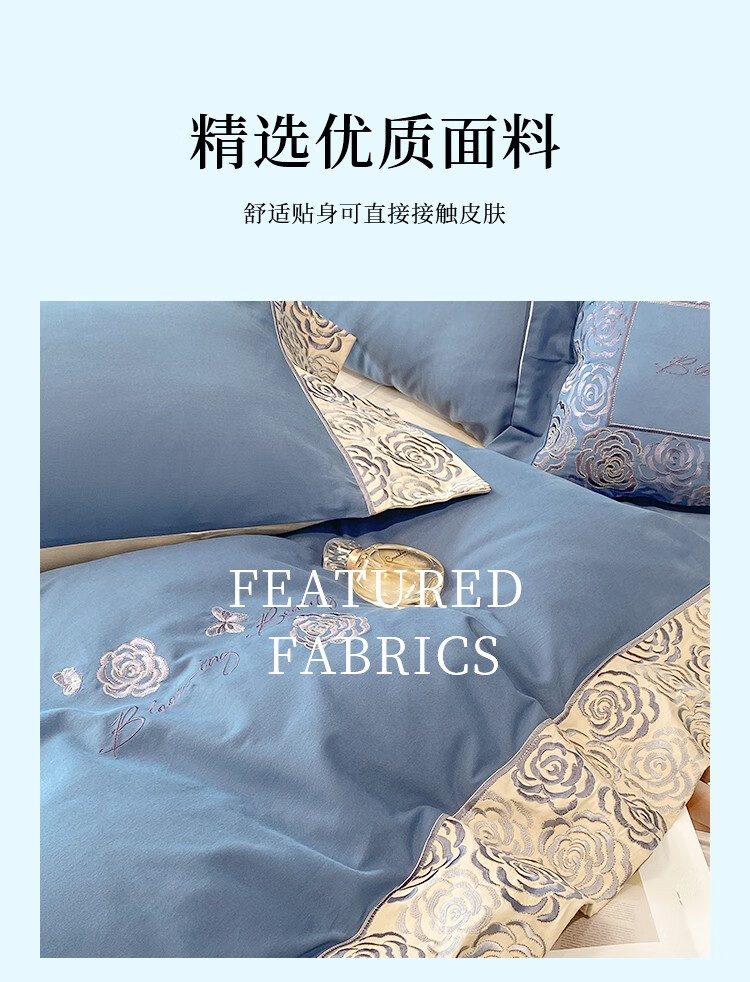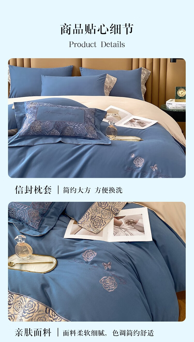 伊伊爱 纯色磨毛绣花迷蝶梦系列四件套 迷蝶梦(大麦灰拼耀砂金) 200*230cm/TJ0HJC2201725L