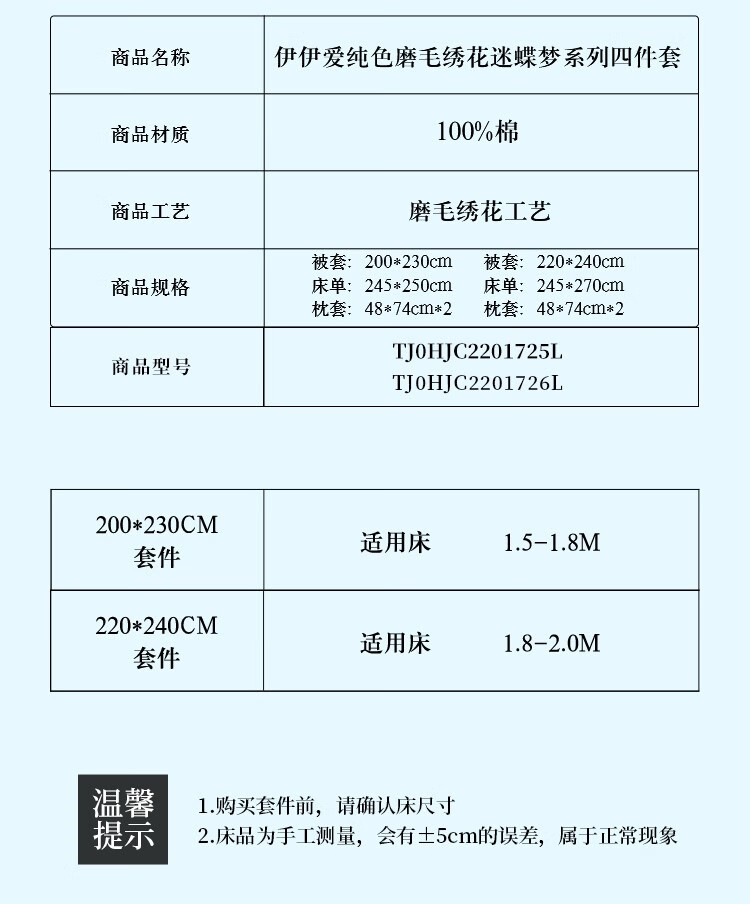 伊伊爱 纯色磨毛绣花迷蝶梦系列...
