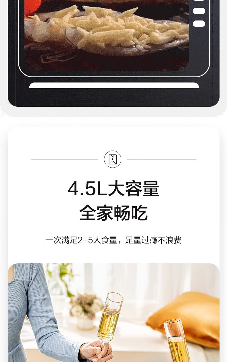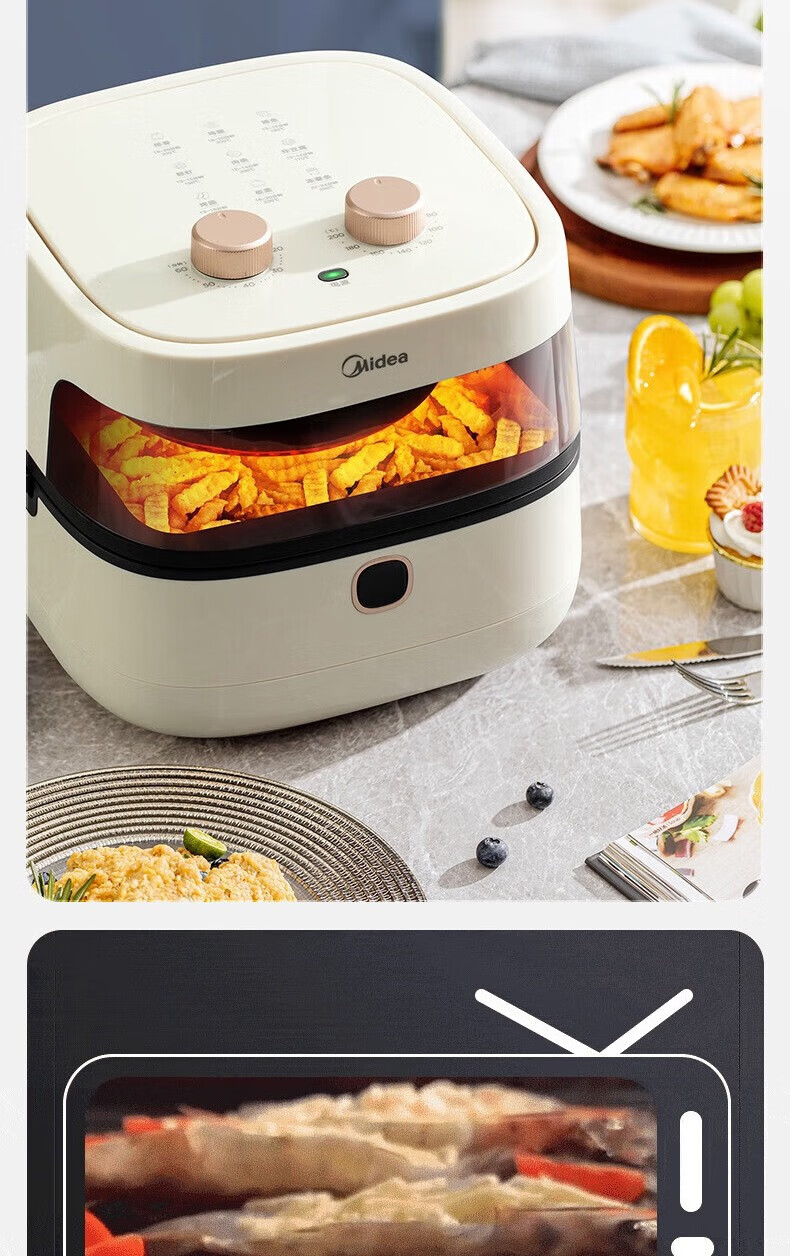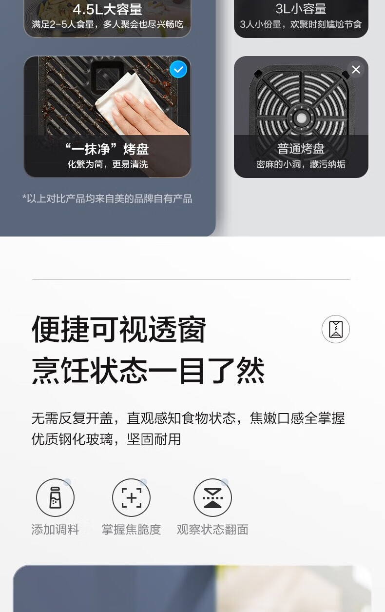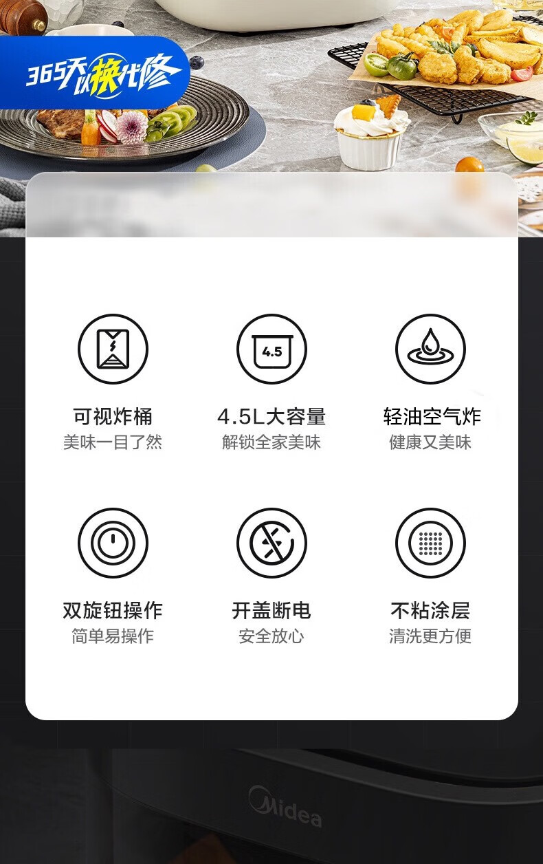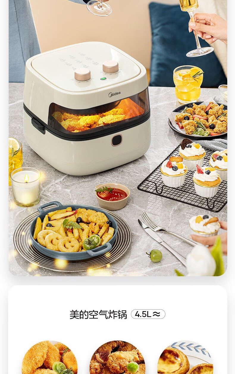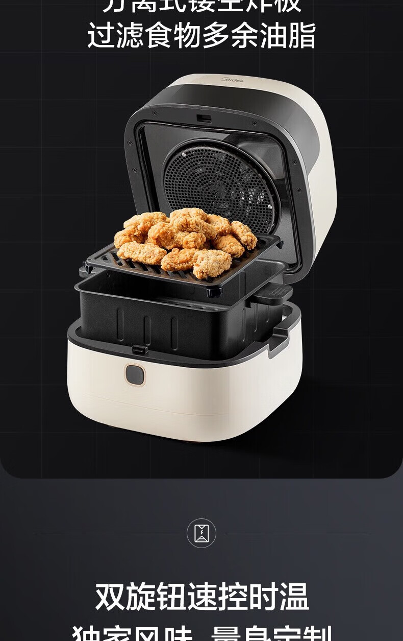美的(Midea) 超嫩力空气炸锅家用一体多功能wifi可视化7.3L大容量新款 KZE4501W【旋钮4.5升】