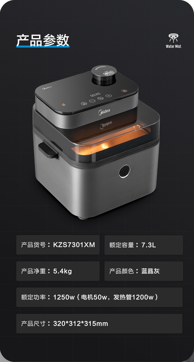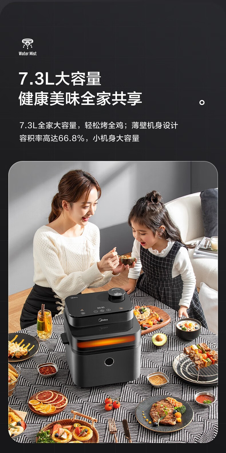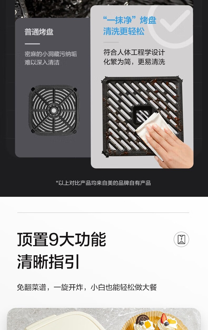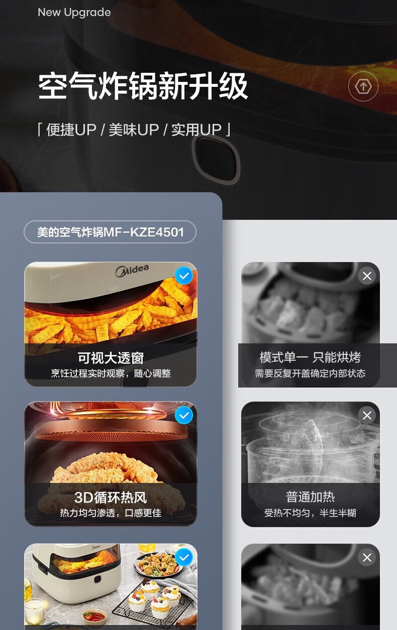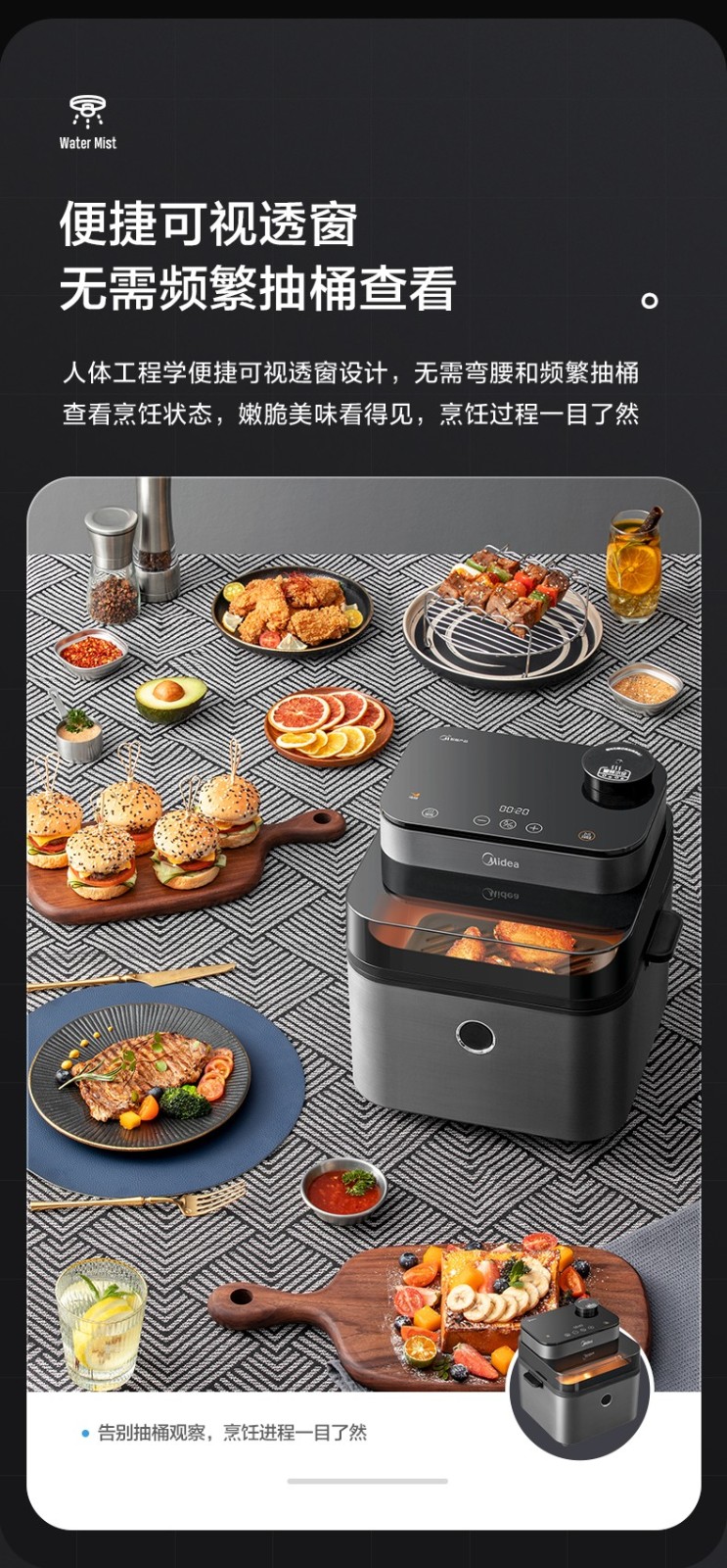 美的(Midea) 超嫩力空气炸锅家用一体多功能wifi可视化7.3L大容量新款 KZE4501W【旋钮4.5升】