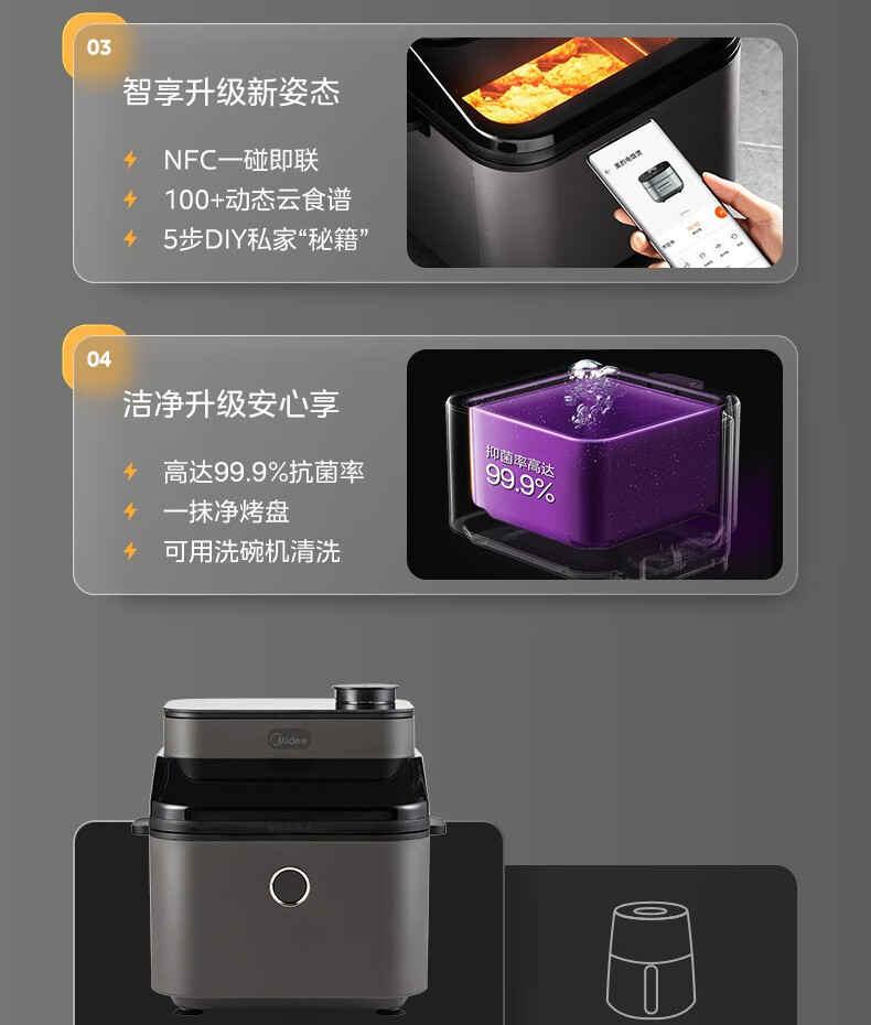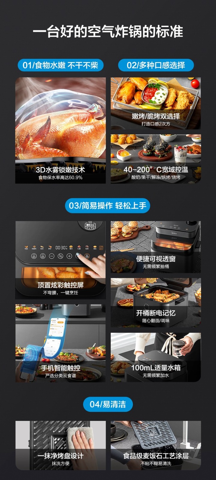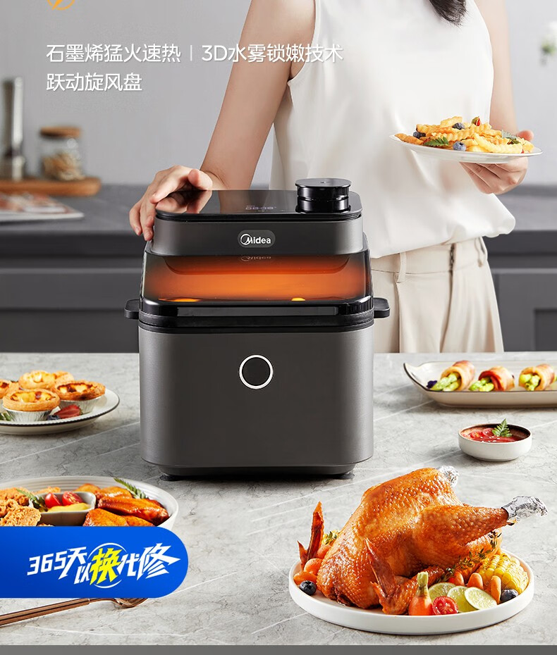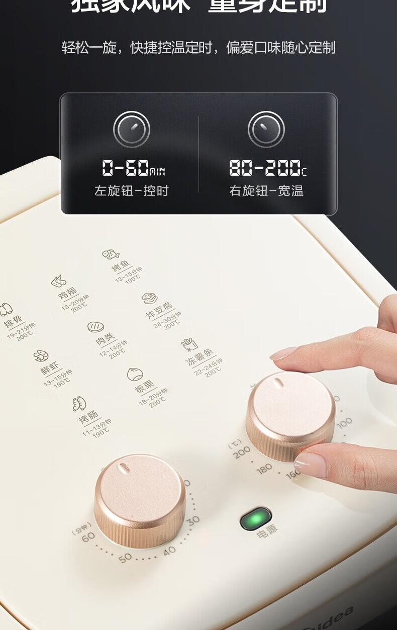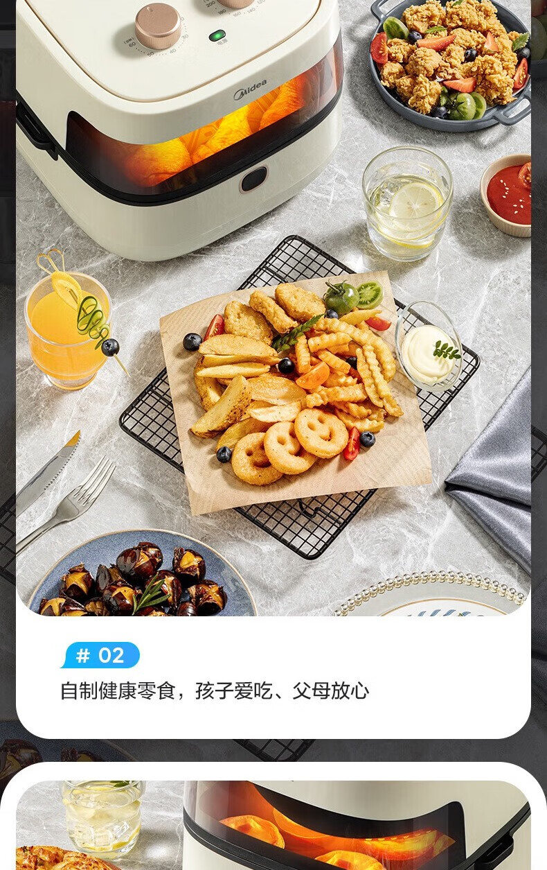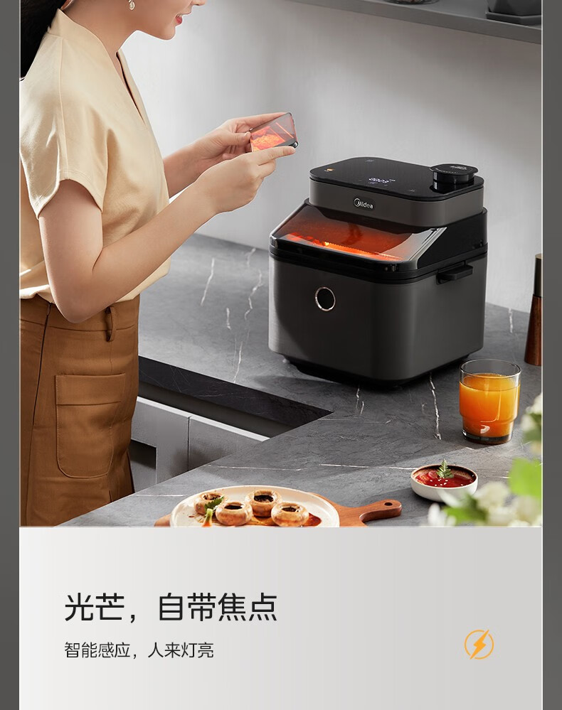 美的(Midea) 超嫩力空气炸锅家用一体多功能wifi可视化7.3L大容量新款 KZE4501W【旋钮4.5升】