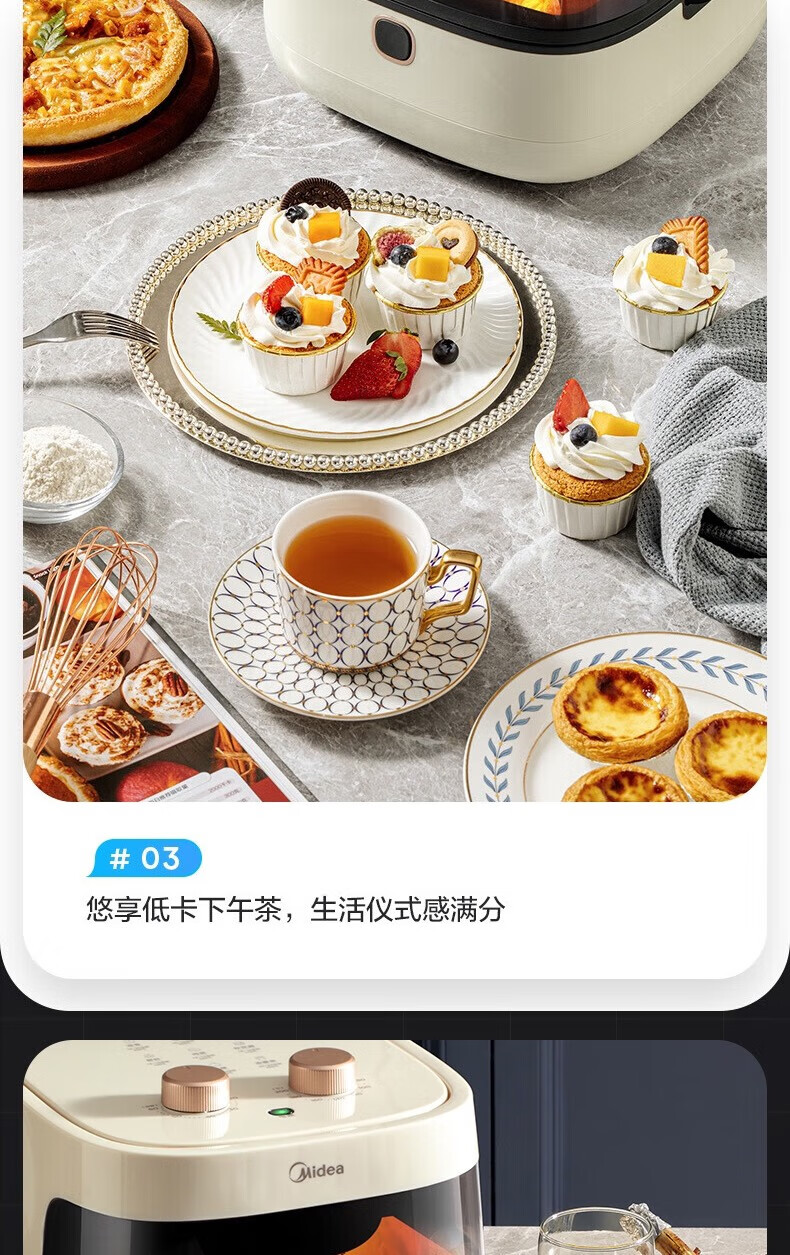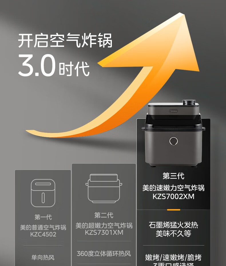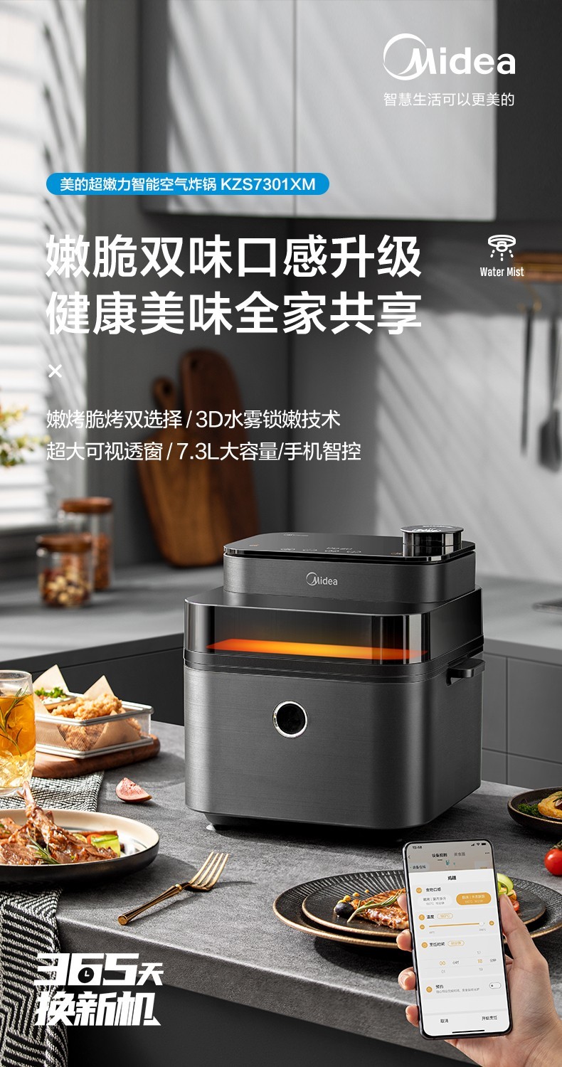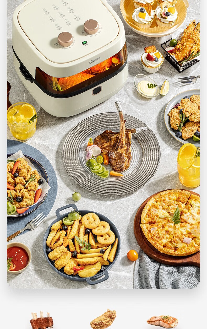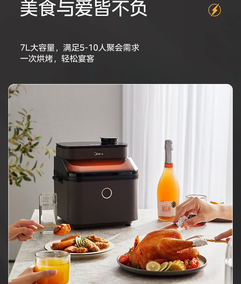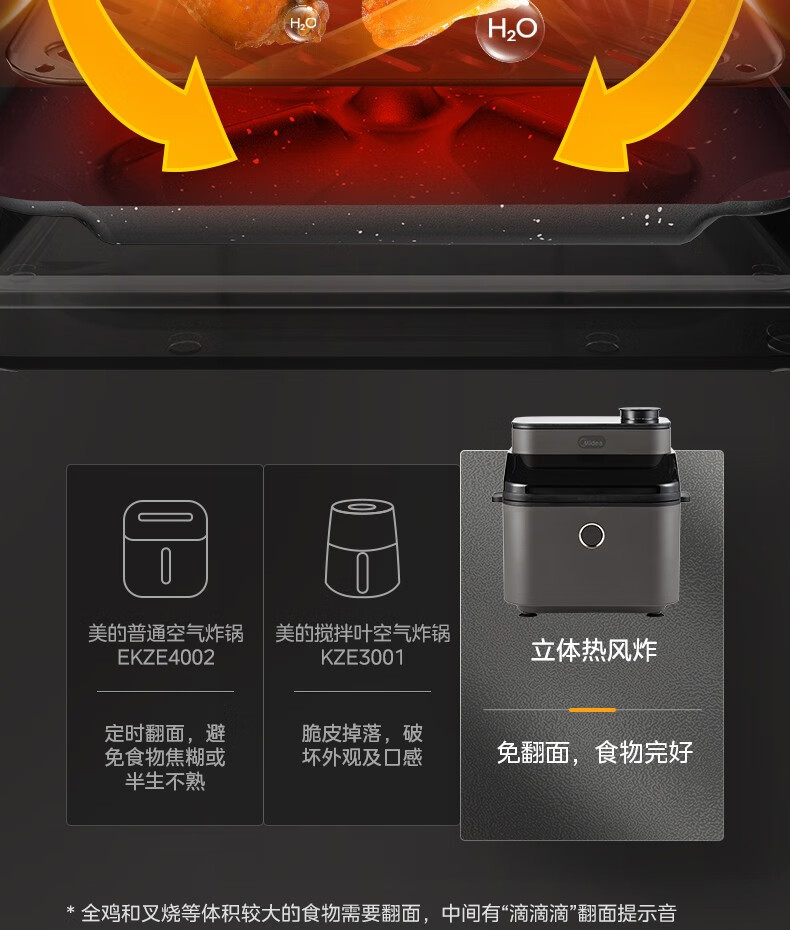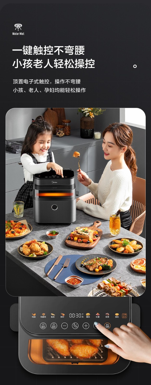美的(Midea) 超嫩力空气炸锅家用一体多功能wifi可视化7.3L大容量新款 KZE4501W【旋钮4.5升】