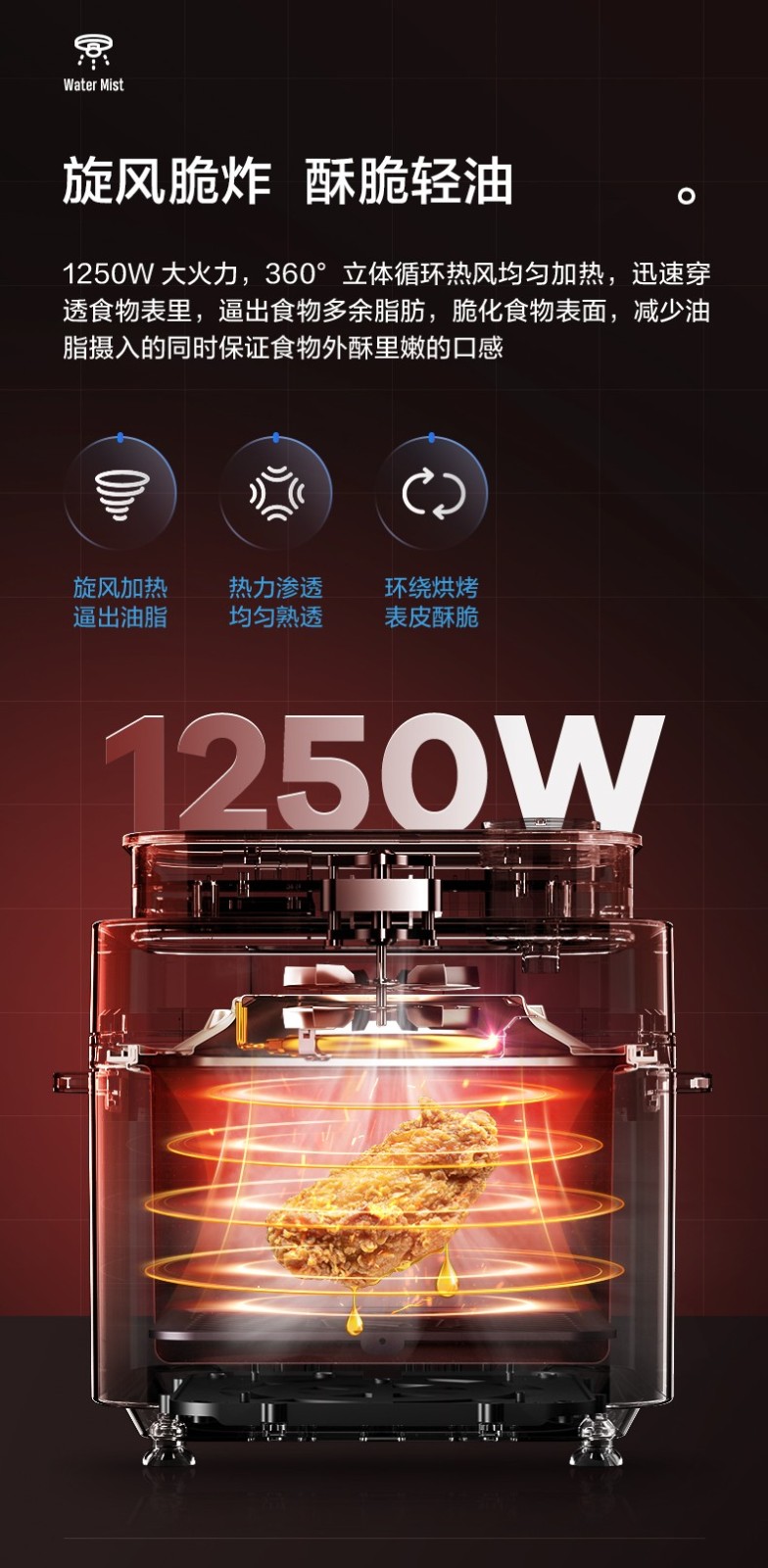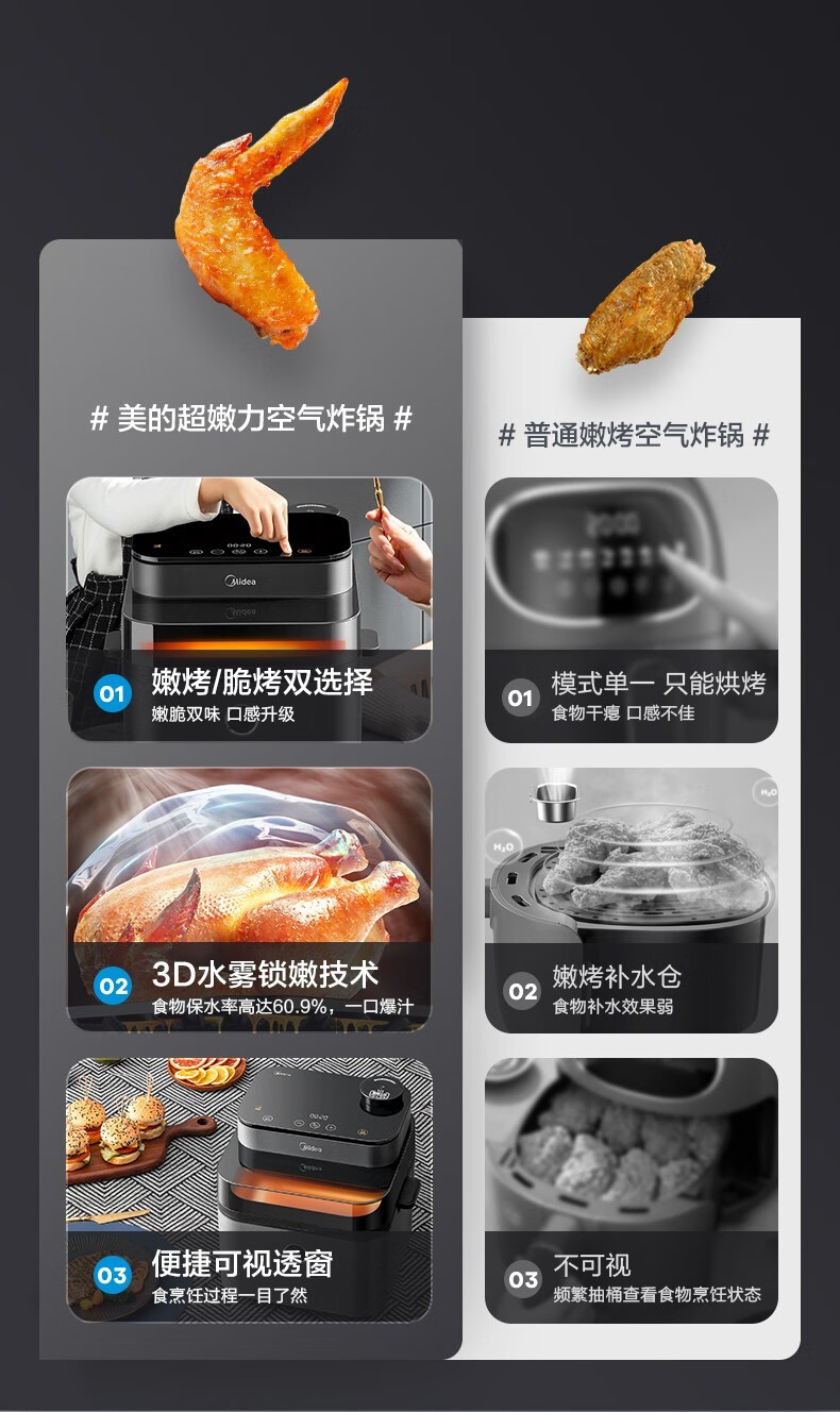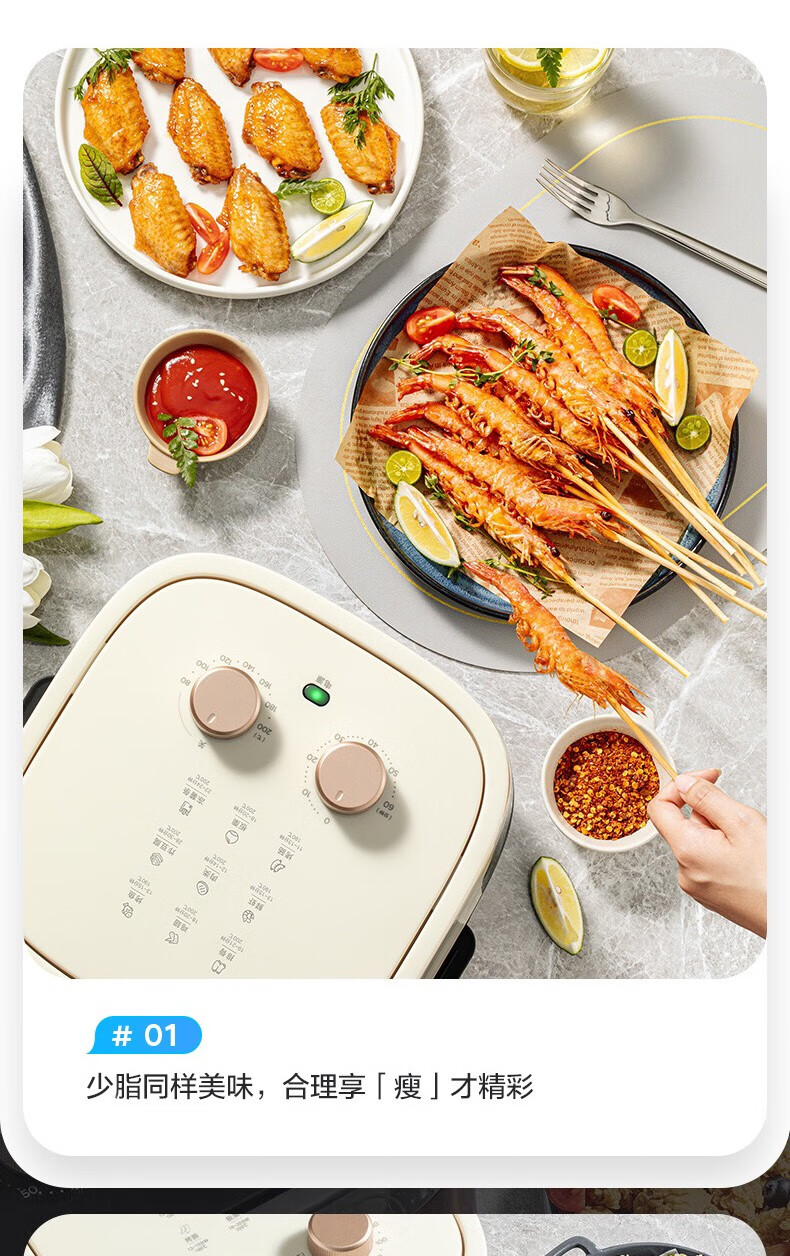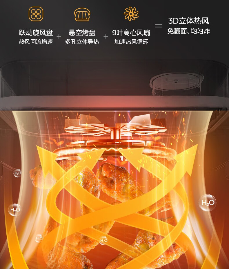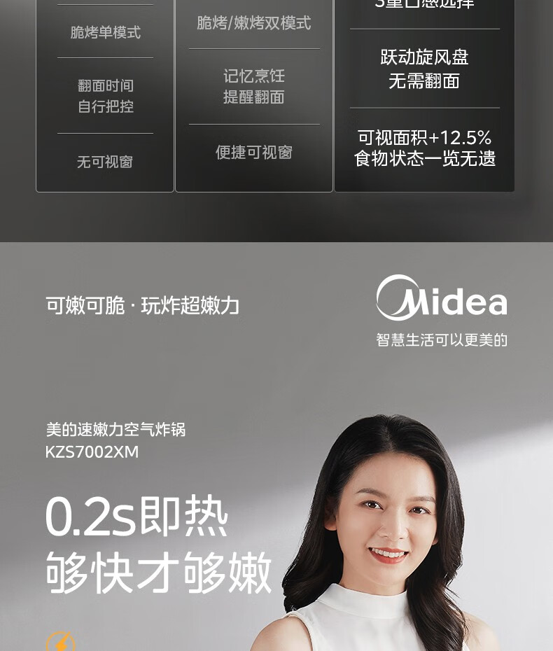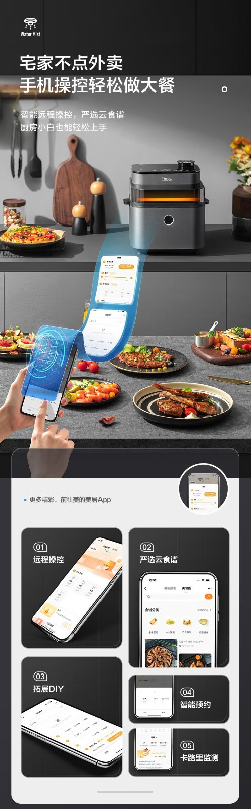 美的(Midea) 超嫩力空气炸锅家用一体多功能wifi可视化7.3L大容量新款 KZE4501W【旋钮4.5升】
