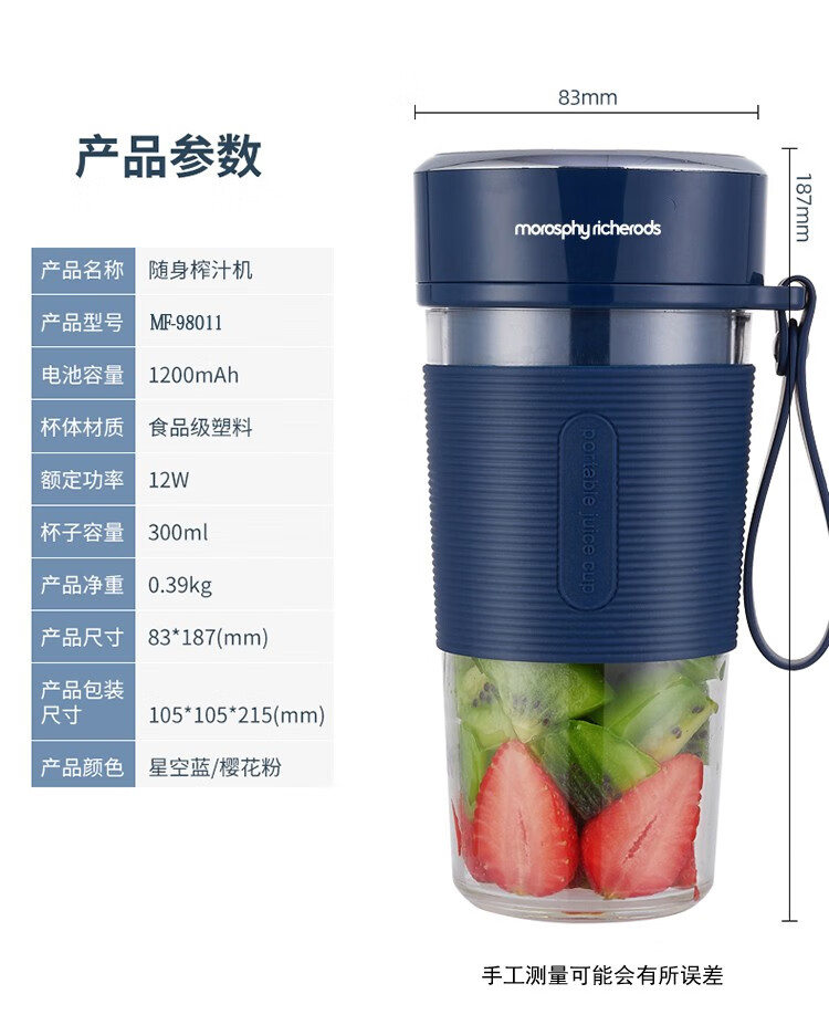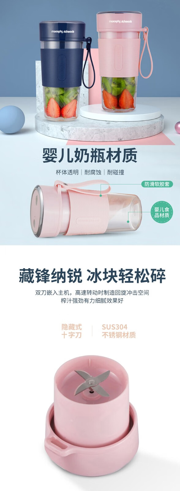 morosphy richerods 榨汁机果汁机气泡果汁杯榨汁杯家用便携式水果快速鲜榨礼品 MF-98011(粉色)