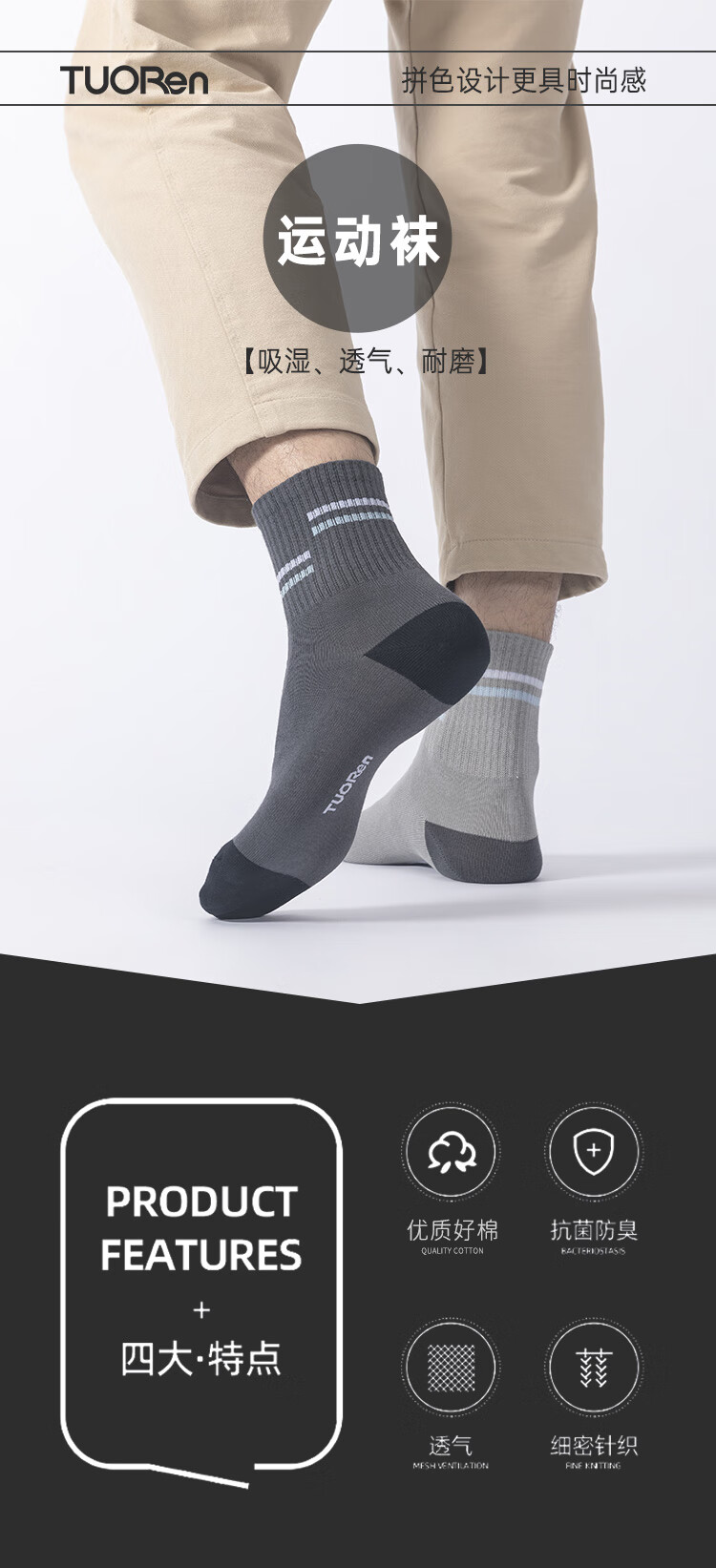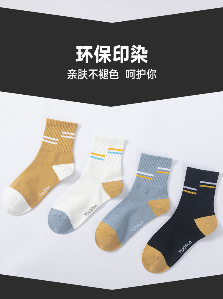 驼人康君男女情侣袜四季款中筒运动袜抑菌消臭袜4双装送老公送男友 女款4双