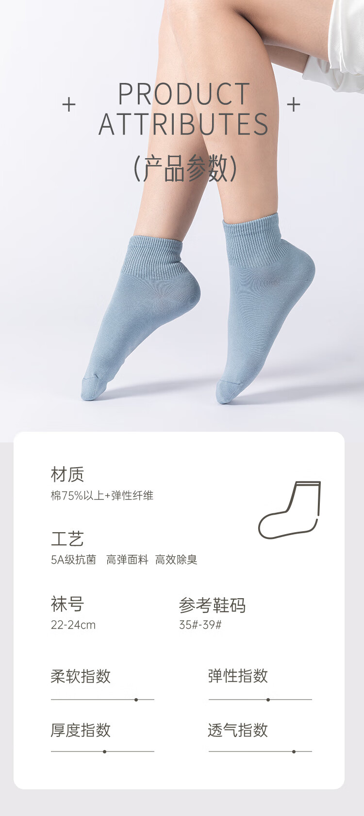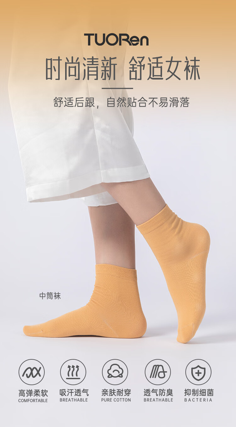驼人康君抑菌短袜春夏秋季学生女纯色抑菌透气浅消臭口袜低帮短筒薄款 中筒