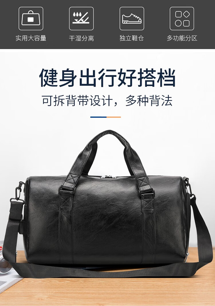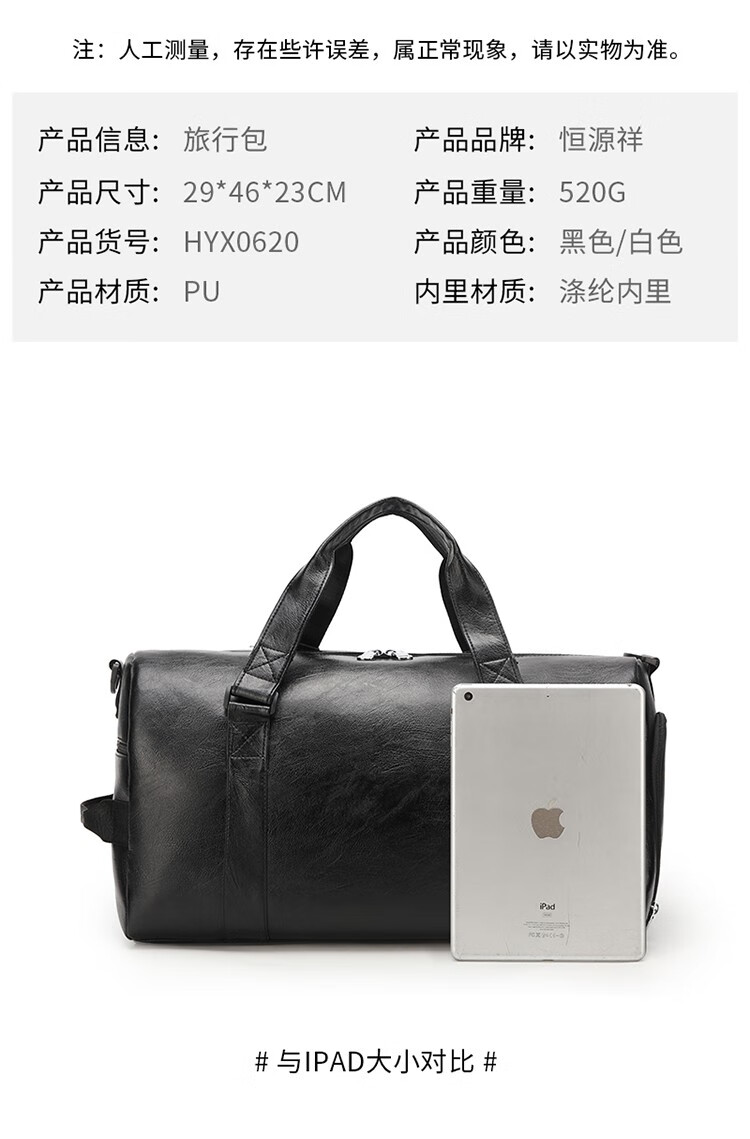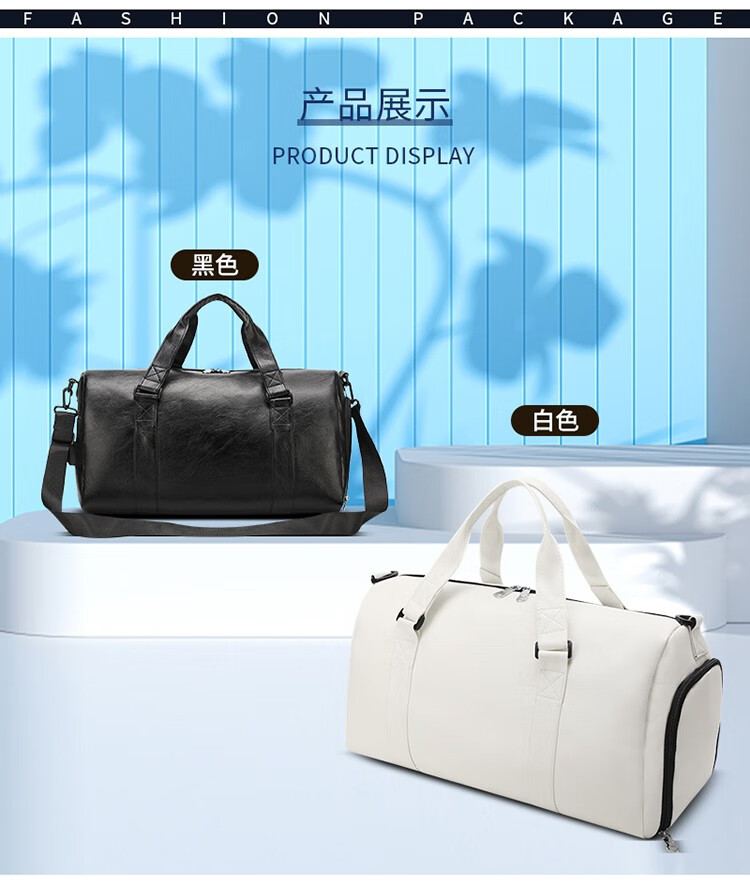 恒源祥(HYX)大容量手提旅游行李袋男轻便干湿分离运动健身瑜伽包短途旅行包女 白色
