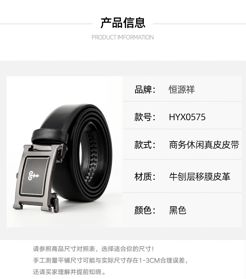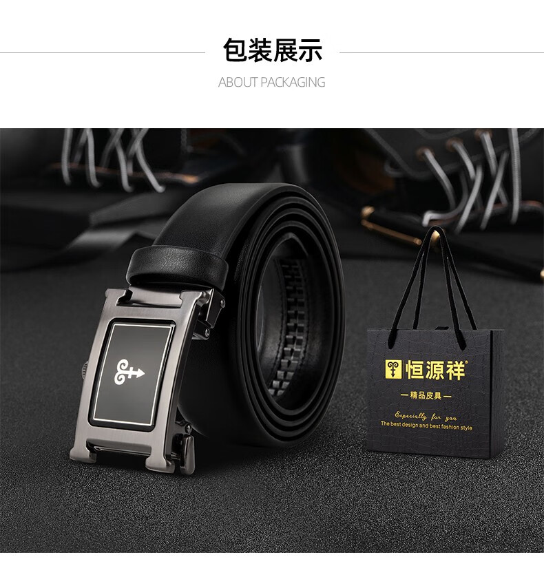 恒源祥(HYX)(HYX)男士皮带真皮年轻人商务牛皮自动扣裤腰带送男友生日礼物 黑色