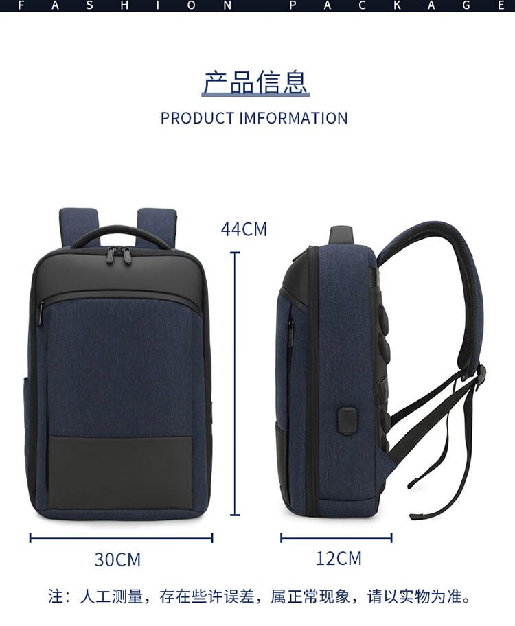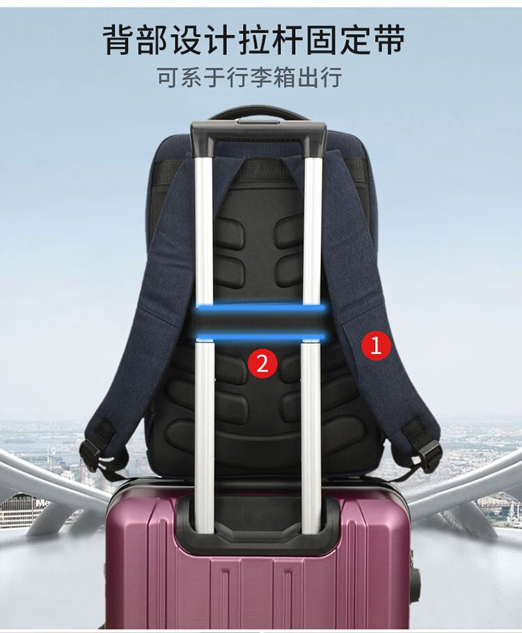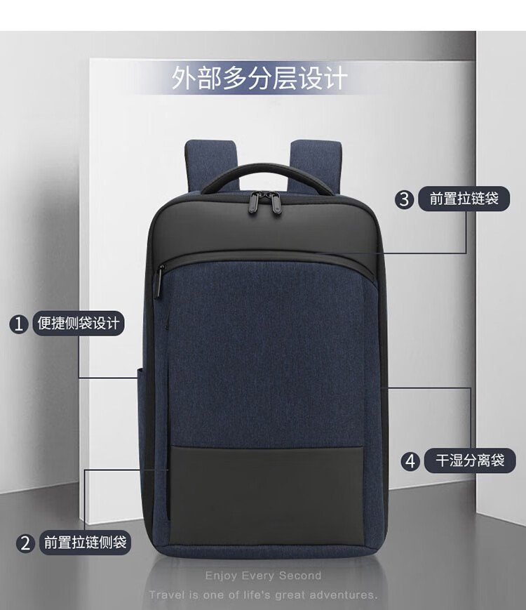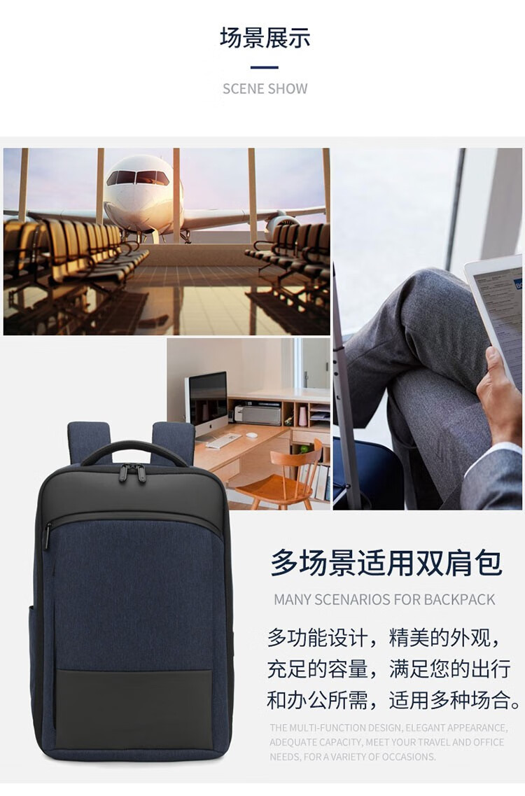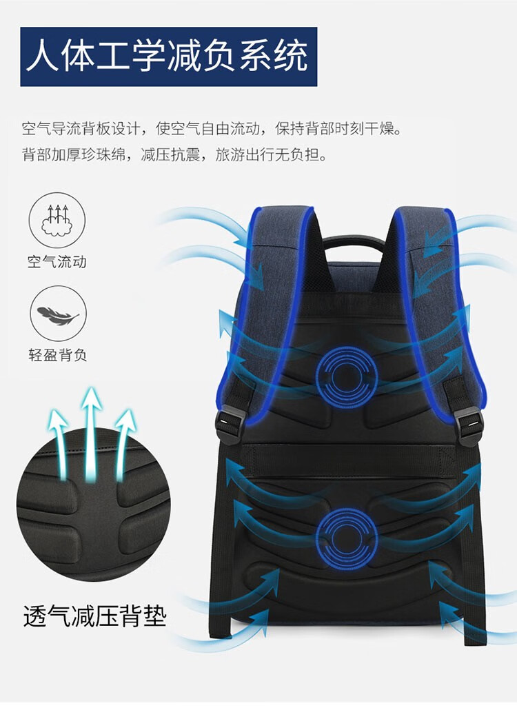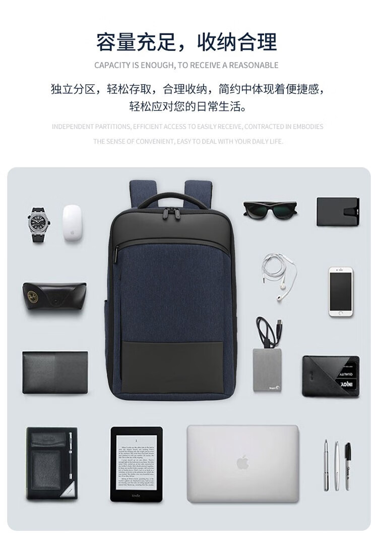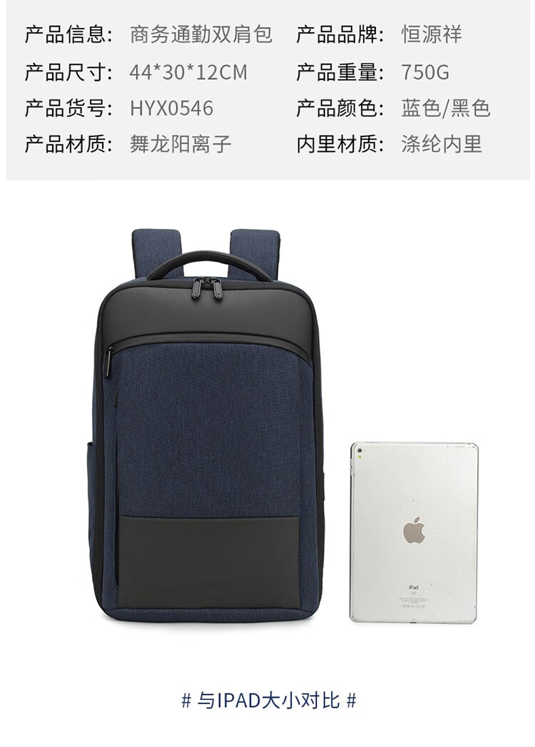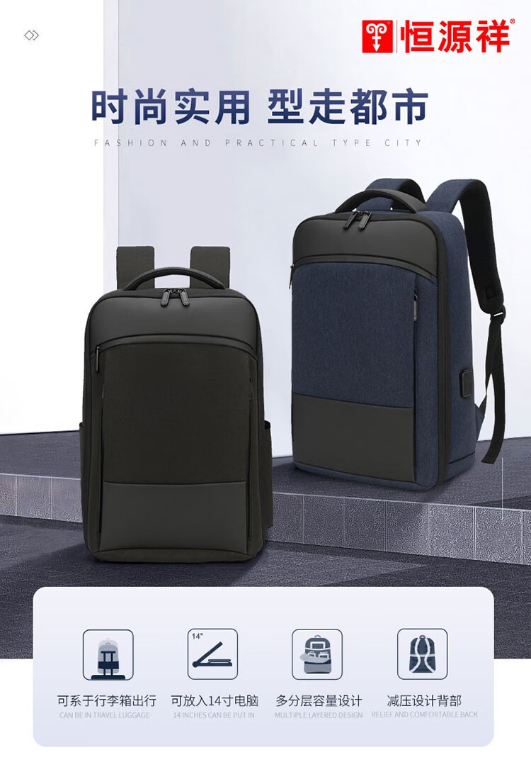 恒源祥(HYX)商务通勤双肩包男士大容量旅行包电脑背包时尚潮流大学生书包 黑色