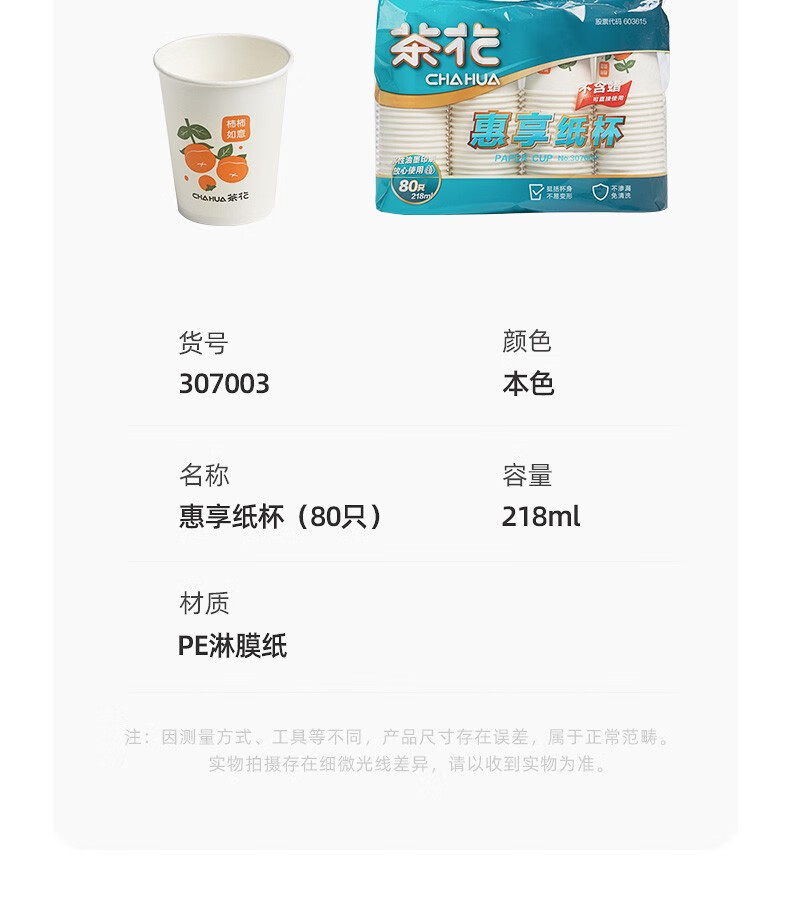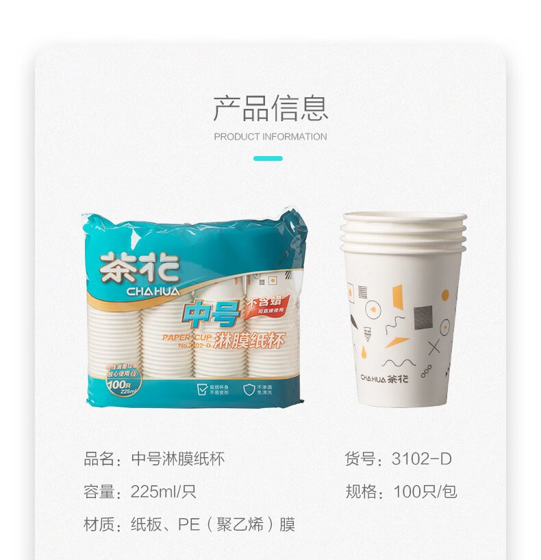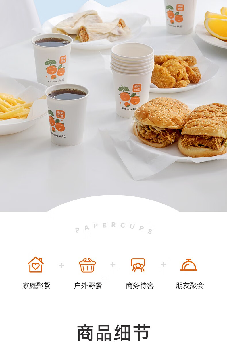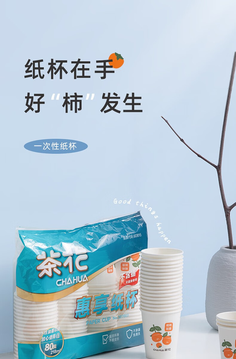 茶花(CHAHUA)一次性杯子纸杯家用办公结婚公司豆浆咖啡饮料水杯食品级茶杯 【200只】食品级材质