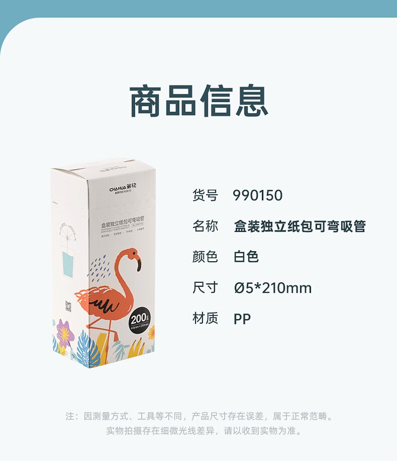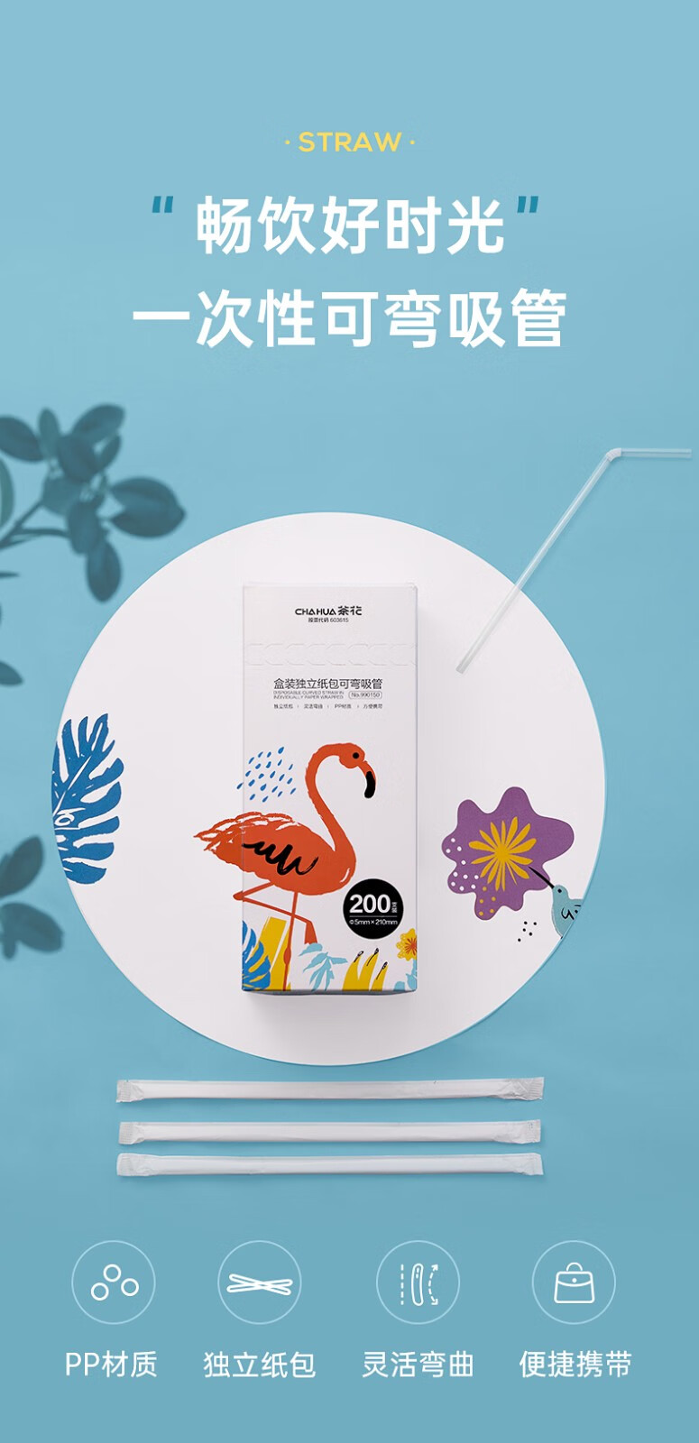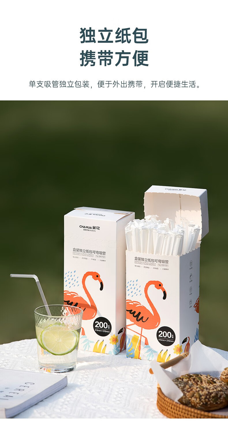茶花(CHAHUA)吸管一次性单独包装食品级塑料孕妇产后儿童宝宝奶茶单只弯头 【8盒共1600只】盒装独立吸管