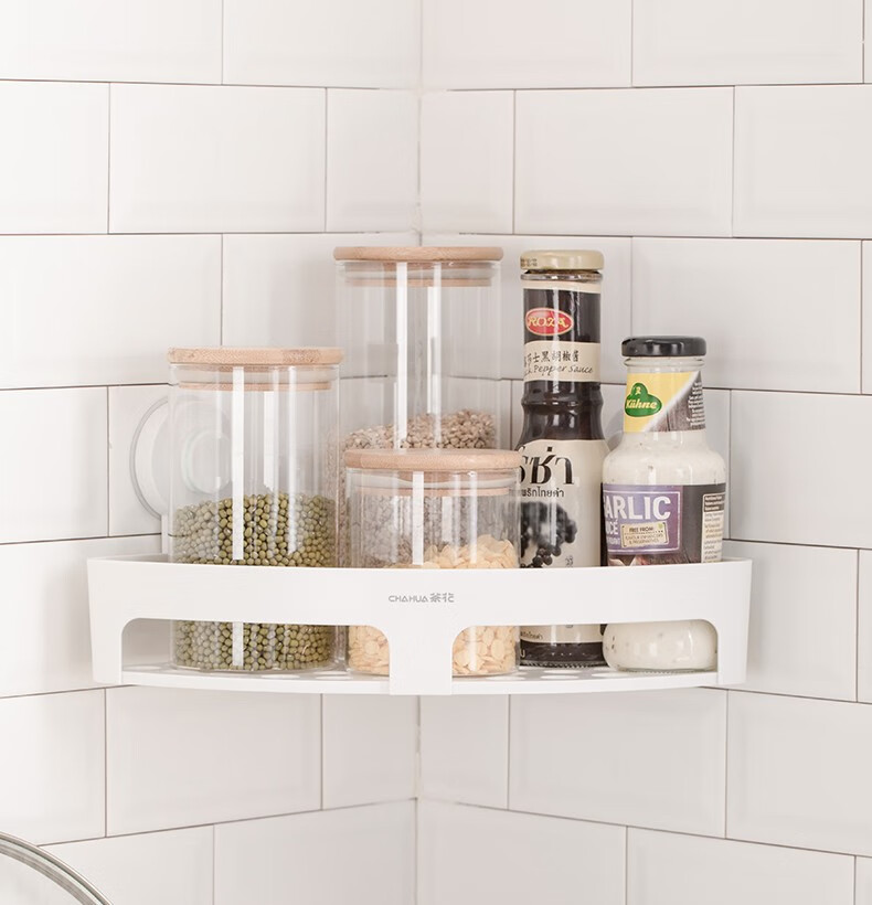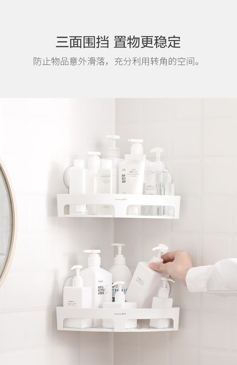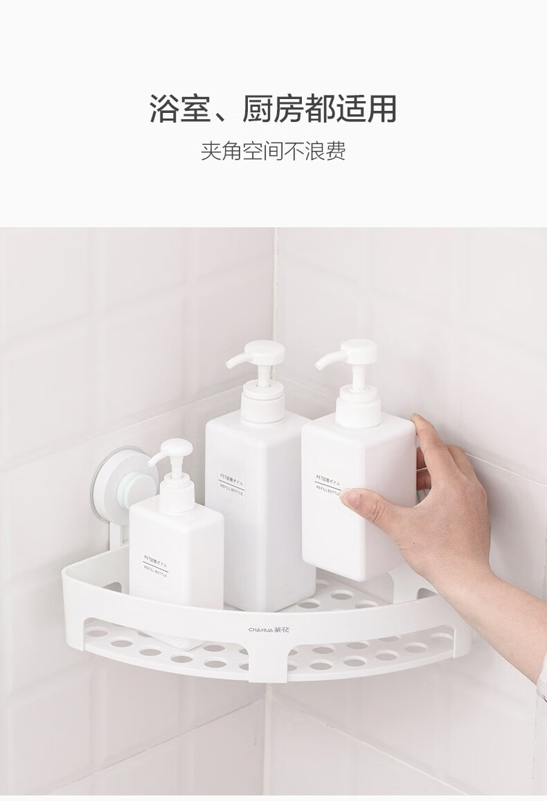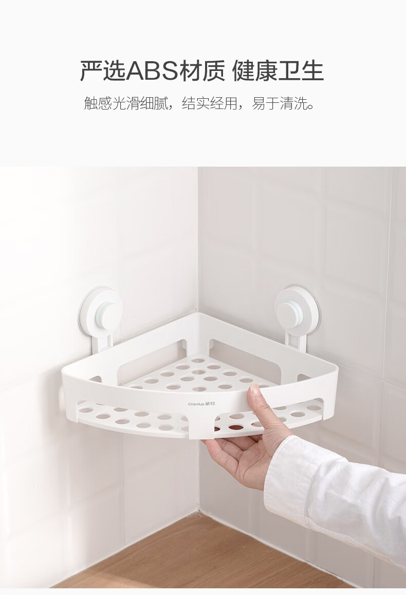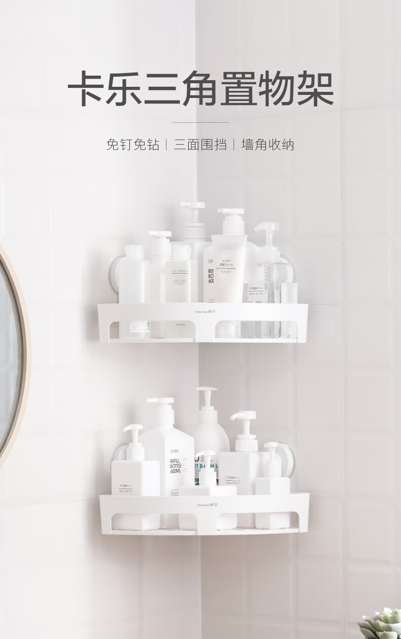 茶花(CHAHUA) 茶花卫生间贴壁式三角置物架储物架壁挂免打孔厨房浴室墙角收纳架 【1个装】卡乐强力三角置物架