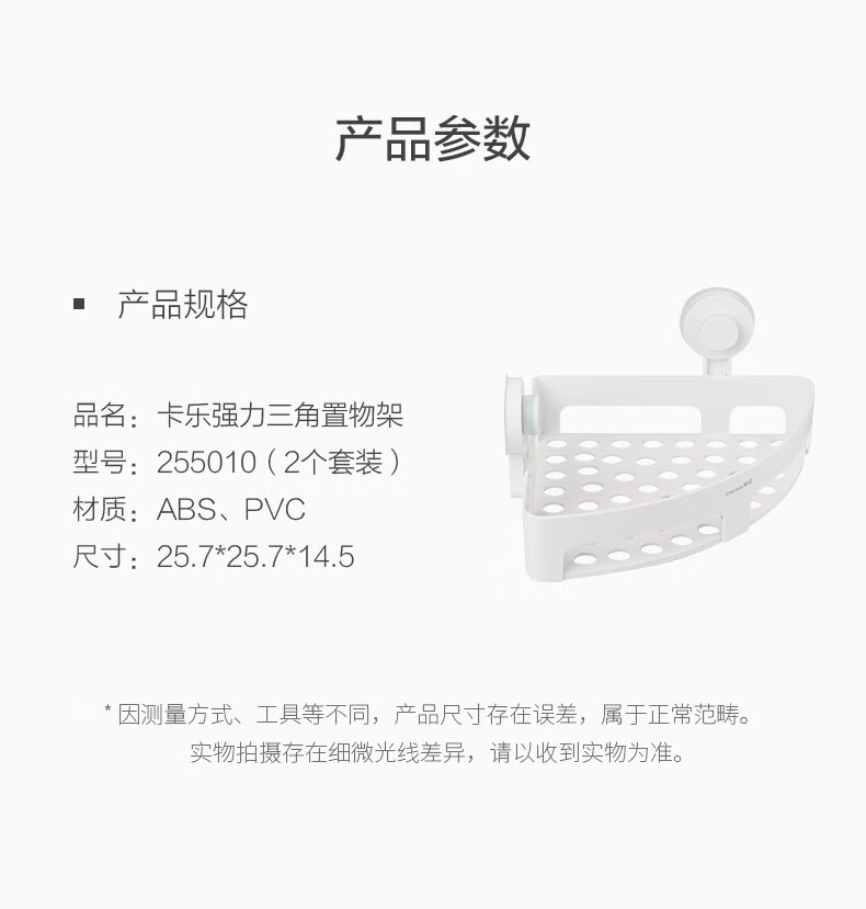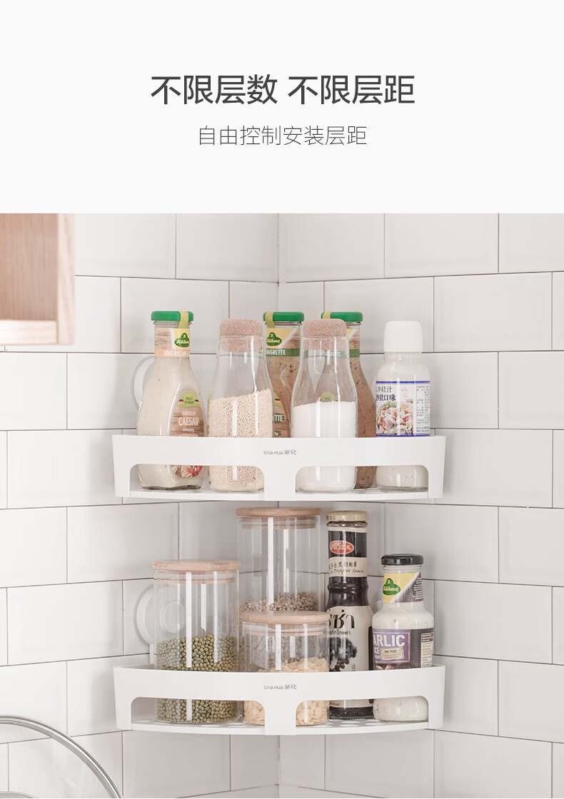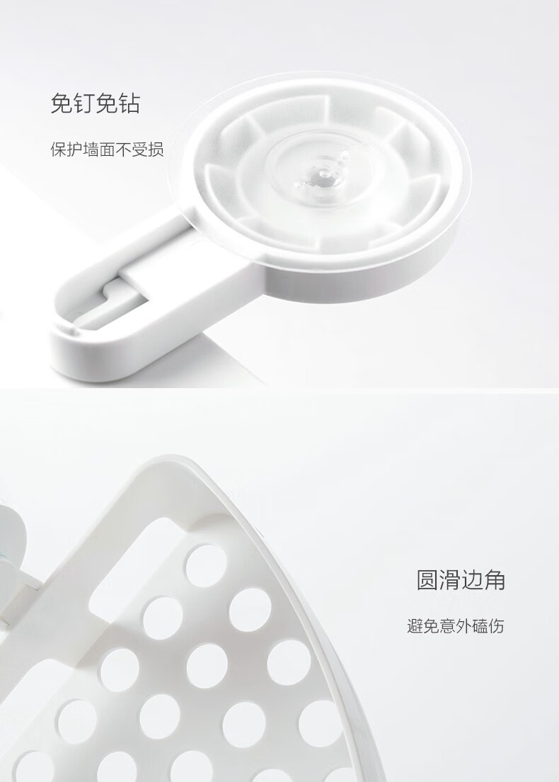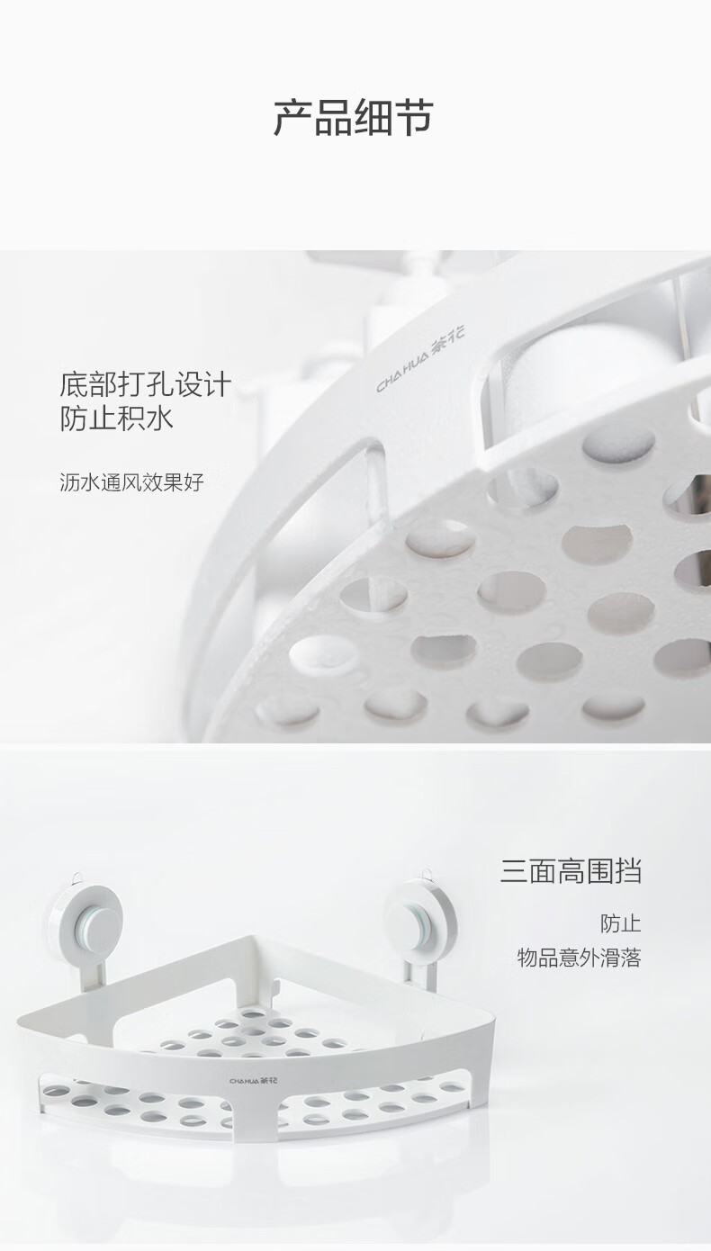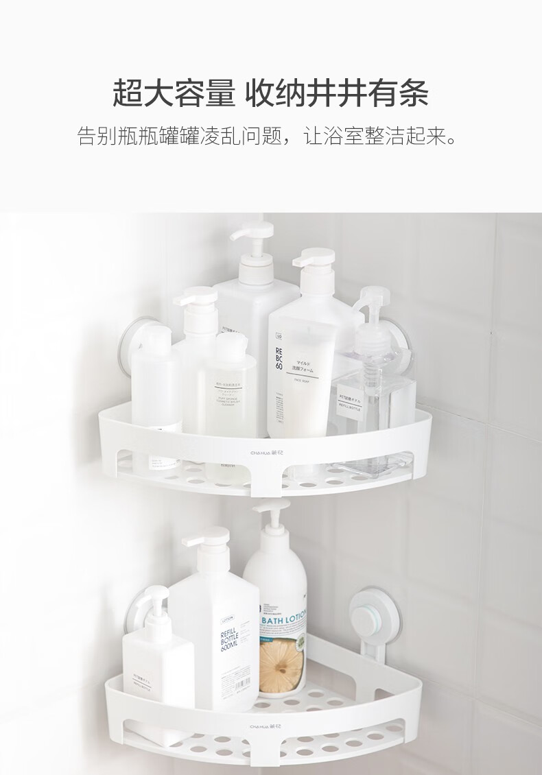 茶花(CHAHUA) 茶花卫生间贴壁式三角置物架储物架壁挂免打孔厨房浴室墙角收纳架 【1个装】卡乐强力三角置物架