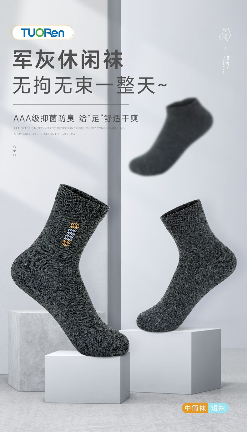 驼人康君袜子男士棉袜四季款透气抑菌舒适四双装送老公送男友 中筒加厚秋冬款