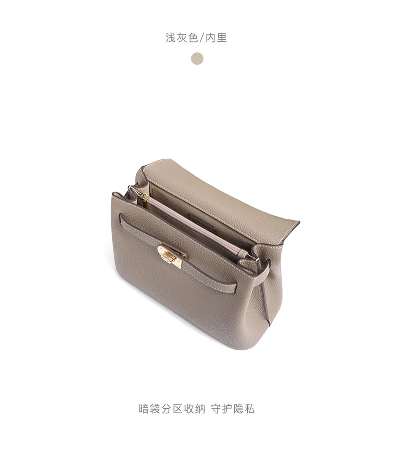 百丽时尚质感凯莉包女2023春季新款单肩斜挎手提包X6535AX3 浅灰 F