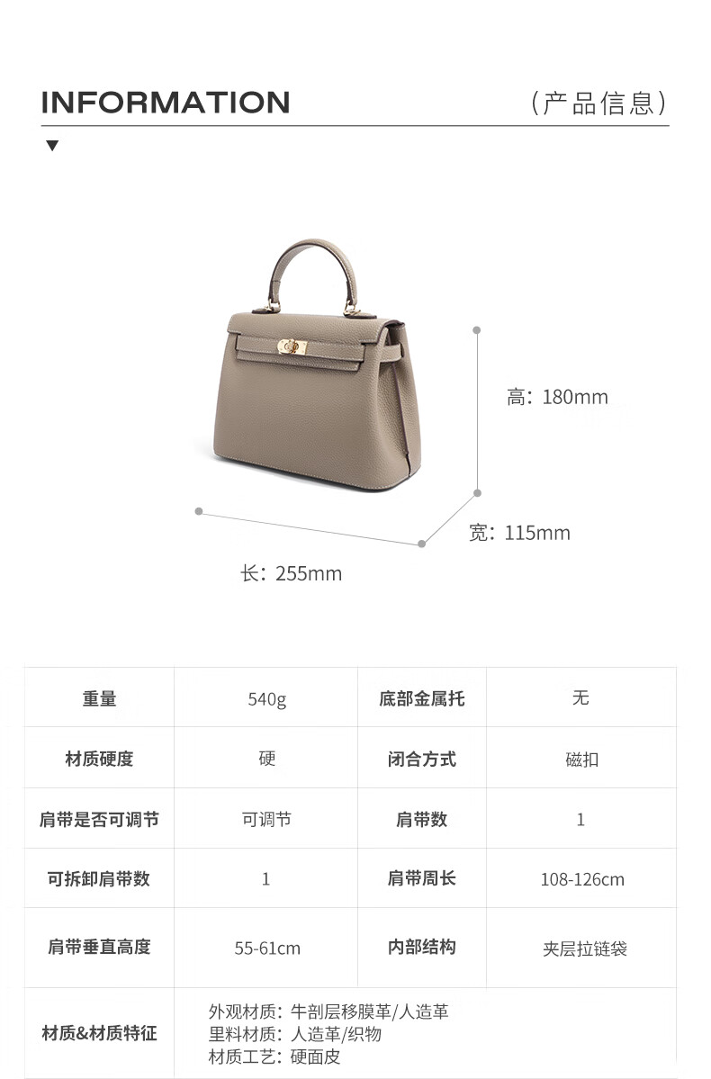 百丽时尚质感凯莉包女2023春...