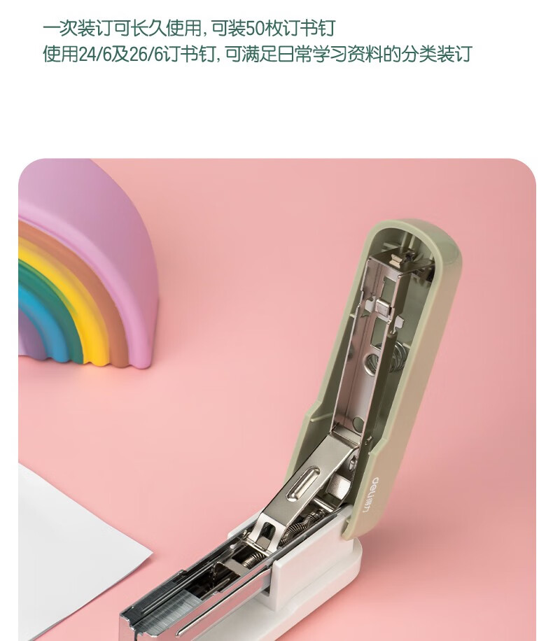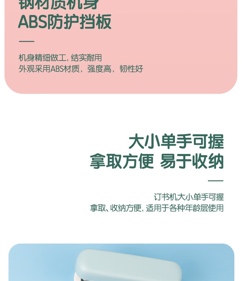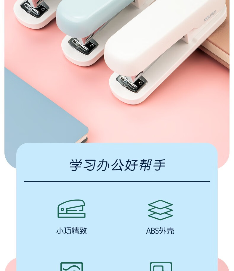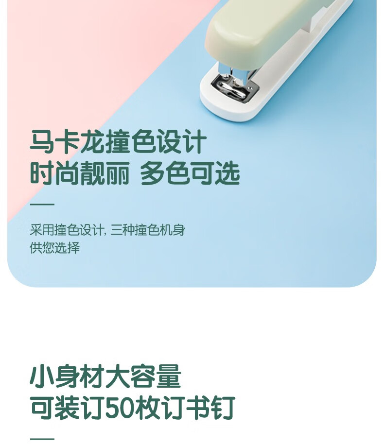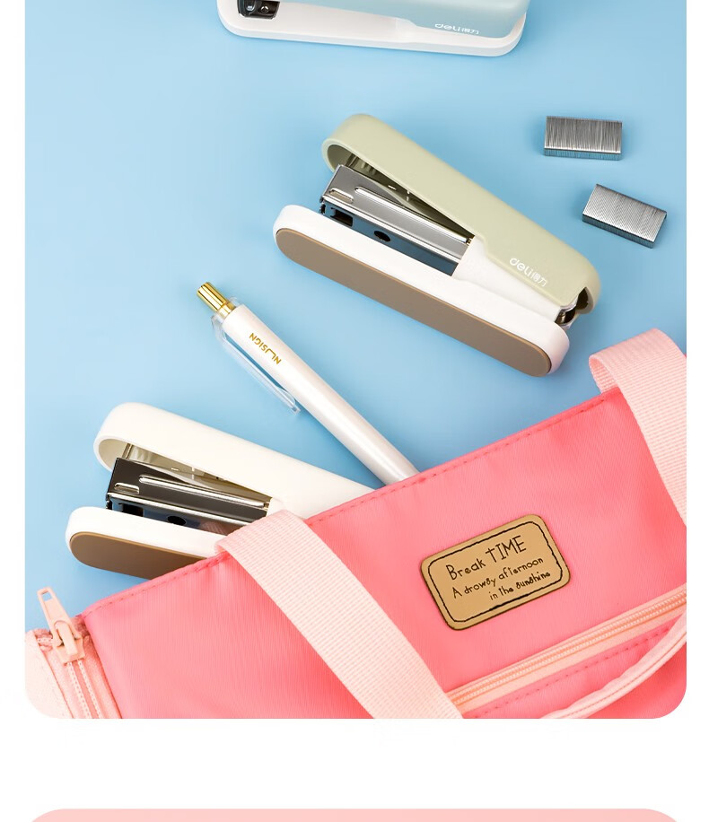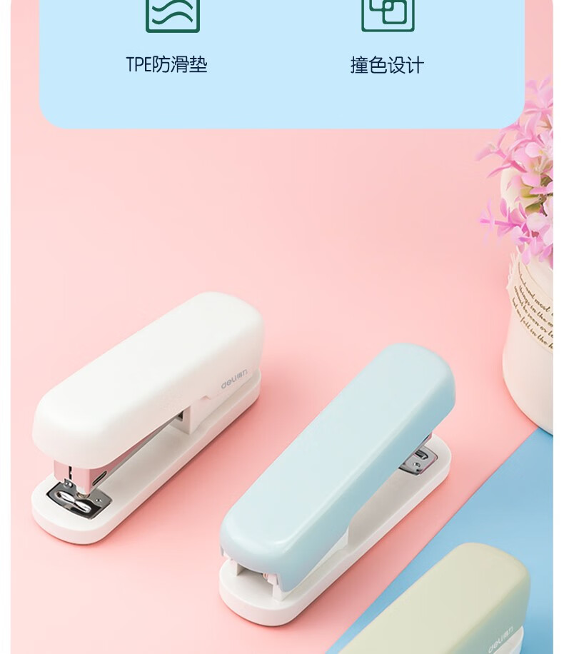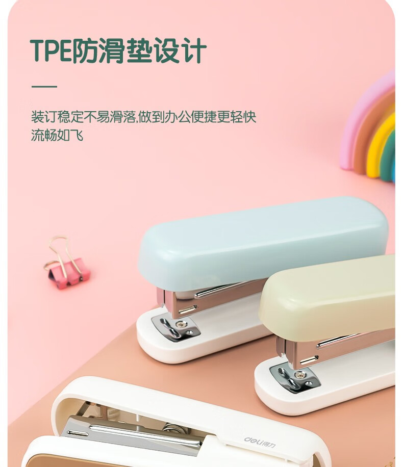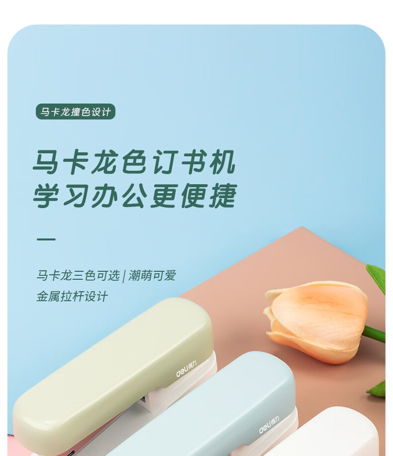得力(deli) 12号订书机家用办公学生用 马卡龙色大号订书器装订机家用钉书机配订书钉 天空蓝订书机+1盒钉
