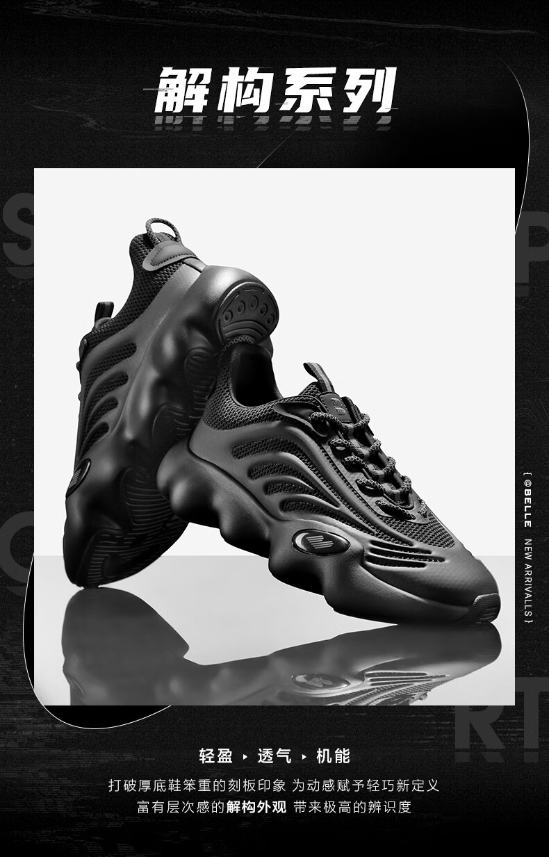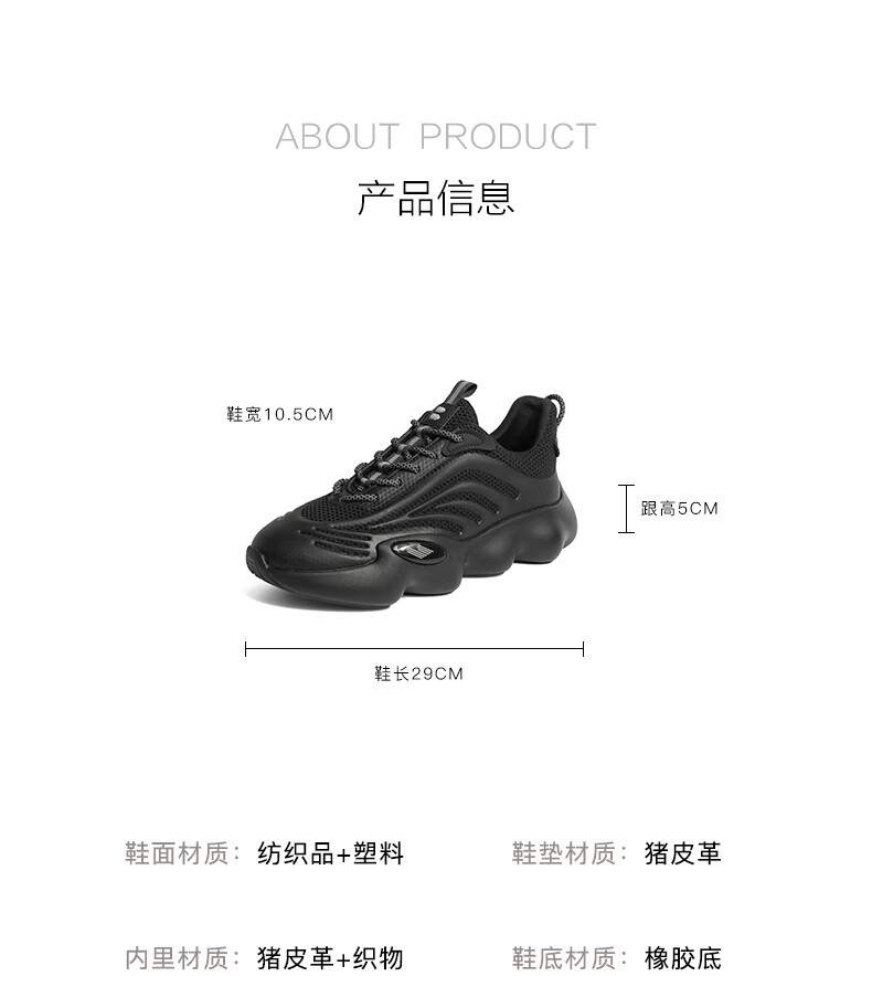 百丽动感线条老爹鞋男2023春季新款透气休闲潮酷运动鞋A1018AM3 黑色 41