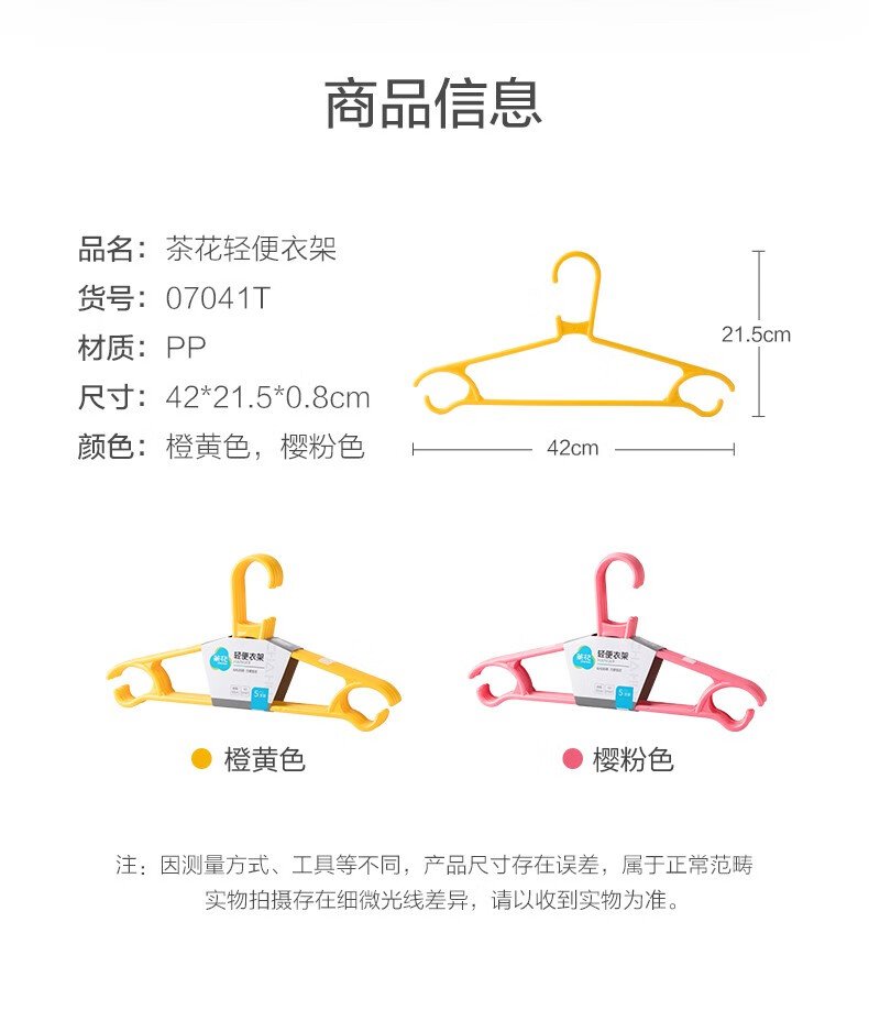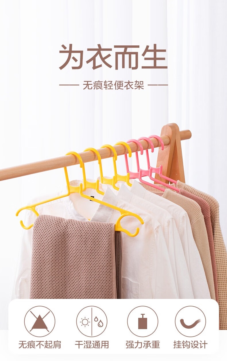 茶花(CHAHUA) 茶花塑料衣架家用成人衣撑凉衣架挂钩无痕衣柜晾衣服架子 【15只】颜色随机