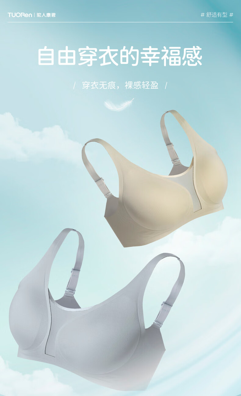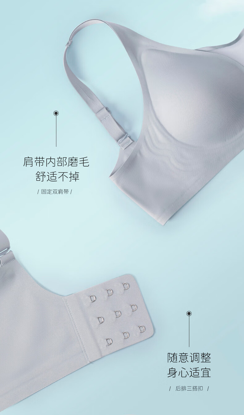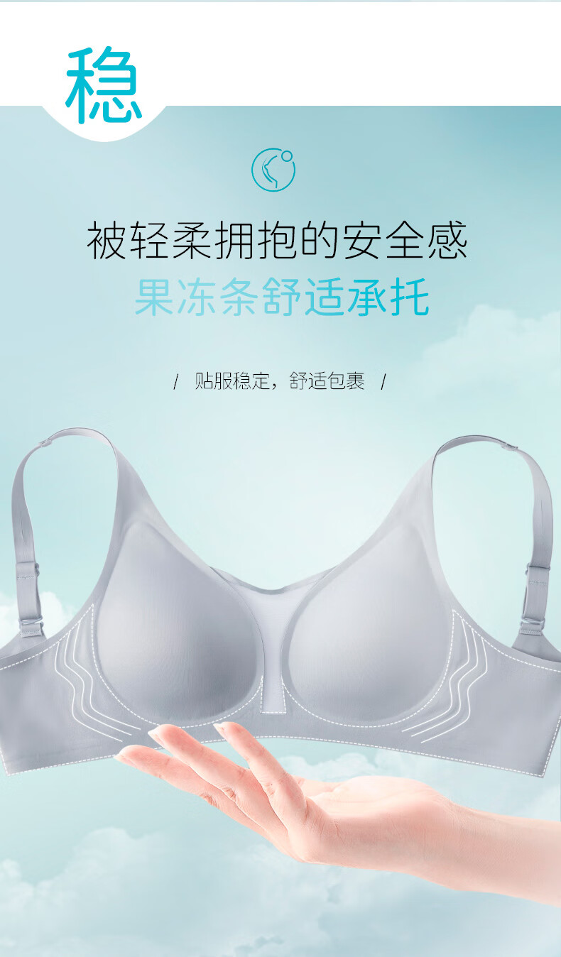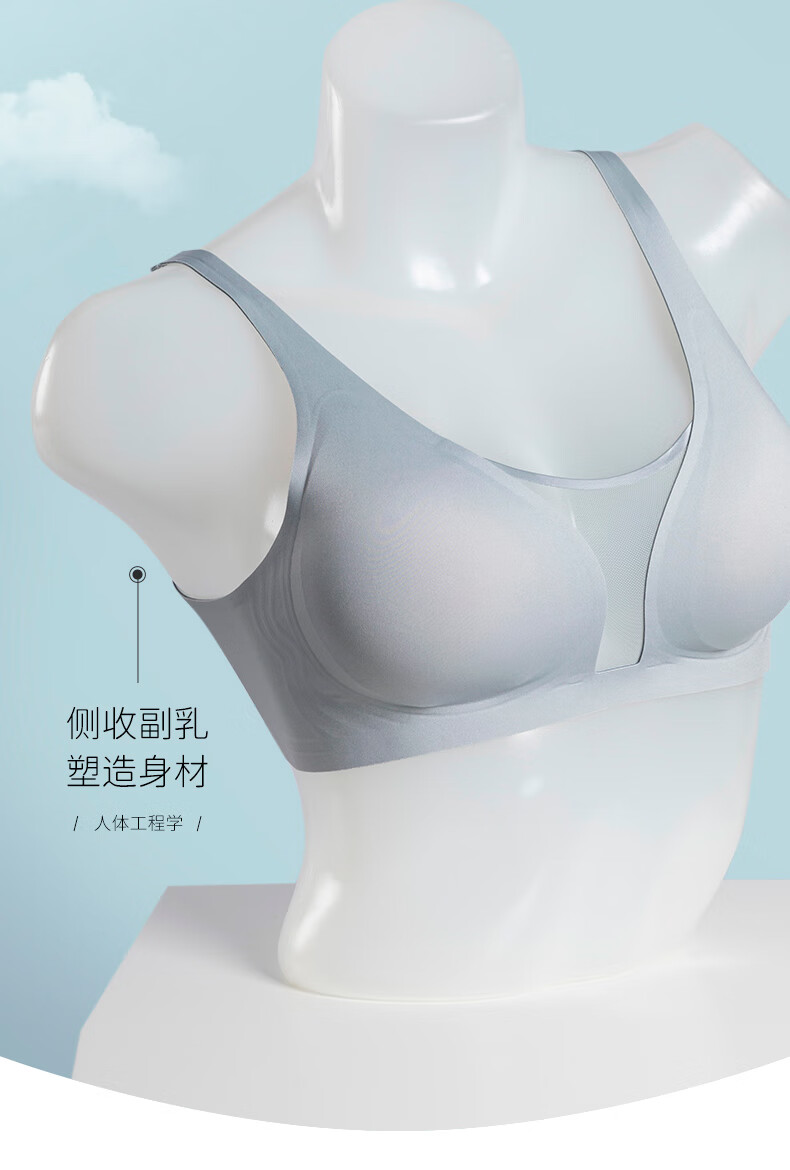 TUORen驼人康君无痕内衣无钢圈薄款抗菌吸汗包裹聚拢女士内衣果冻条款 灰蓝 L【75B-80A-75C】