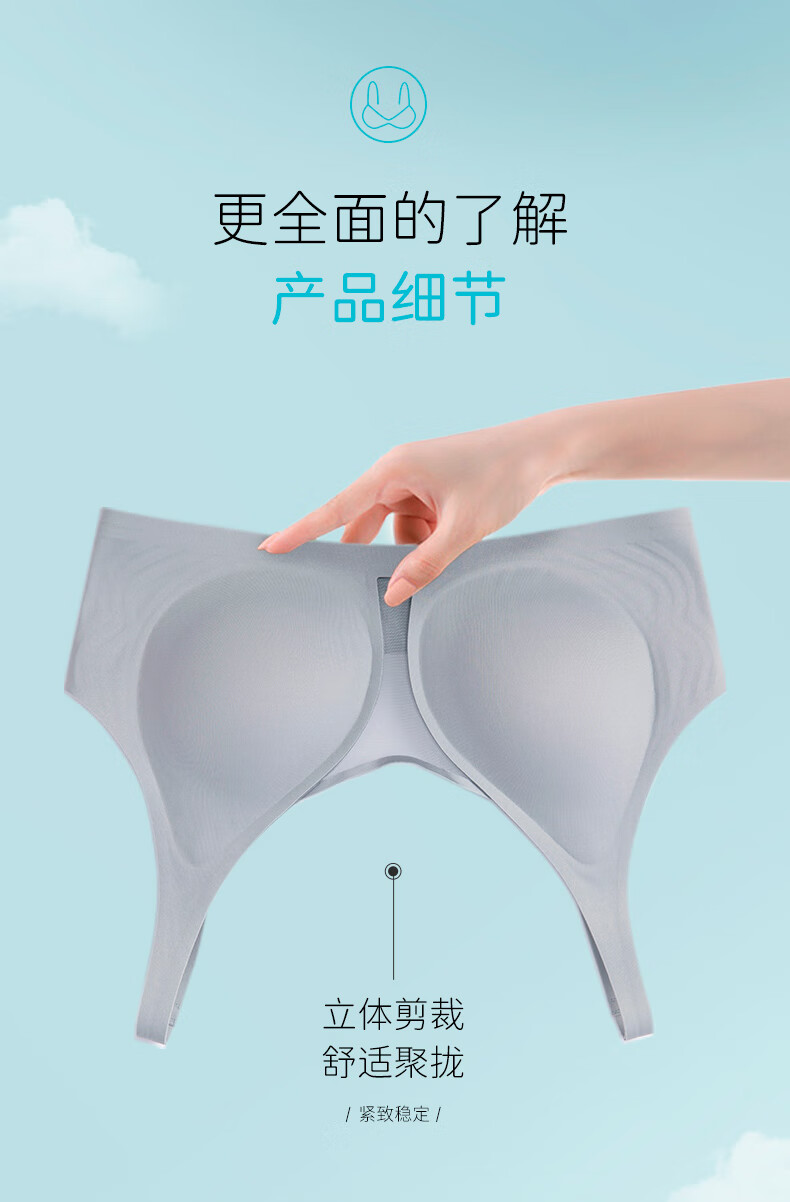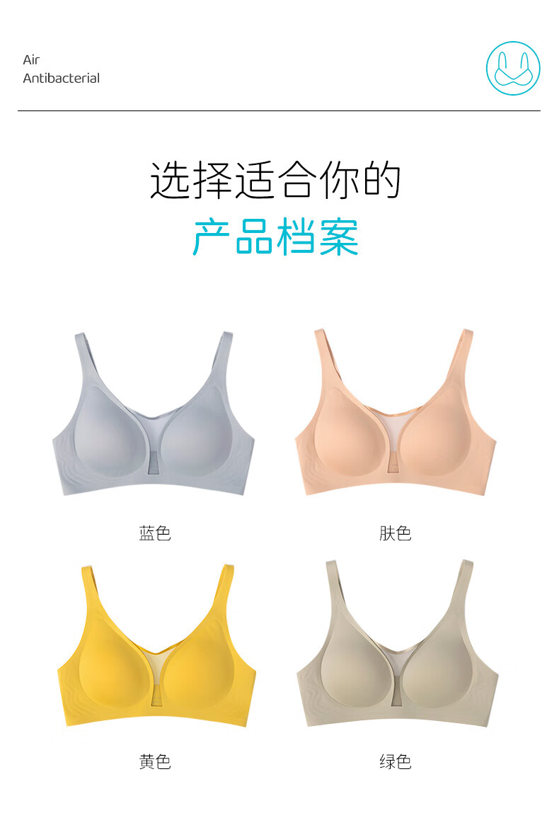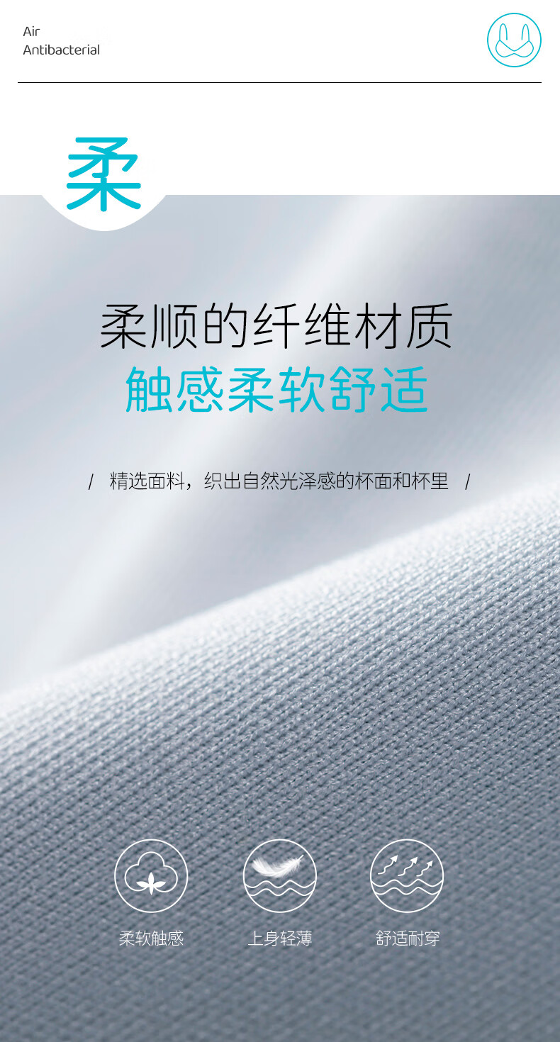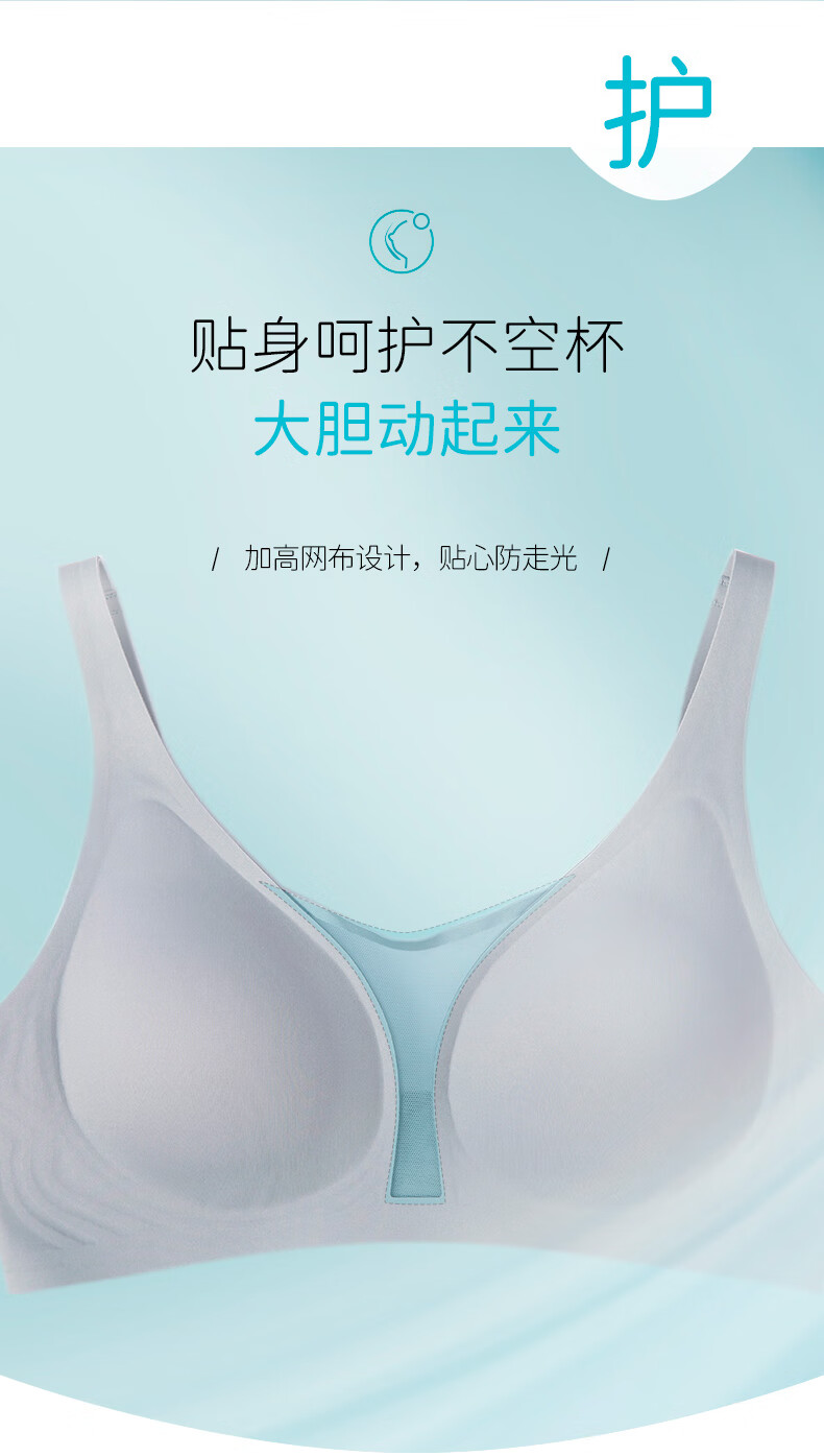 TUORen驼人康君无痕内衣无钢圈薄款抗菌吸汗包裹聚拢女士内衣果冻条款 灰蓝 L【75B-80A-75C】
