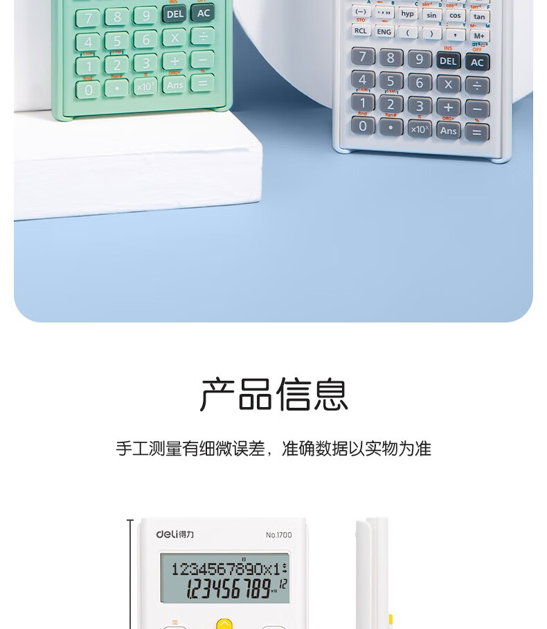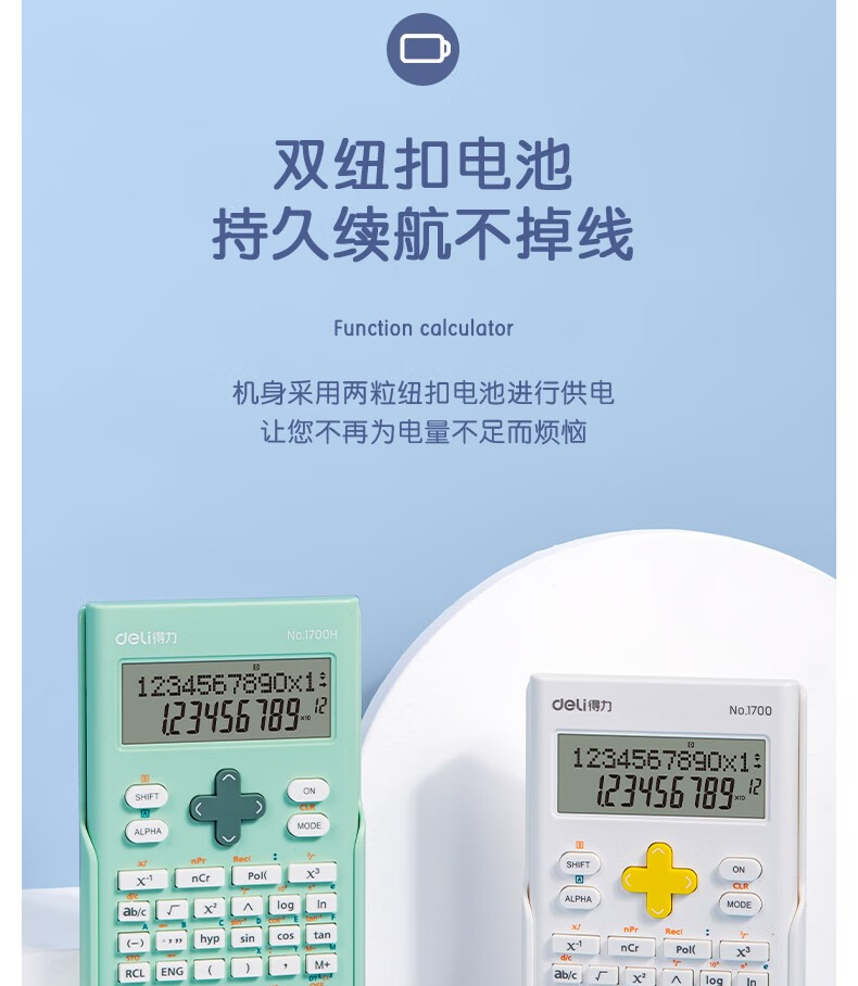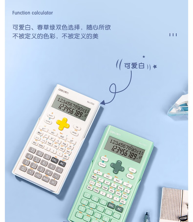 得力(deli)学生考试科学计算器 大学生一建二建考研专用计算机 小初中生用多功能函数计算器 莫兰迪限定-珠光白1700