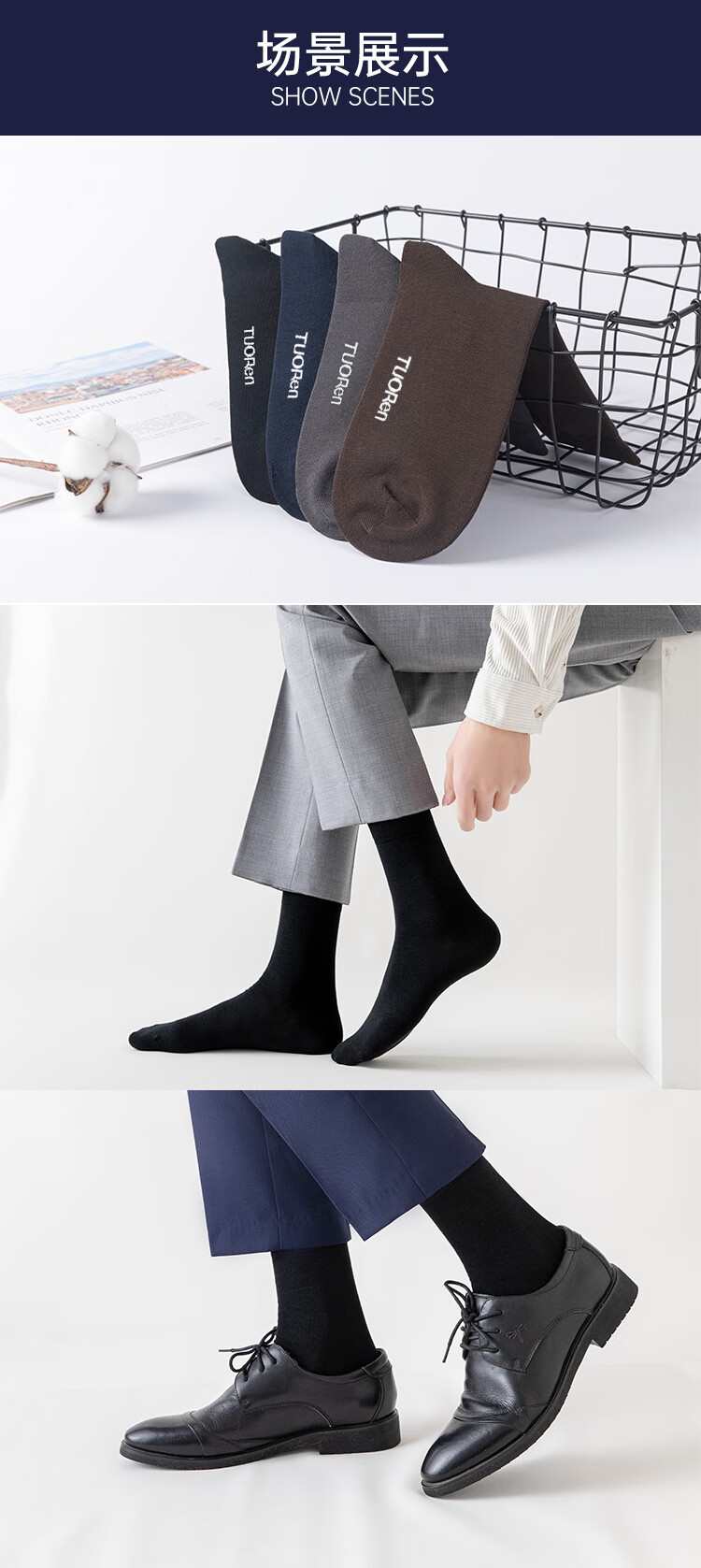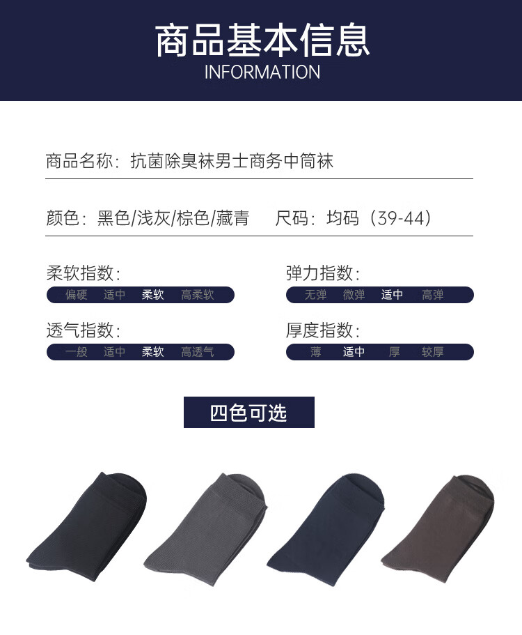 驼人康君男士商务袜抑菌消臭男袜中筒袜舒适透气亲肤4双送老公送男友 黑色4双装
