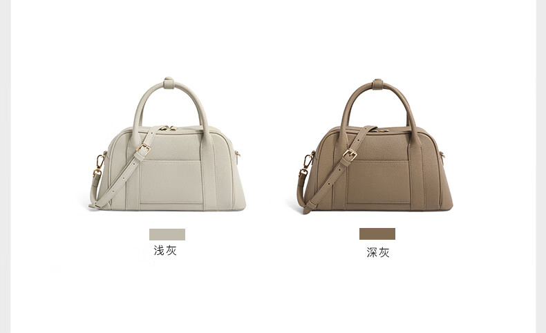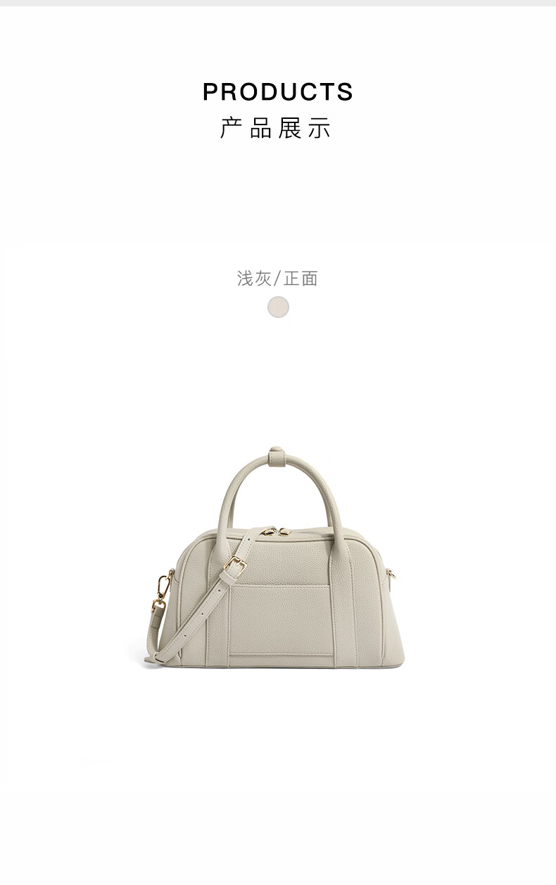 百丽波士顿包女2023夏季新款大容量单肩质感斜挎手提包X6652BX3 浅灰 F