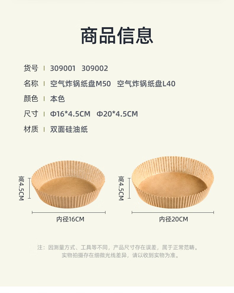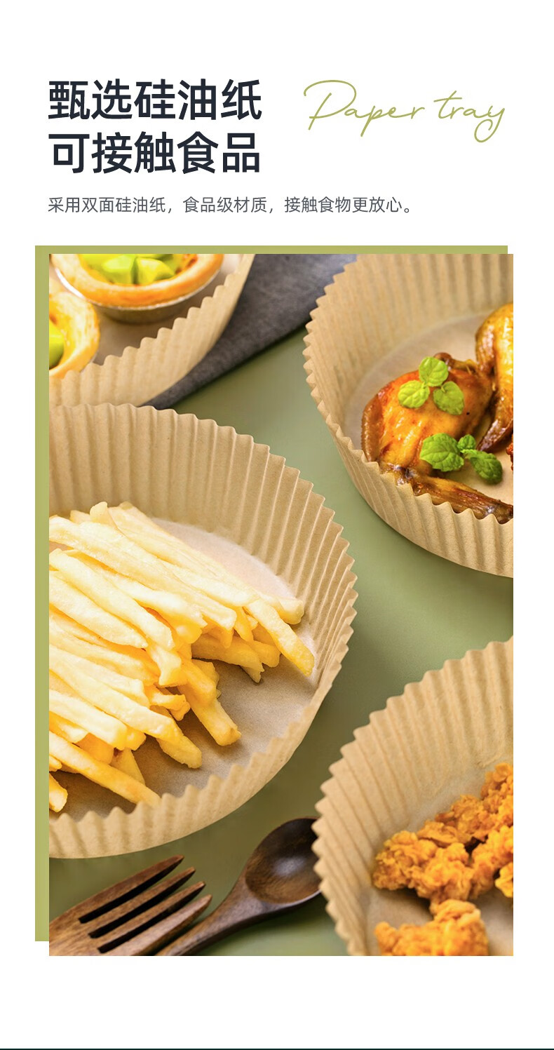 茶花(CHAHUA)空气炸锅纸垫硅油纸锅子锡纸烤箱专用纸食物食品级家用烘焙纸 【共120只】大号3包