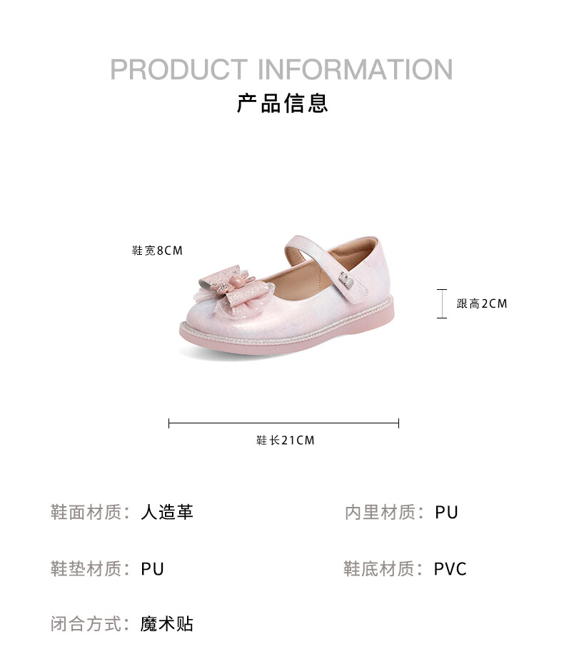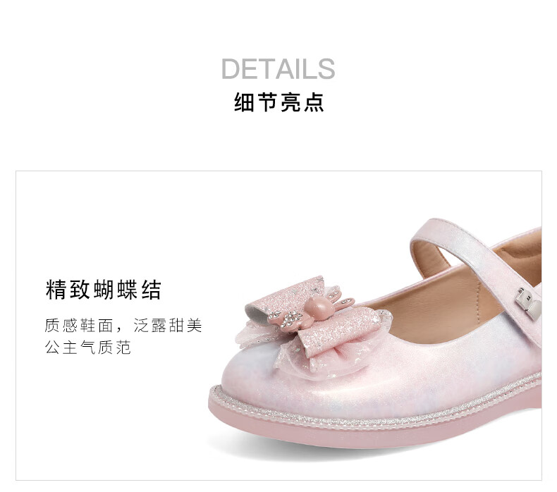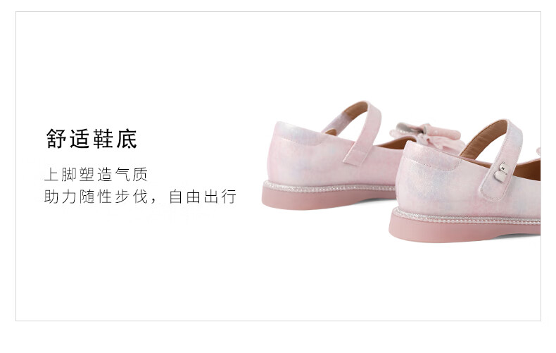 百丽蝴蝶结皮鞋童鞋2023春季新商场同款人鱼姬单鞋21553A83 粉色 28