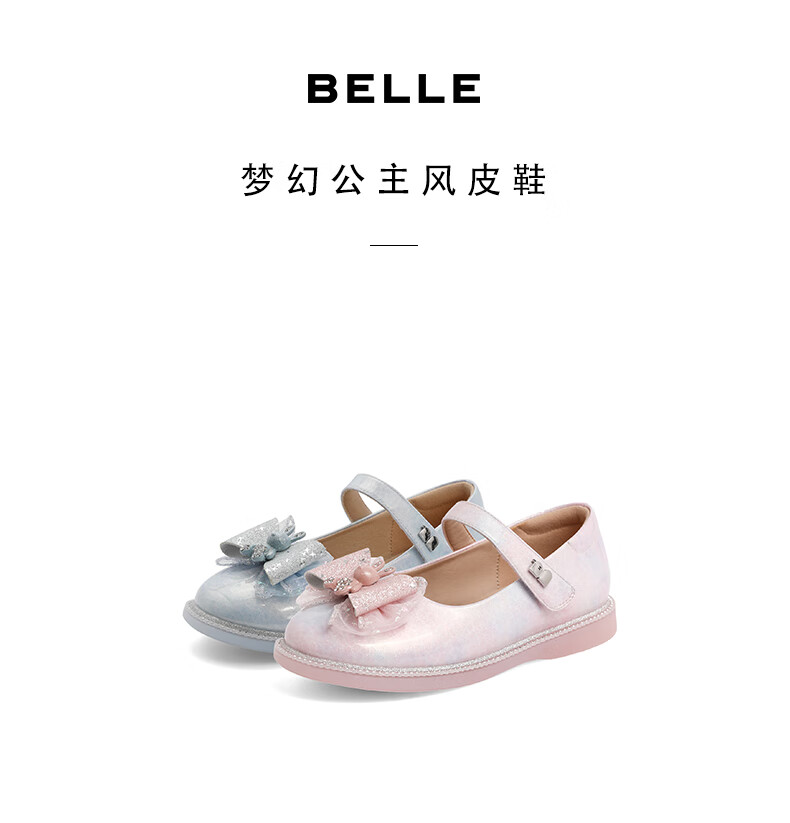 百丽蝴蝶结皮鞋童鞋2023春季...