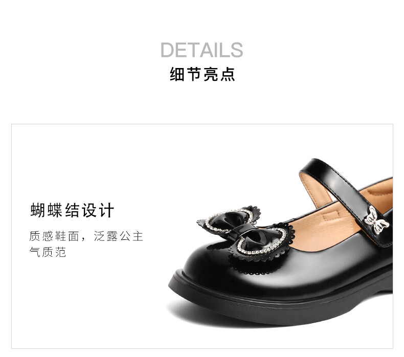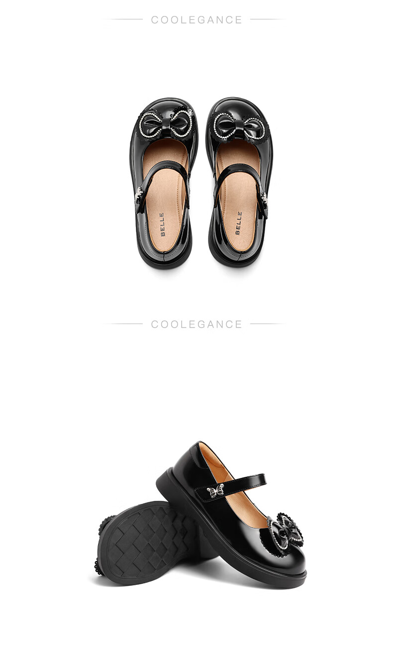 百丽可爱蝴蝶结皮鞋童鞋2023...