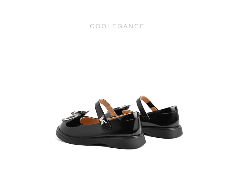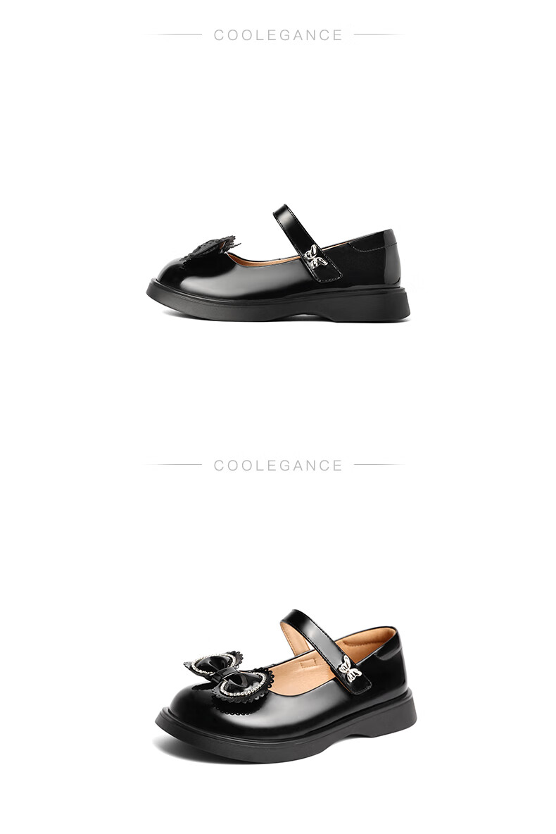 百丽可爱蝴蝶结皮鞋童鞋2023春季新商场同款漆皮单鞋3NR12A83 黑色 34