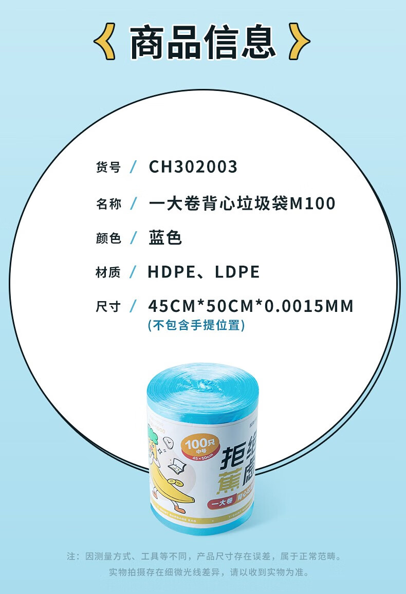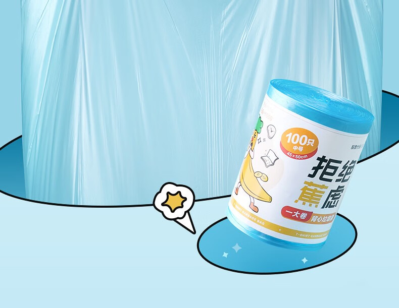 茶花实用垃圾袋一次性背心家用宿舍卫生间塑料袋厨房点断式实惠装 【100只】一大卷背心式垃圾袋M