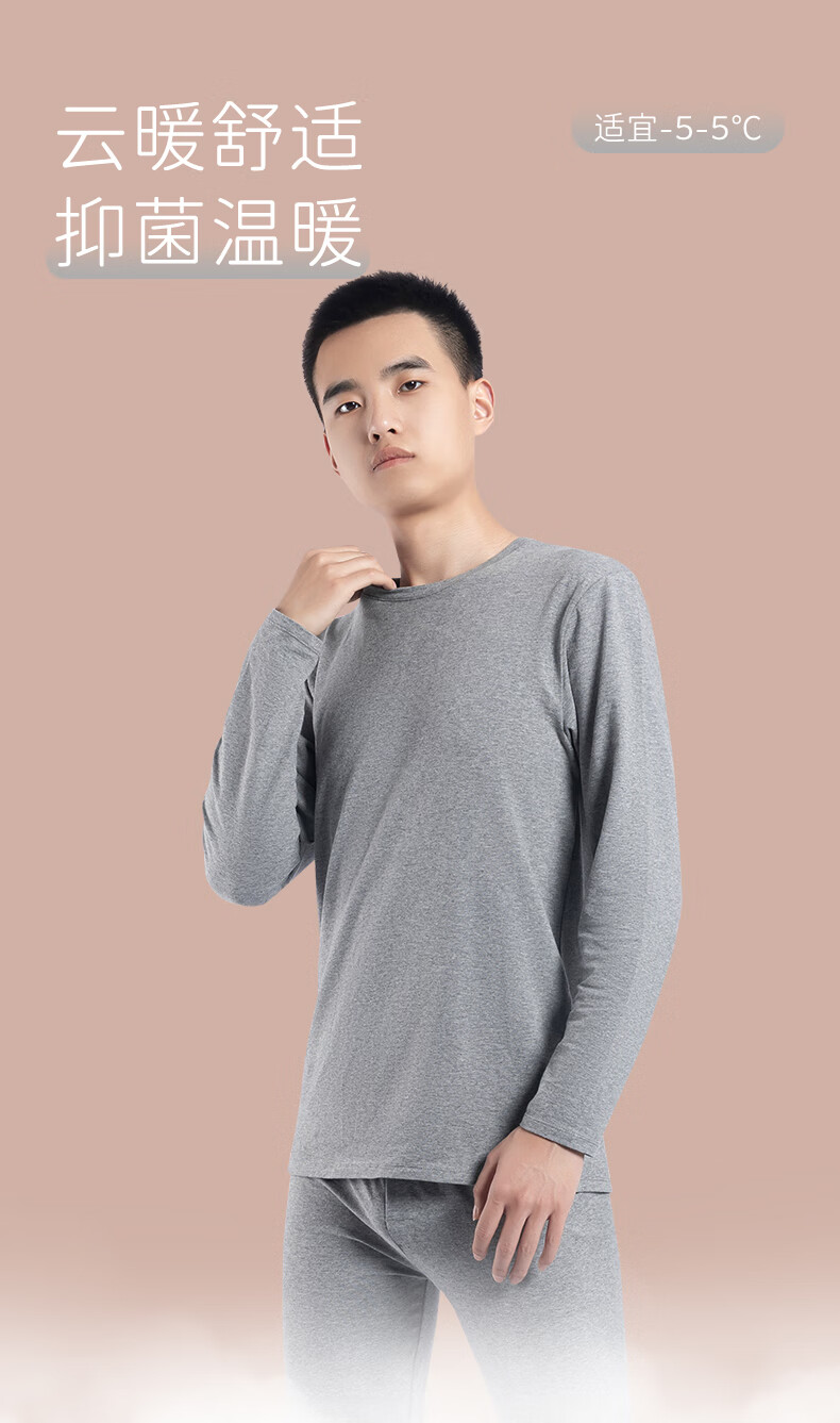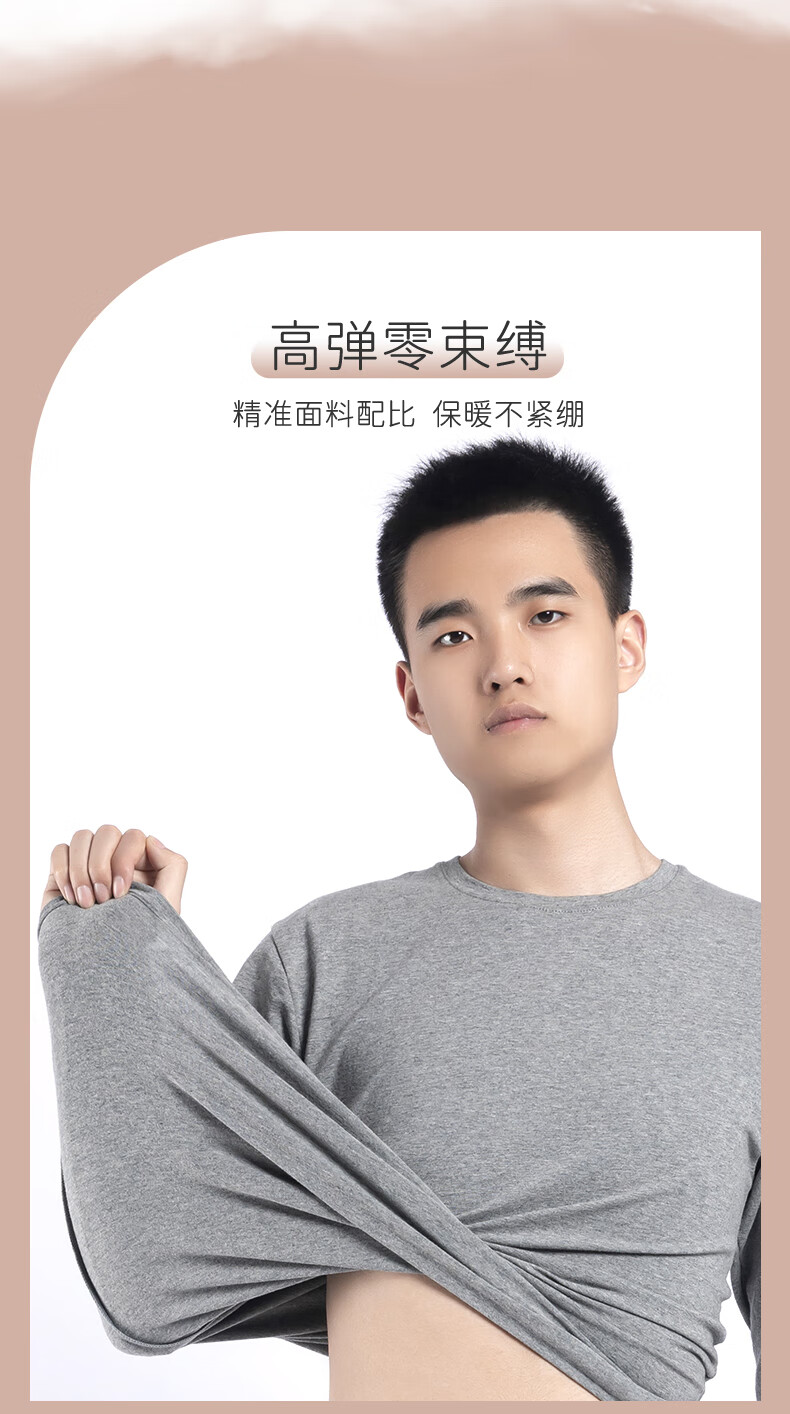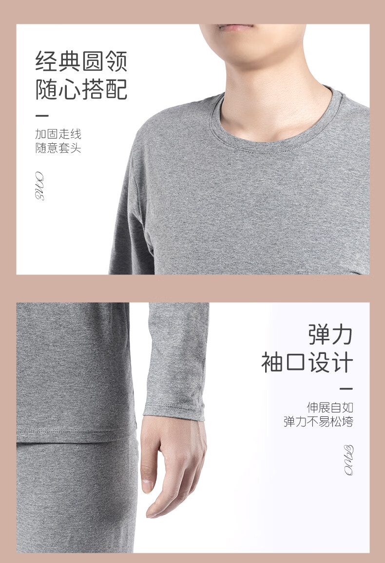 TUORen驼人康君内衣男士秋衣秋裤纯棉套装圆领棉薄款抗菌打底保暖内衣 灰色 XXXL