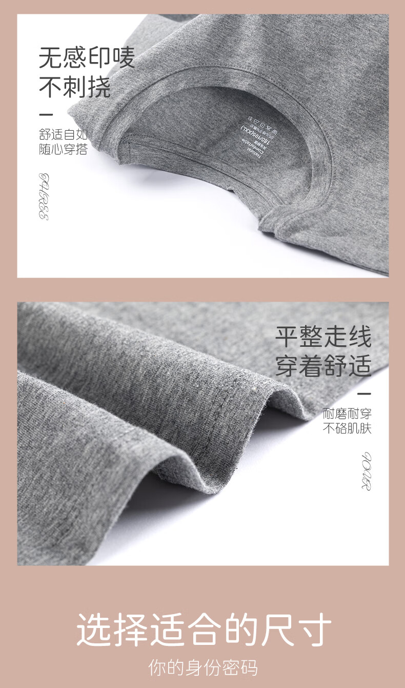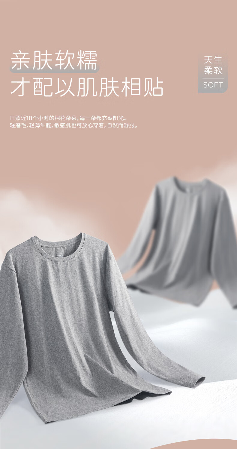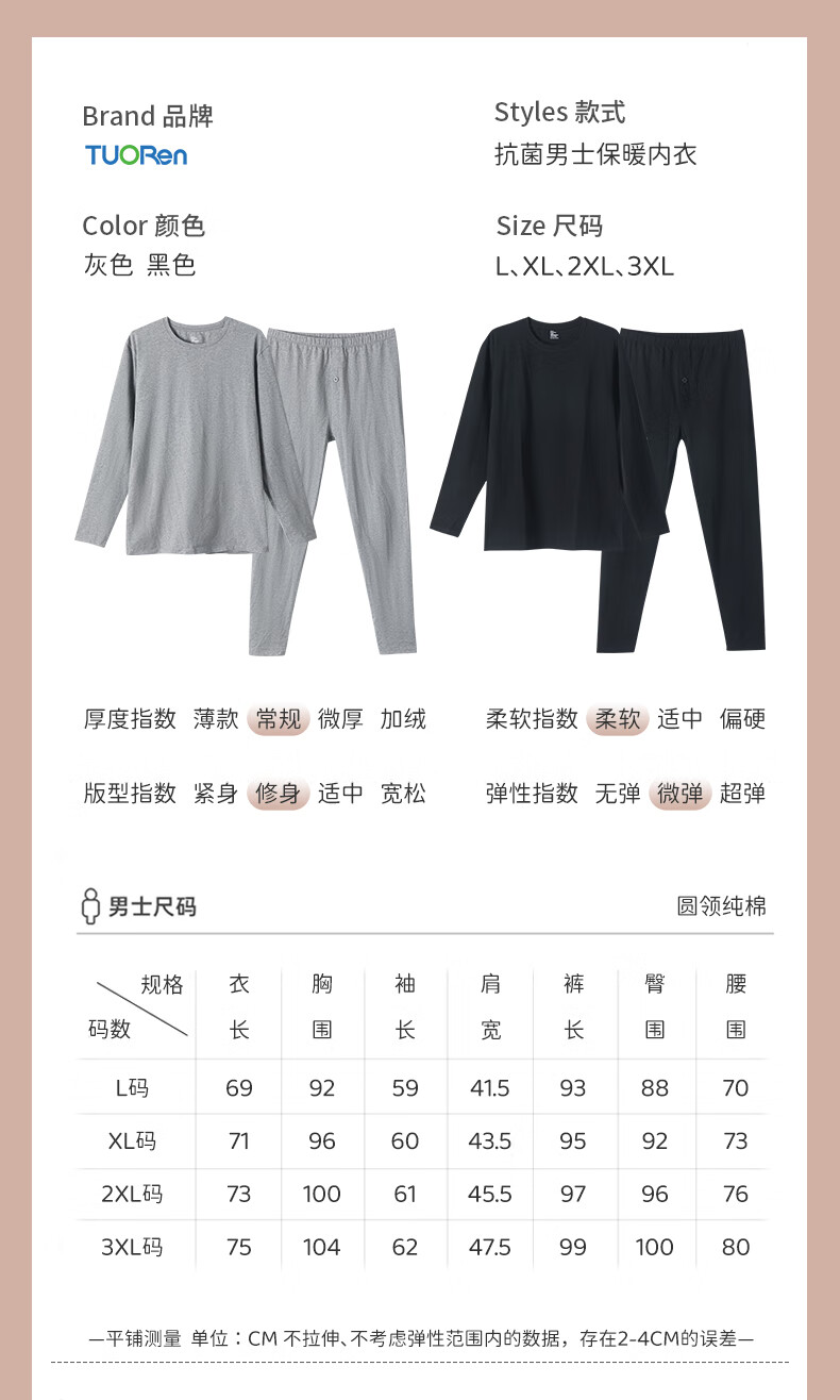 TUORen驼人康君内衣男士秋衣秋裤纯棉套装圆领棉薄款抗菌打底保暖内衣 灰色 XXXL