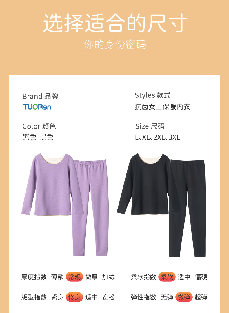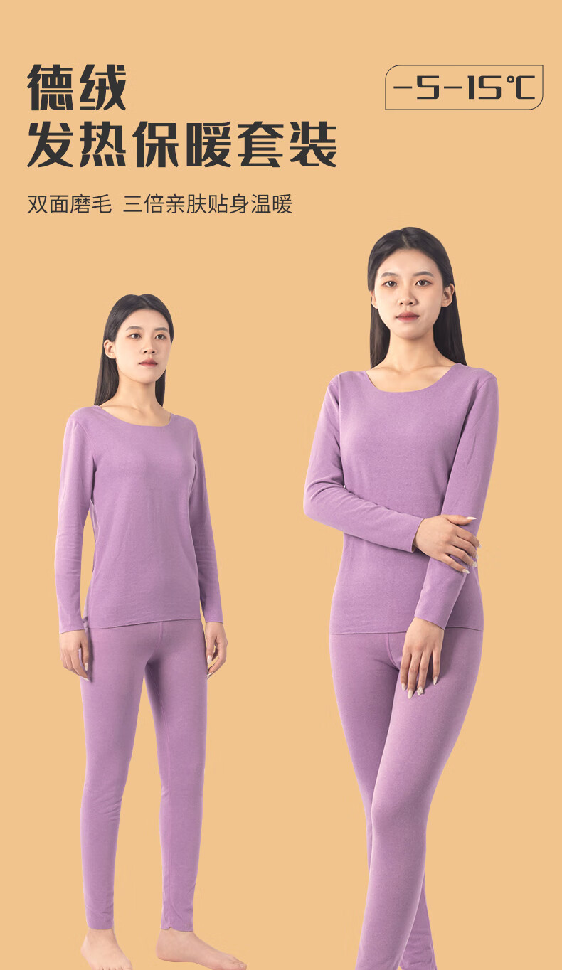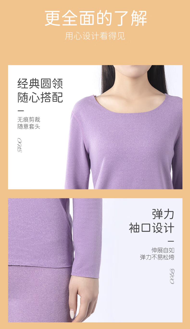 TUORen驼人康君女士保暖套装德绒保暖女生秋衣秋裤内穿无痕打底高效锁温 紫色 L